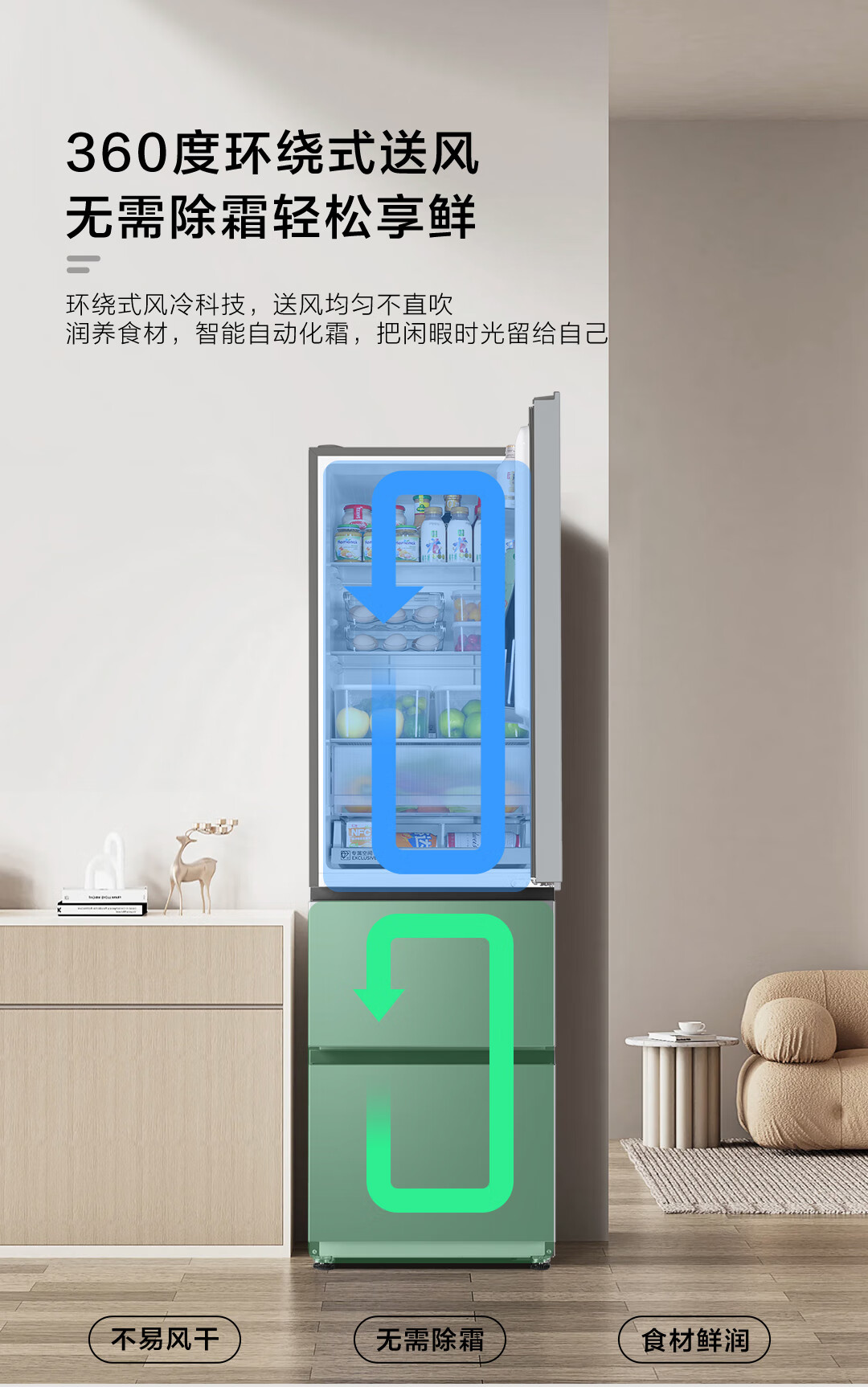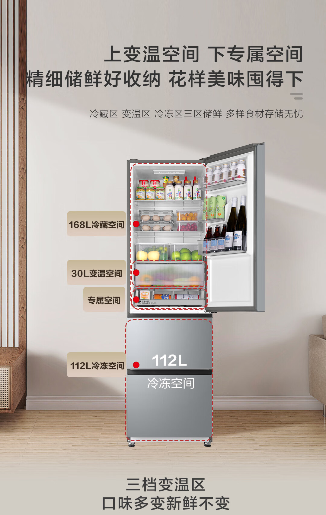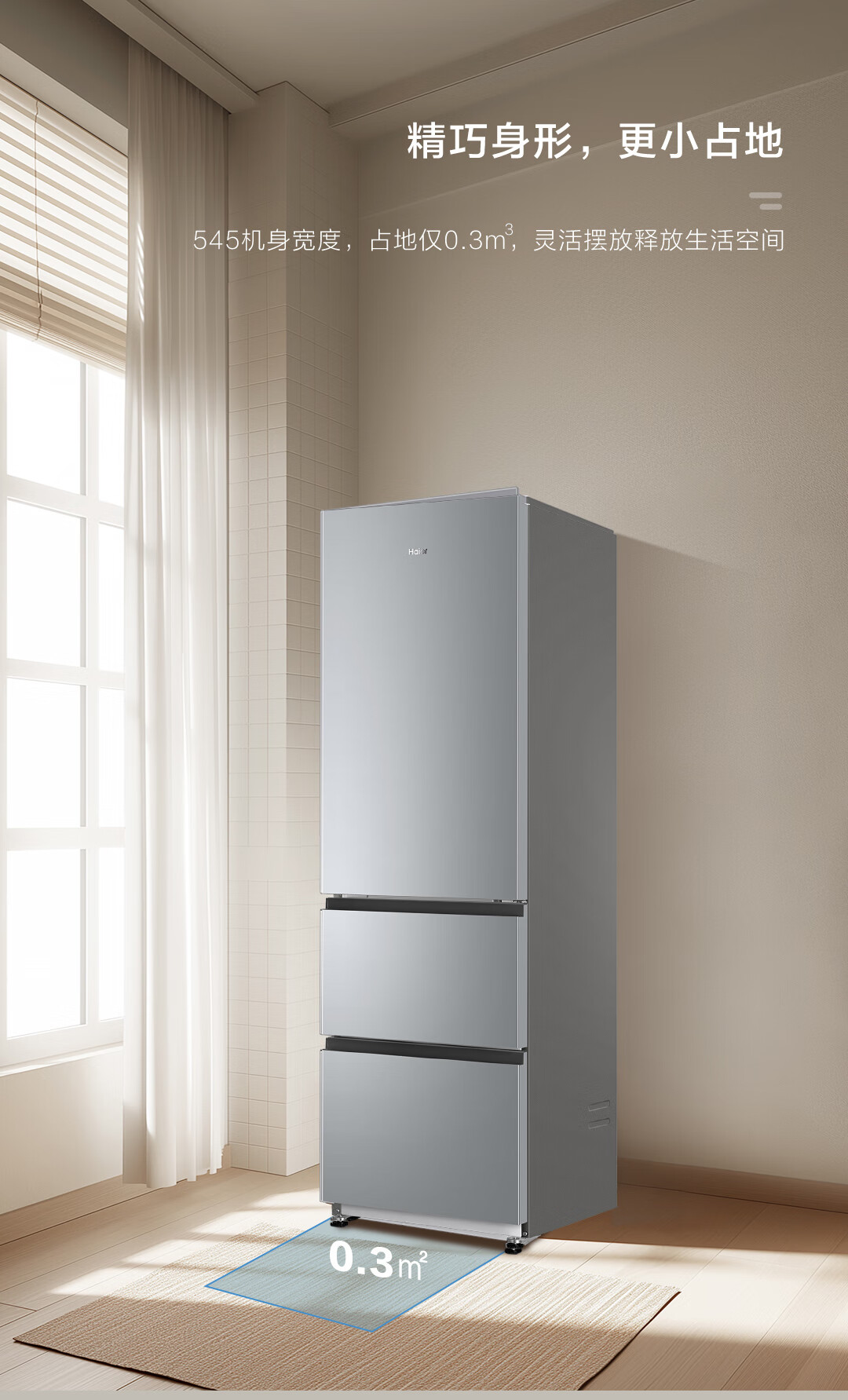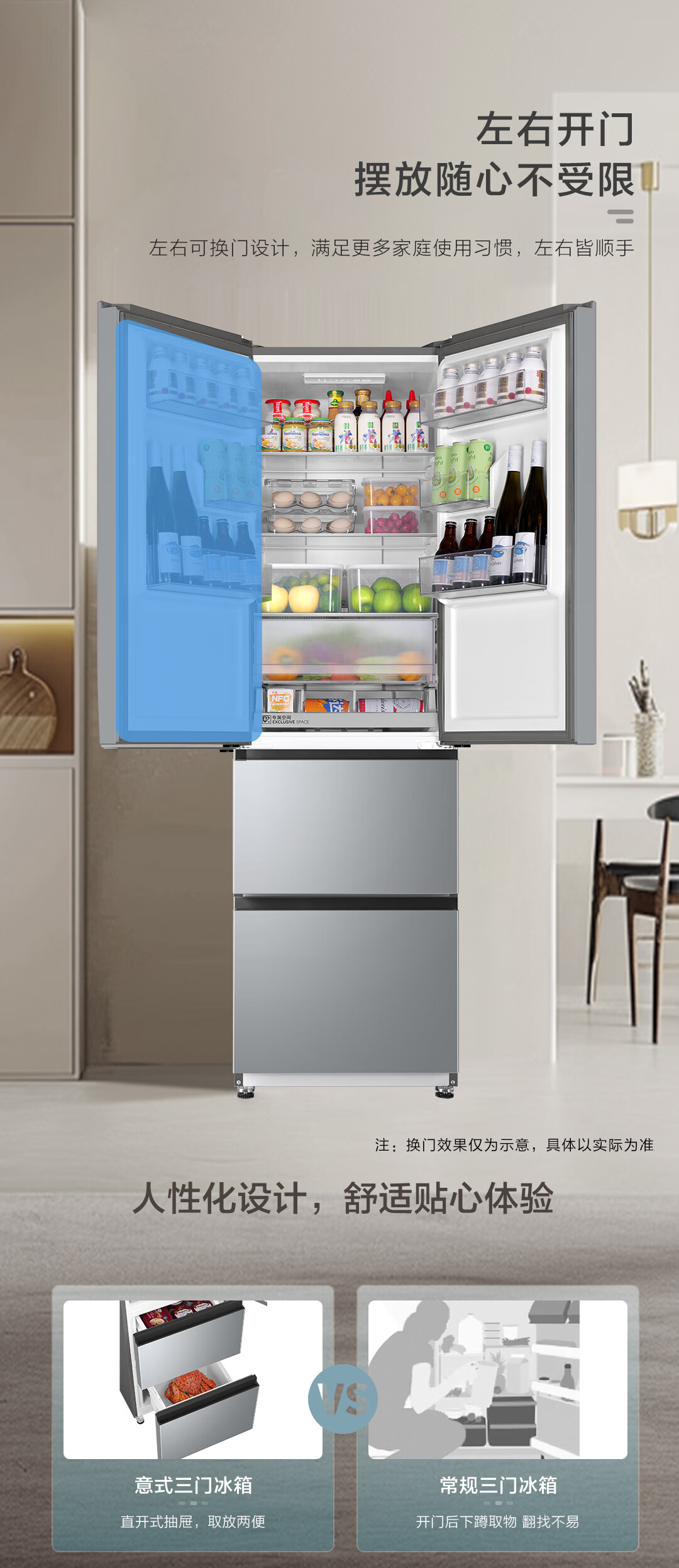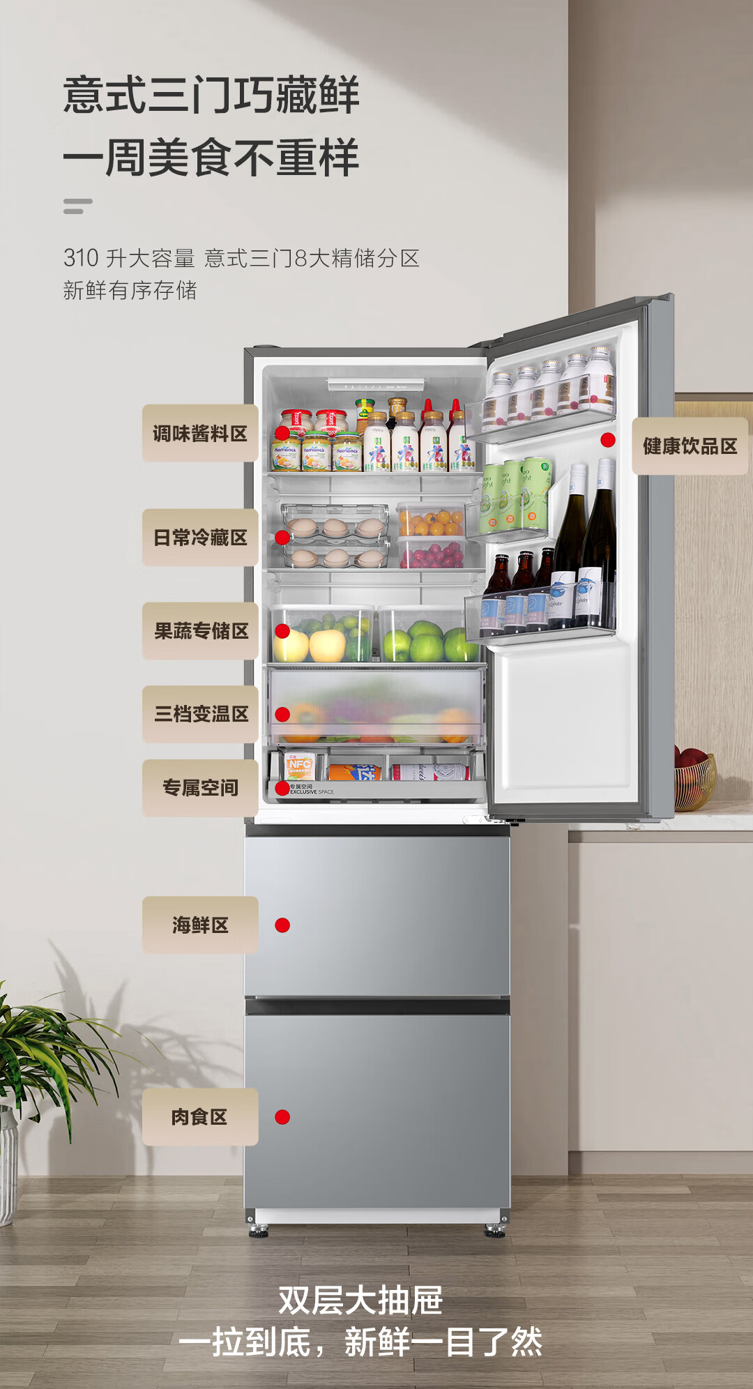 Haier refrigerator 310 liters three-door multi-door refrigerator first-class energy efficiency dual air-cooling frost-free frequency conversion energy-saving black gold purification three-speed variable temperature rental household large-capacity refrigerator
