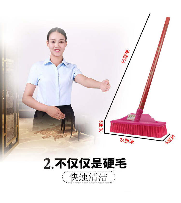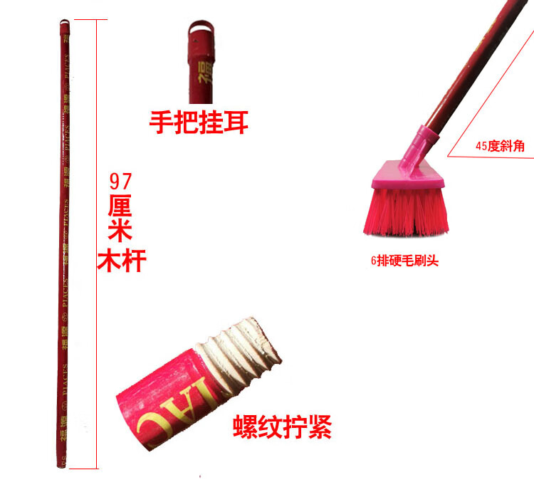 Household floor brush hard-bristled wooden stick brush floor powder room tile cement floor cleaning brush long-handled moss brush No. 2 wooden handle floor brush