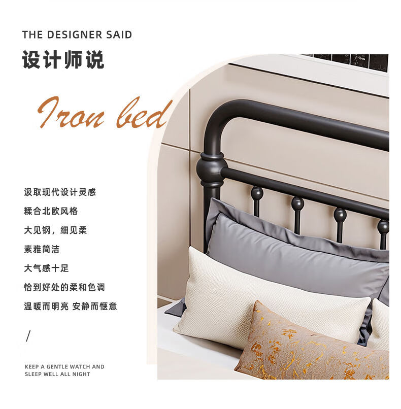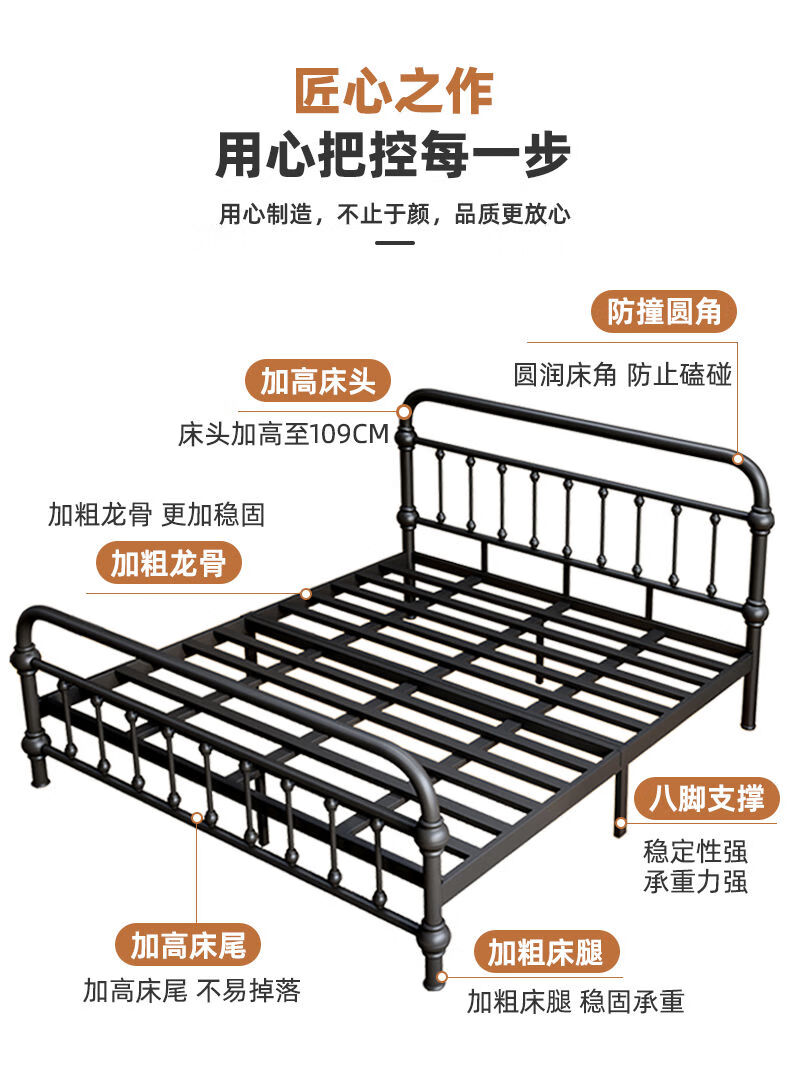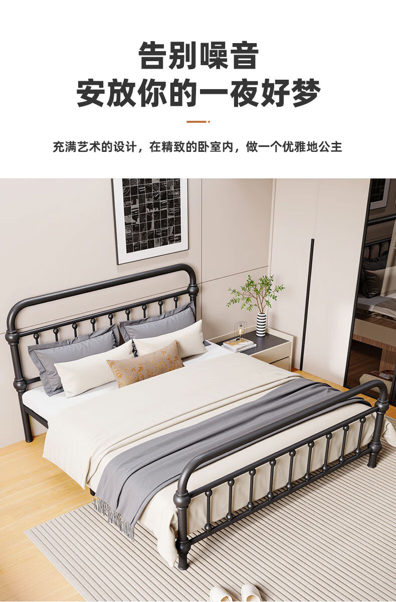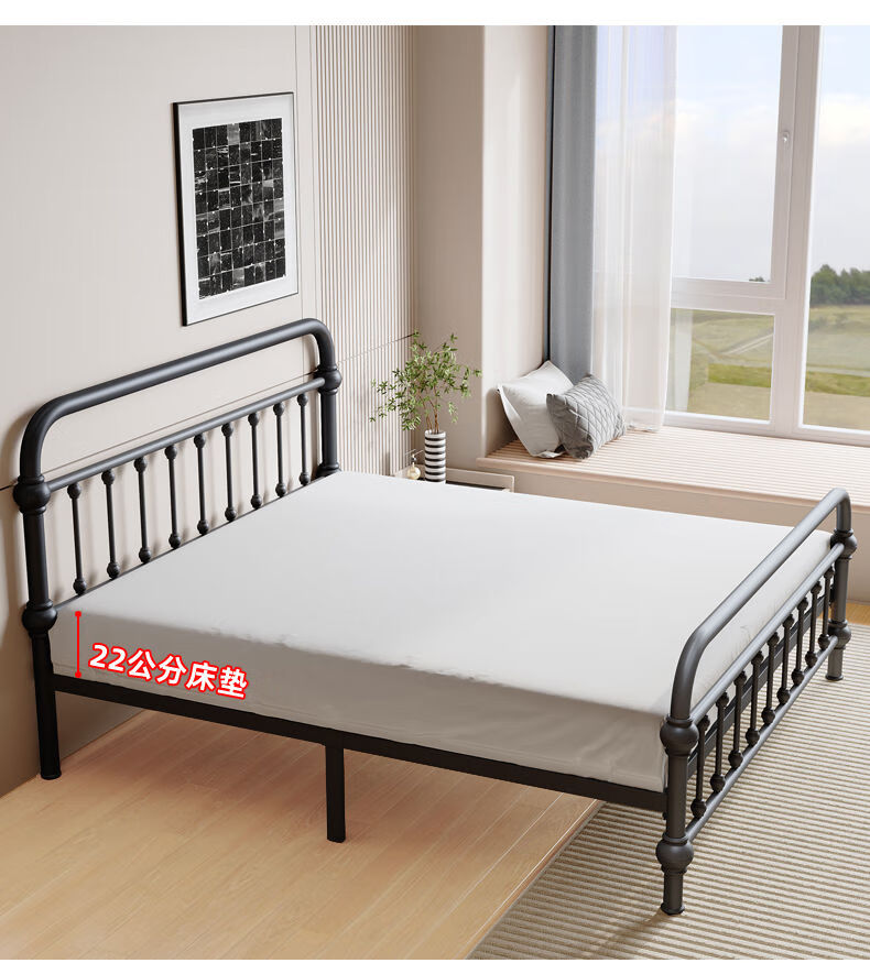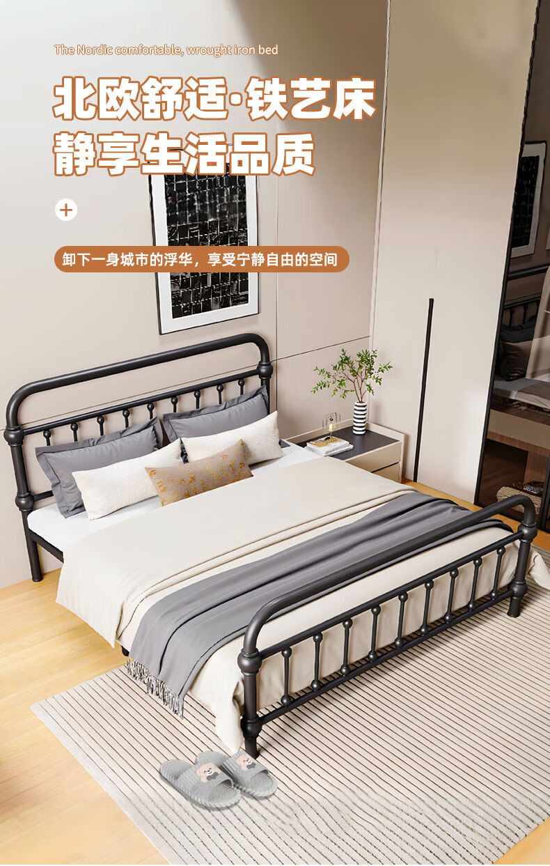 Yusenyi Iron Bed Double Bed Household 15 Meter Iron Bed Frame Single Bed Modern Simple 18 Meter Rental House Shanghai Iron Frame Bed Same Day Delivery and Installation in Shanghai City Aisha Black Bed Frame 1500mm*2000mm Frame Structure