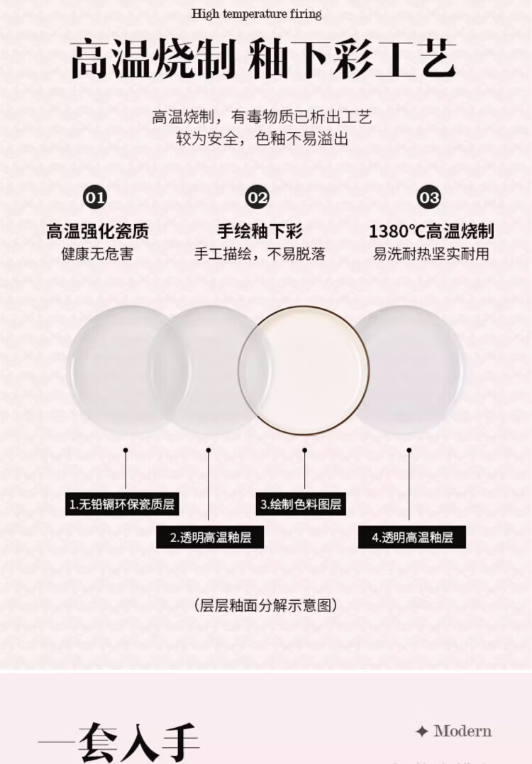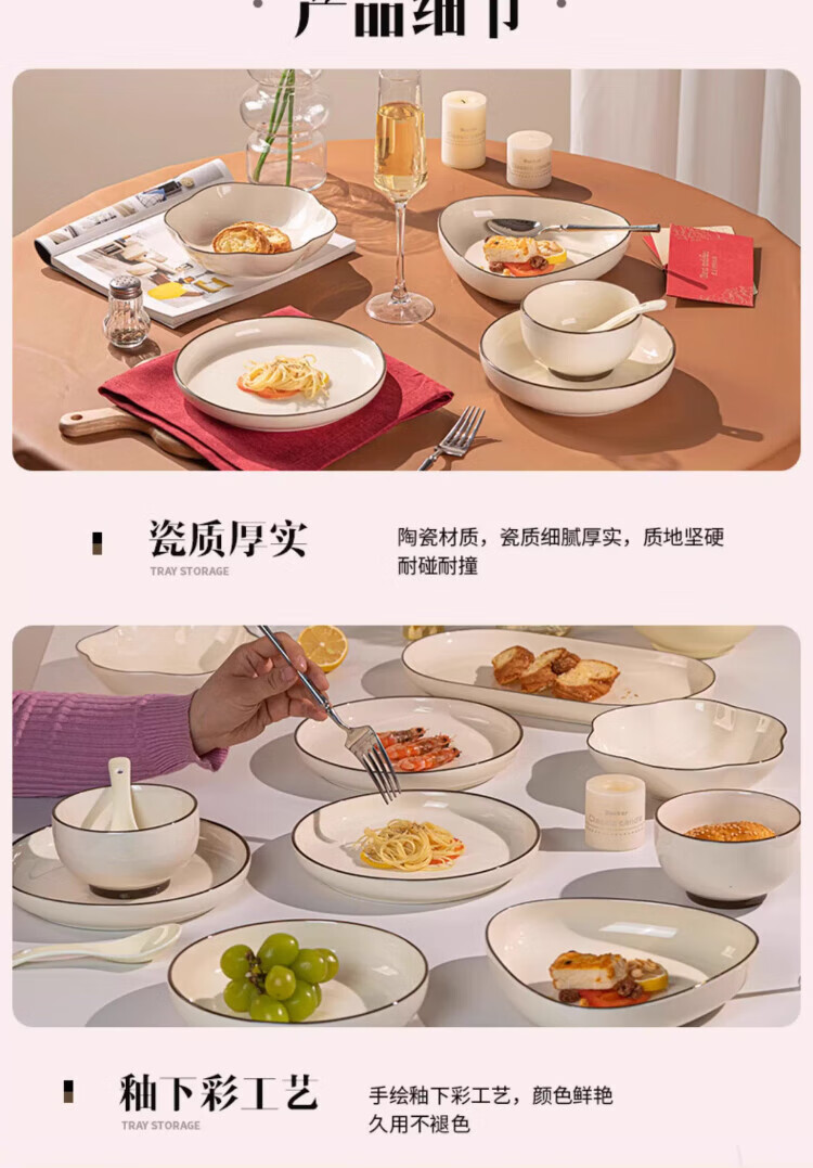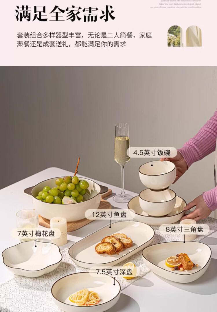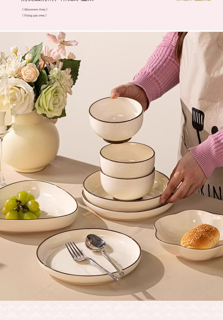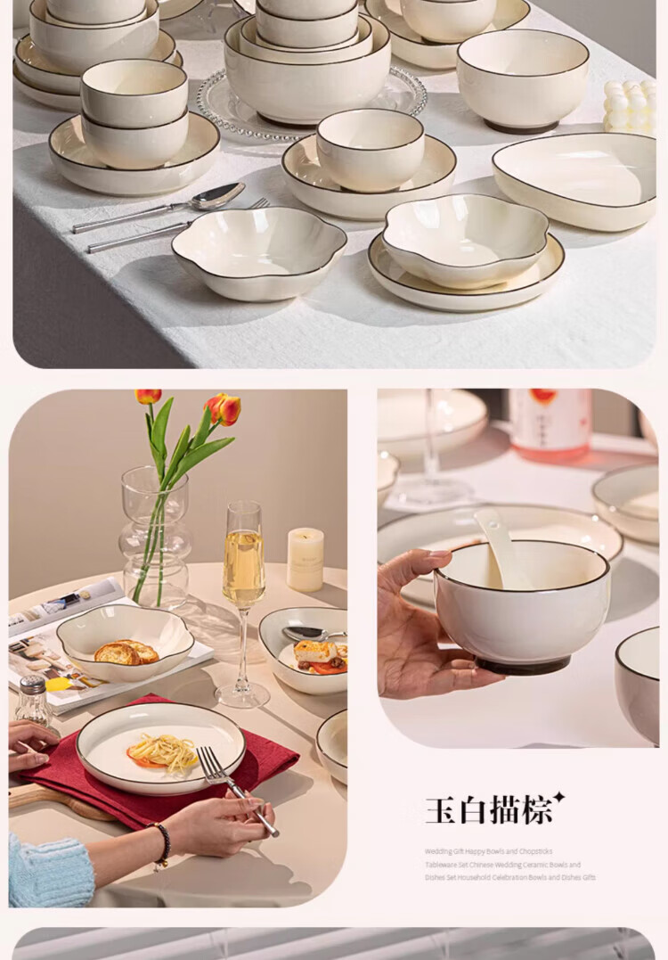 Qianye Bowl Household Set Ceramic Bowls and Tableware Complete Set of Simple Solid Color Bowls Underglaze Colored Bowls, Dishes, and Chopsticks Set 10-person Food 45-piece Set Casserole Gift Box for Moving to a New Home