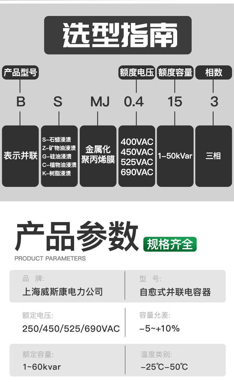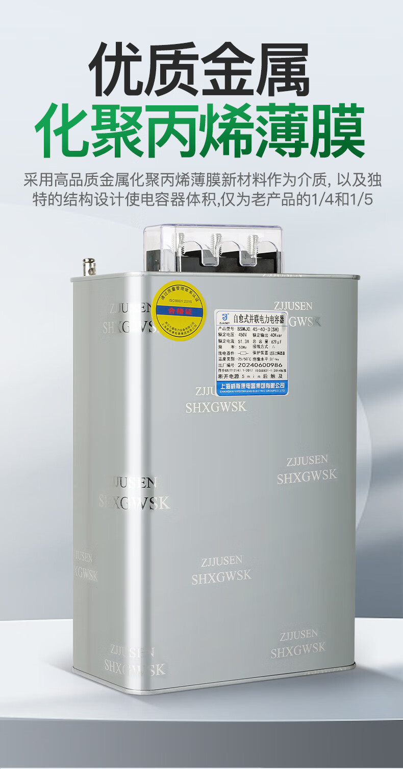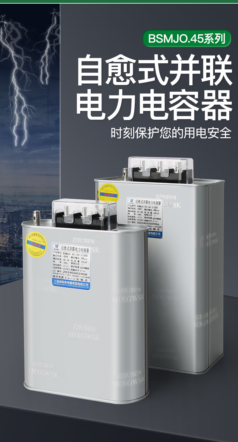 Shanghai Viscon three-phase self-healing parallel power capacitor BSMJ0.45-20/30/40/50/60-3 self-healing Shanghai Viscon genuine 1Kvar (SH) 450v (conventional spot)-3 (three-phase)
