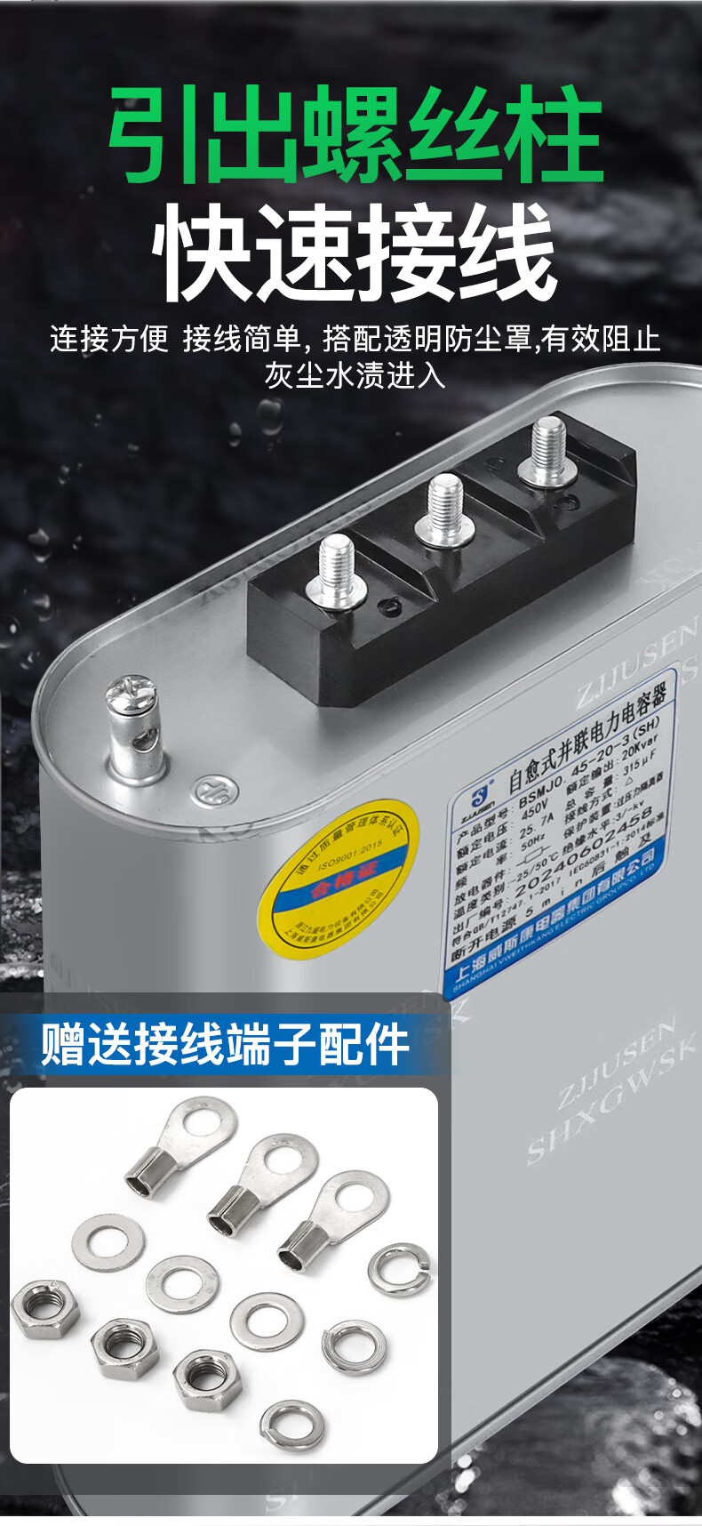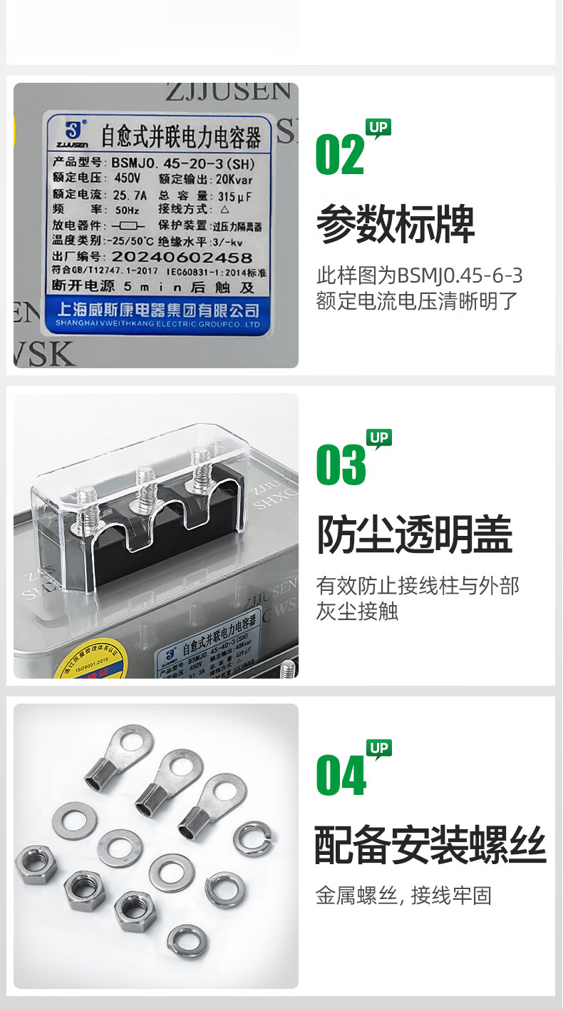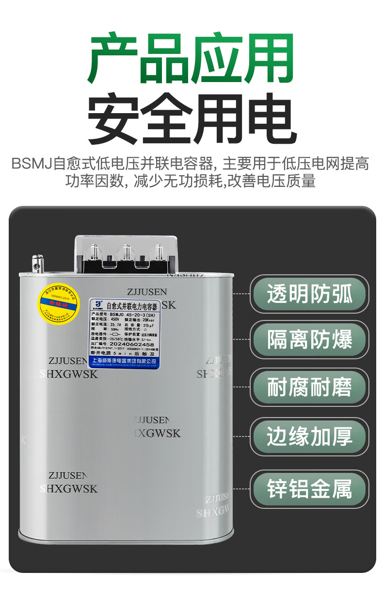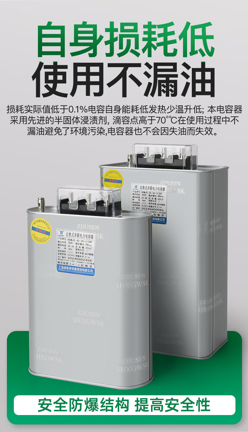 Shanghai Viscon three-phase self-healing parallel power capacitor BSMJ0.45-20/30/40/50/60-3 self-healing Shanghai Viscon genuine 1Kvar (SH) 450v (conventional spot)-3 (three-phase)