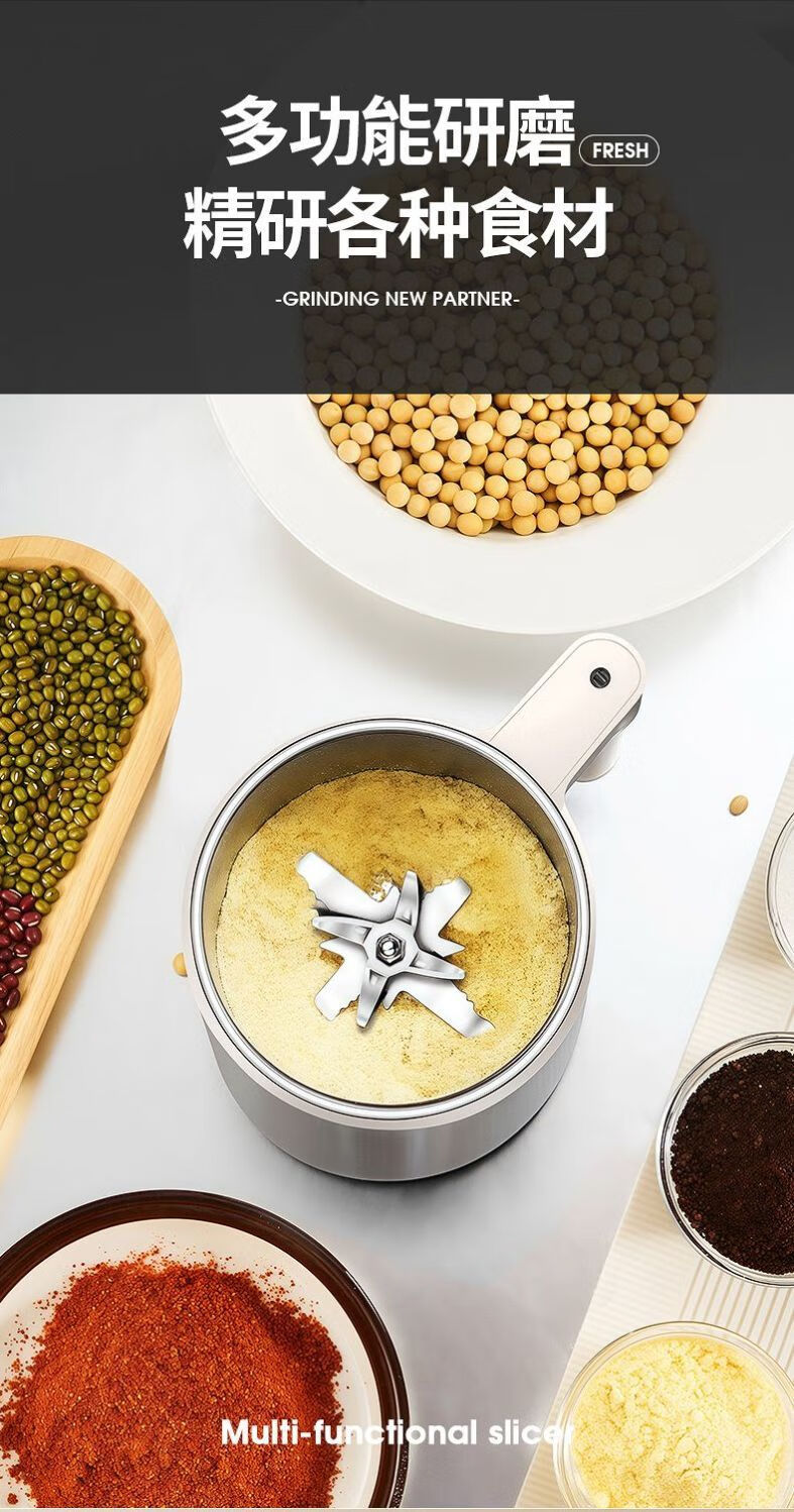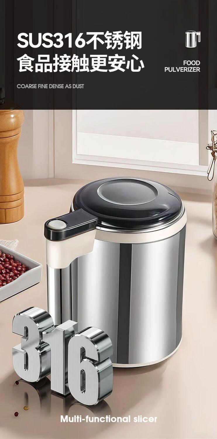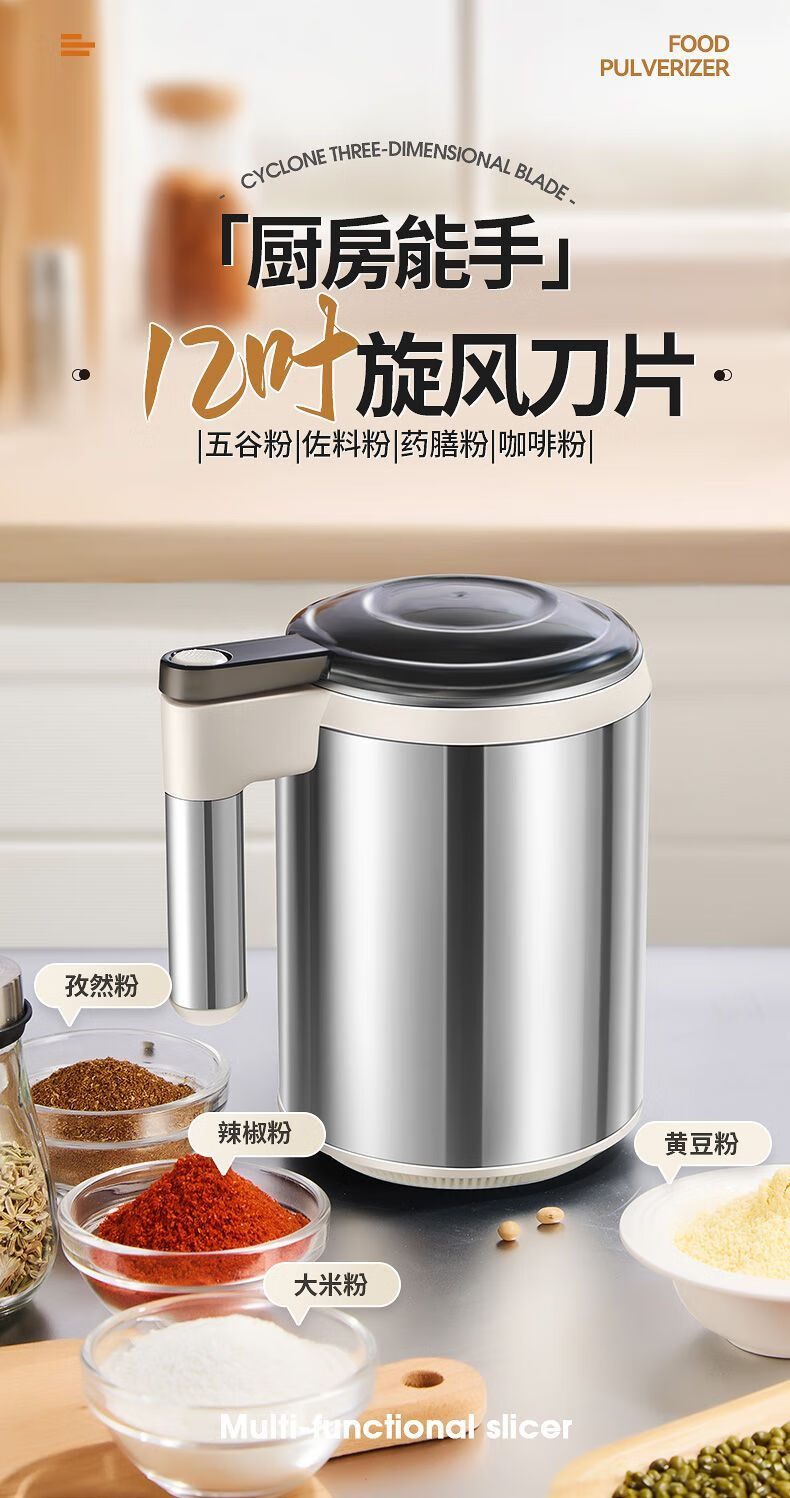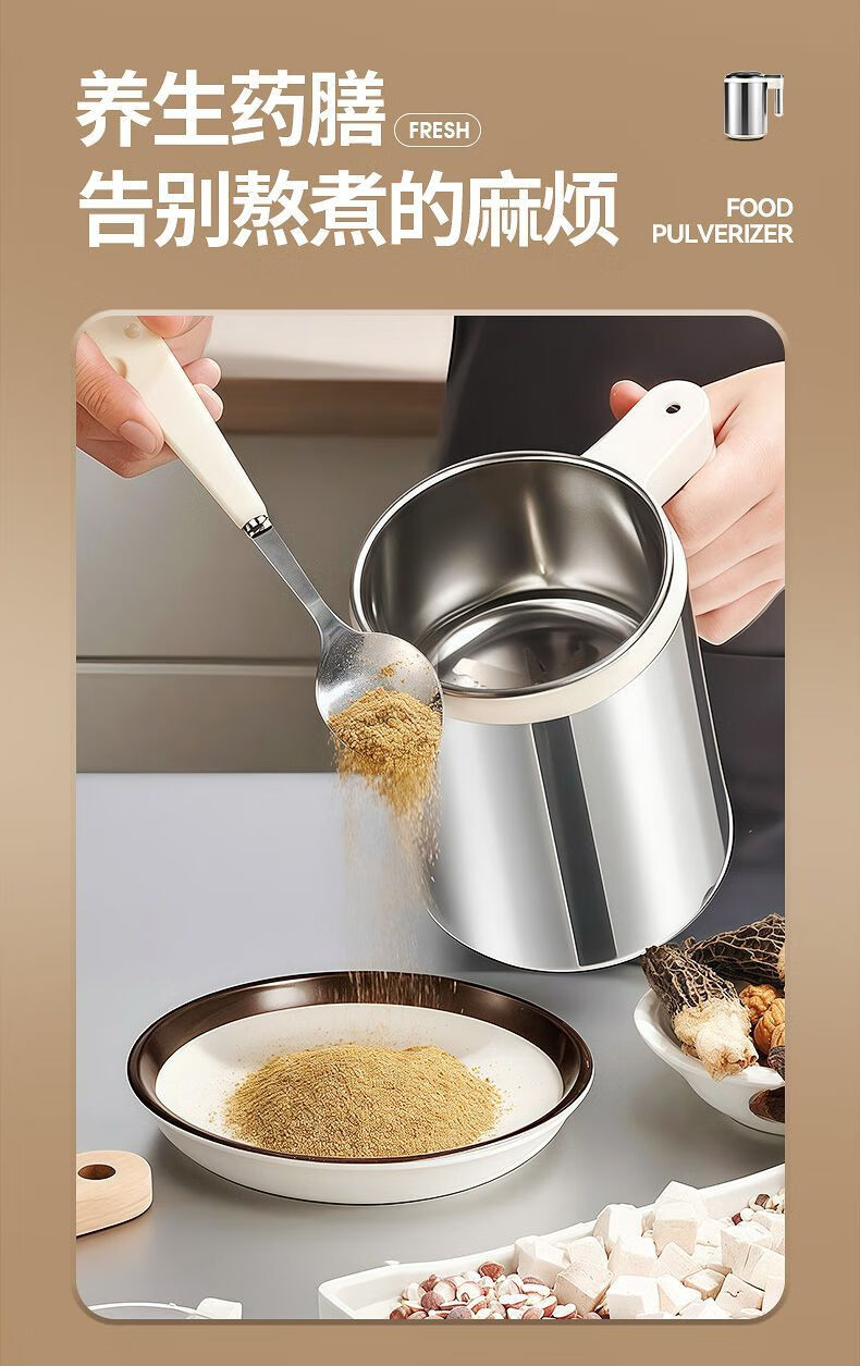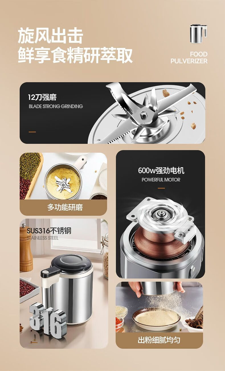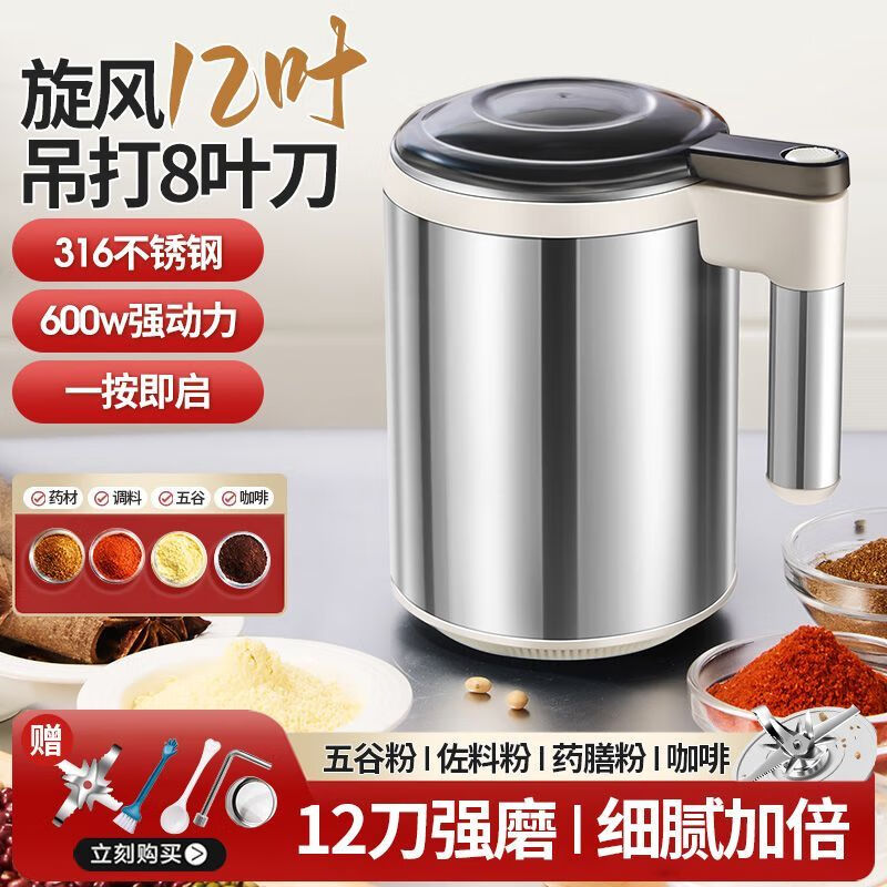 Fat Donglai powder grinder ultra-fine grinder household traditional Chinese medicine grinder small grain 600ml 316 steel 600W+1 knife+mesh screen double-layer 12-leaf blade free brush spoon sleeve