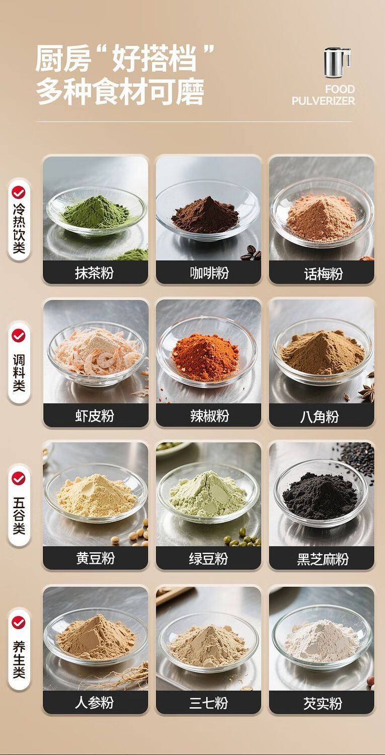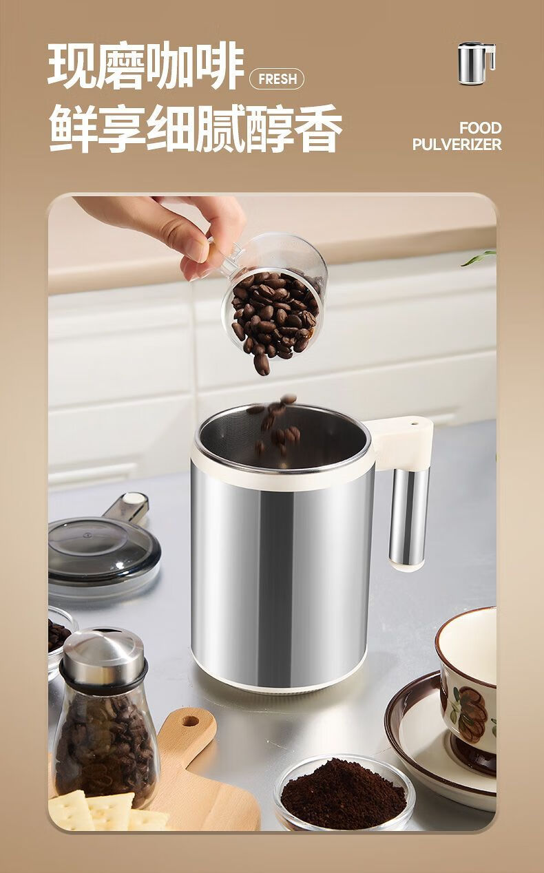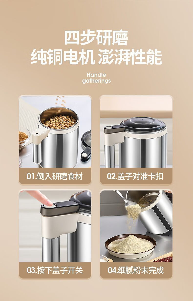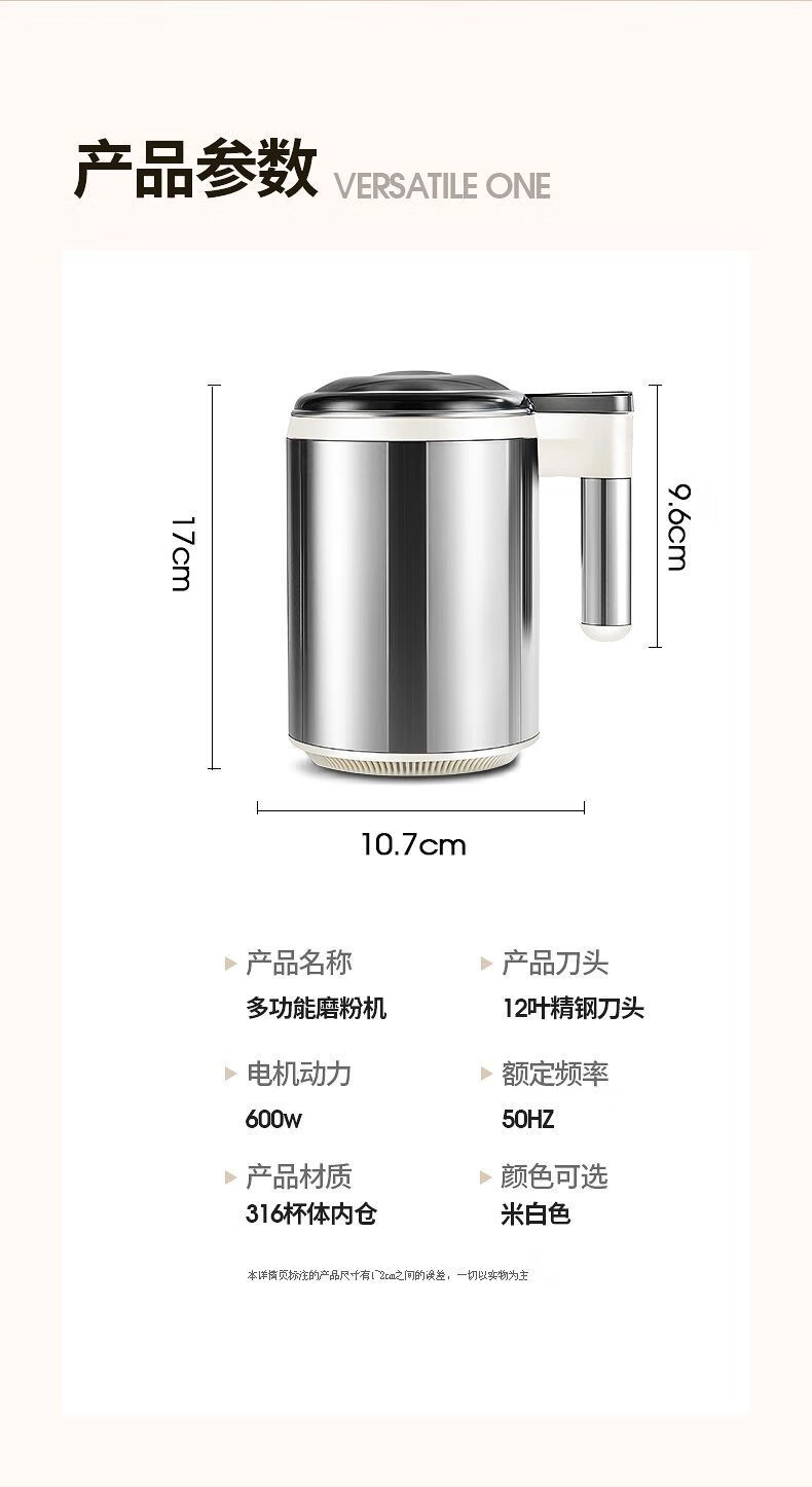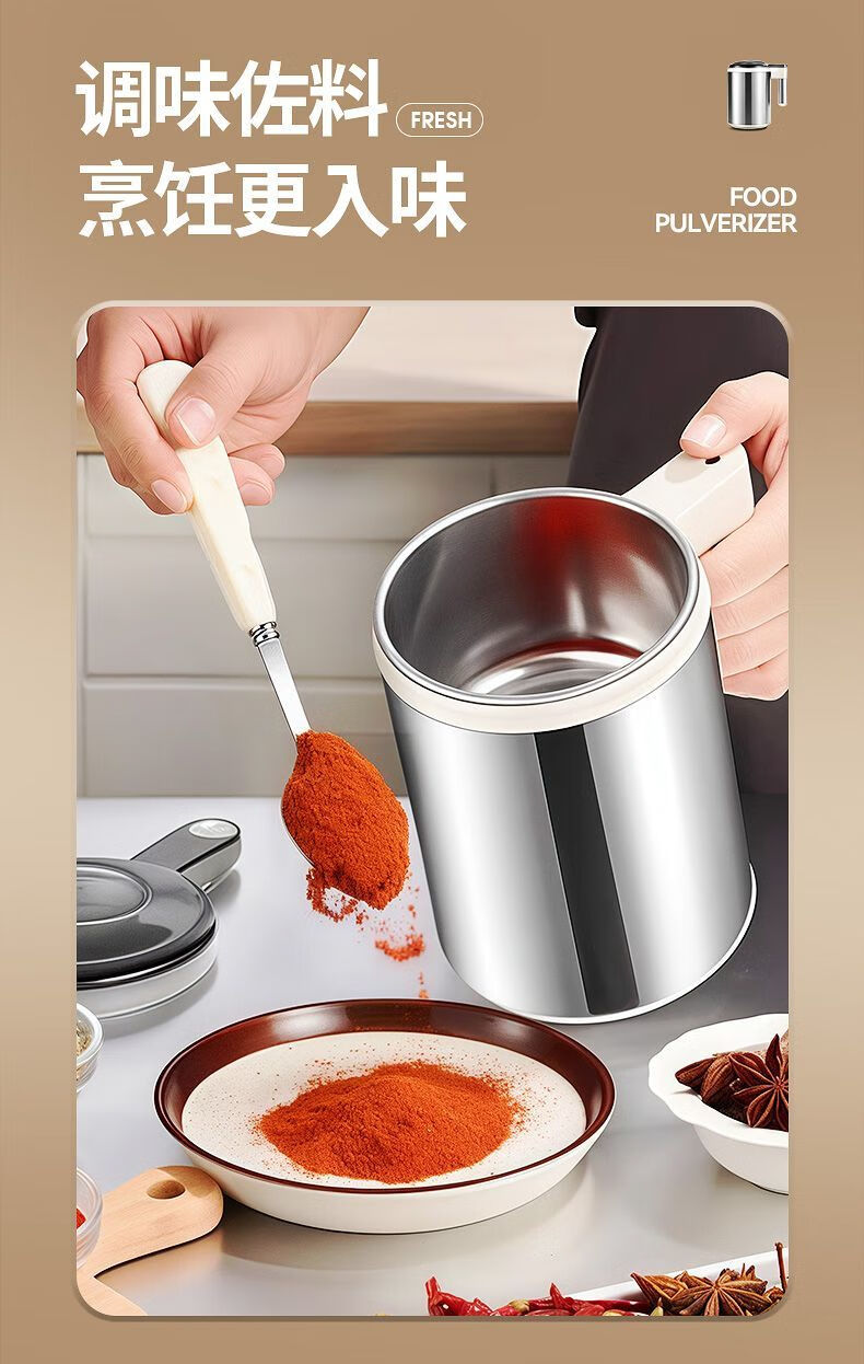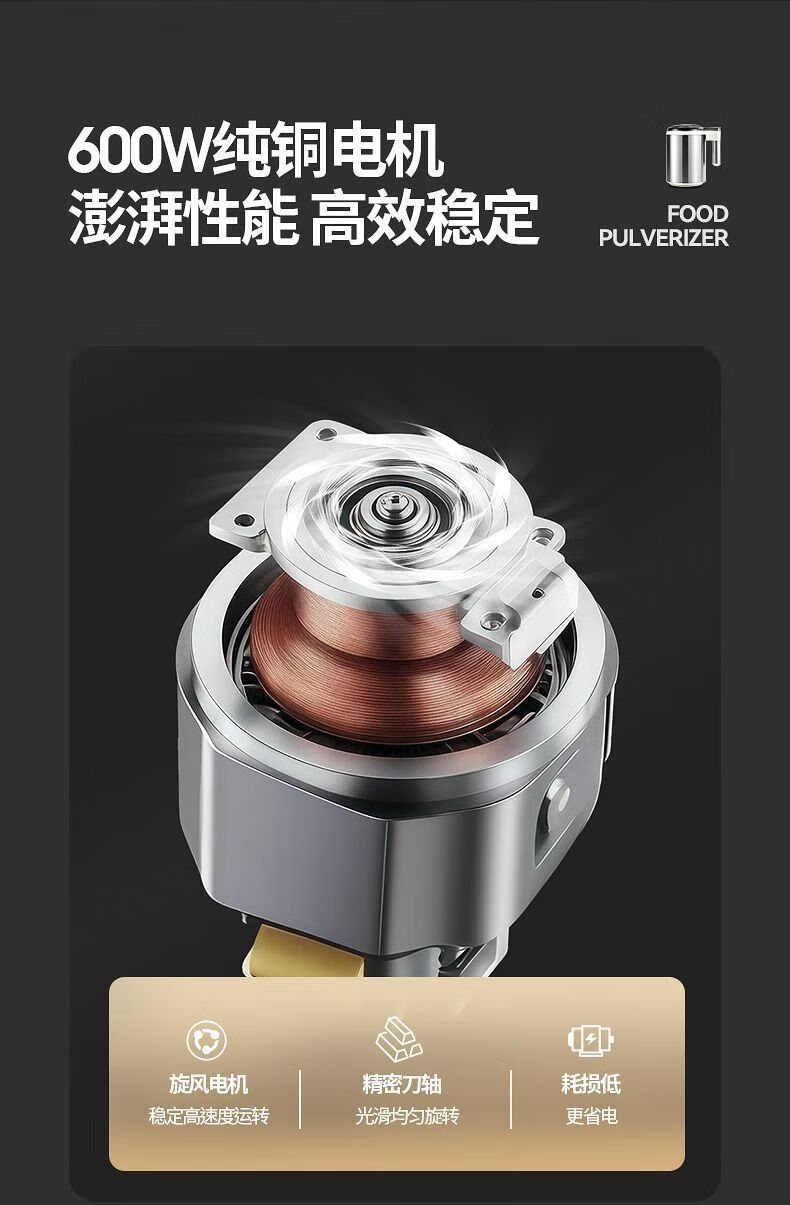 Fat Donglai powder grinder ultra-fine grinder household traditional Chinese medicine grinder small grain 600ml 316 steel 600W+1 knife+mesh screen double-layer 12-leaf blade free brush spoon sleeve