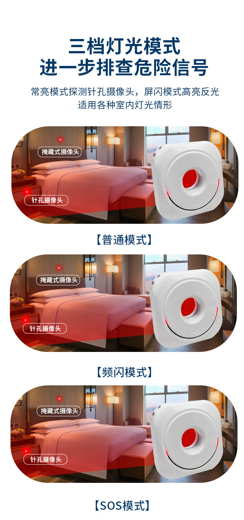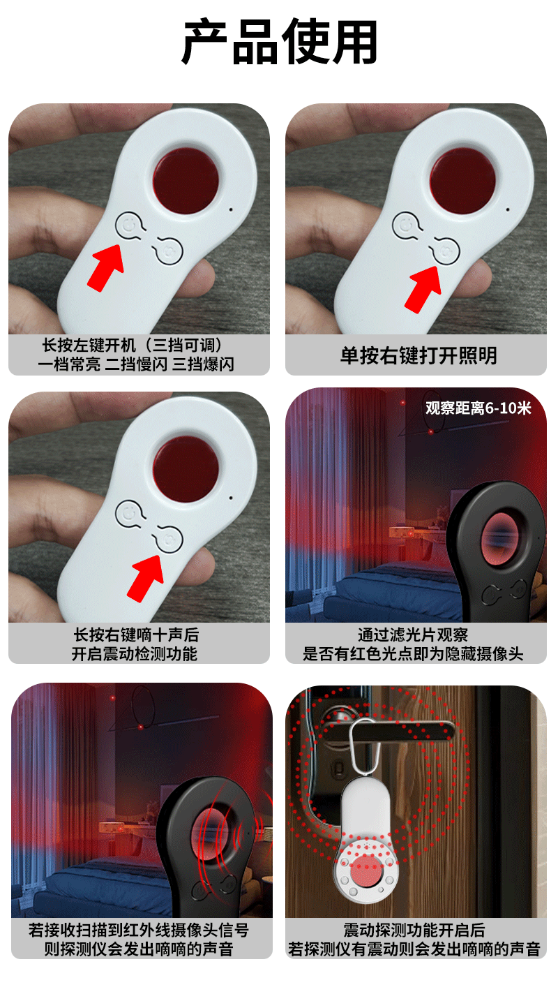 Hotel camera detector intelligent infrared scanning alarm camera detector camera detector camera detector black free hanging ring + 720 long standby