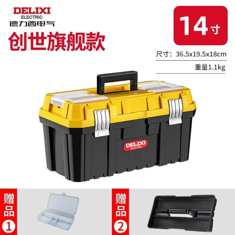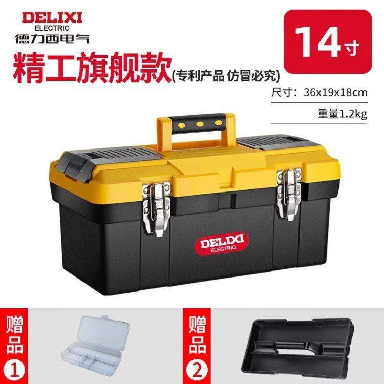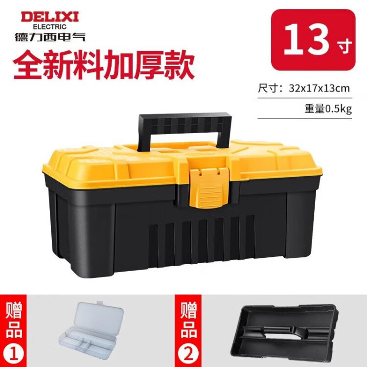 Delixi tool box storage box hardware large industrial-grade household portable vehicle multi-function repair electrician 13-inch classic thickened tool box