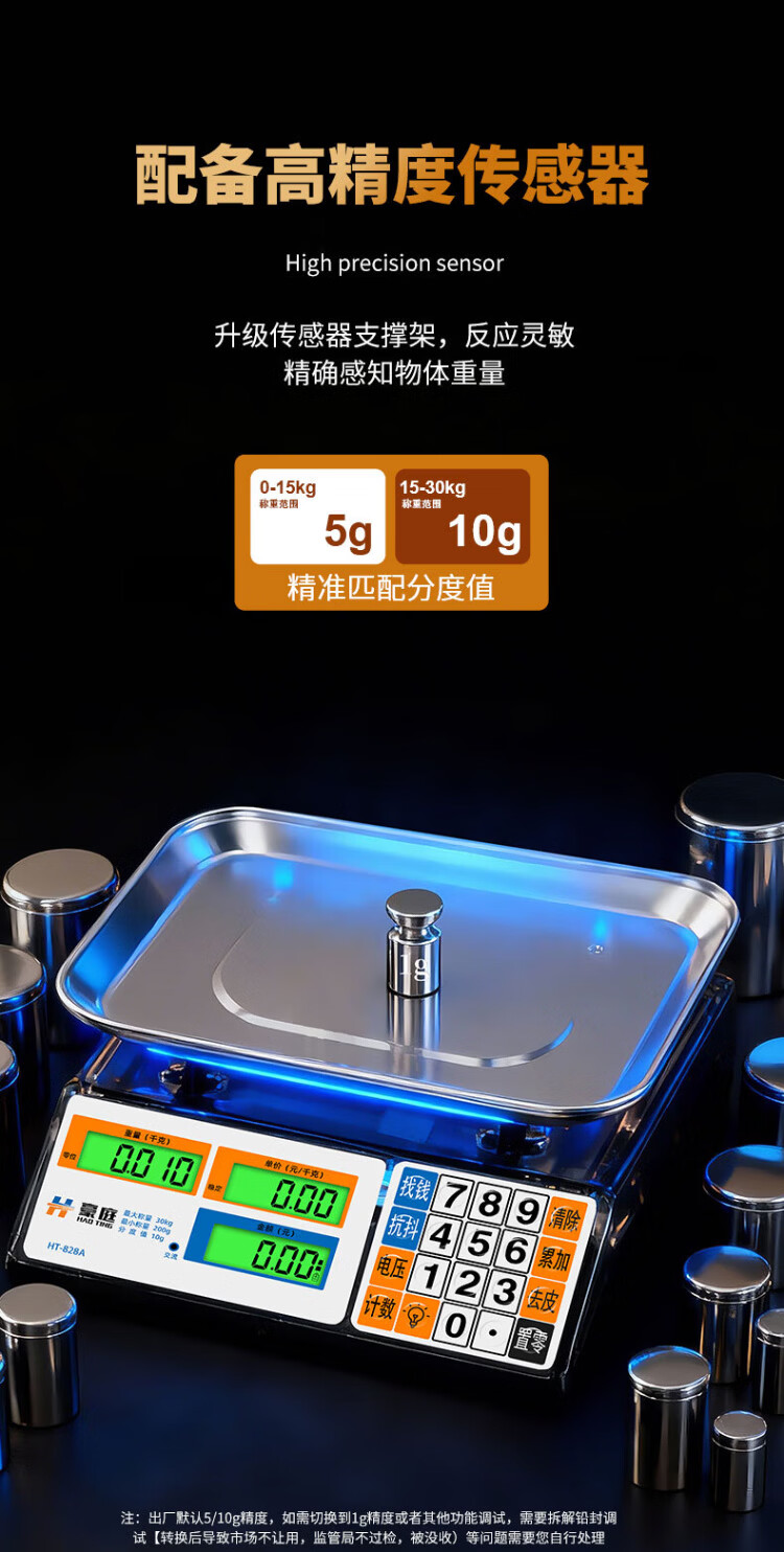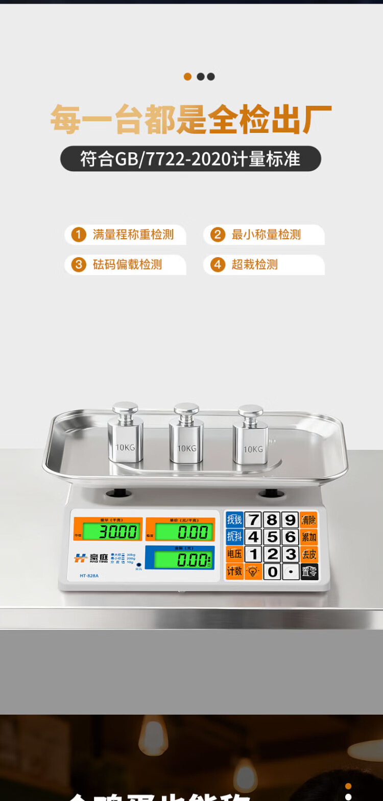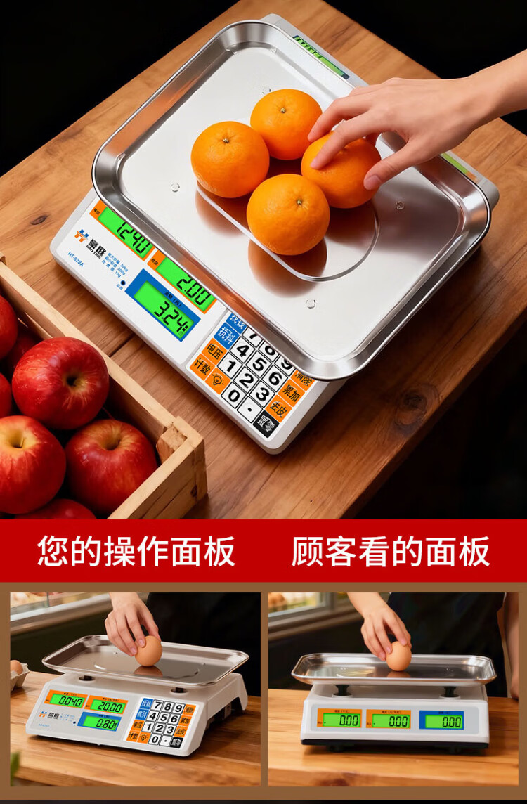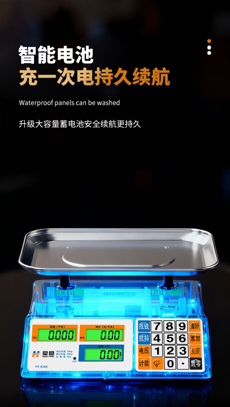 Haoting (HAOTING) weighing electronic scale commercial high-precision kitchen scale food scale kilogram scale supermarket vegetable market fruit and vegetable 30kg kilogram price scale platform scale charging/storage/dry battery three-purpose LCD stainless steel concave plate