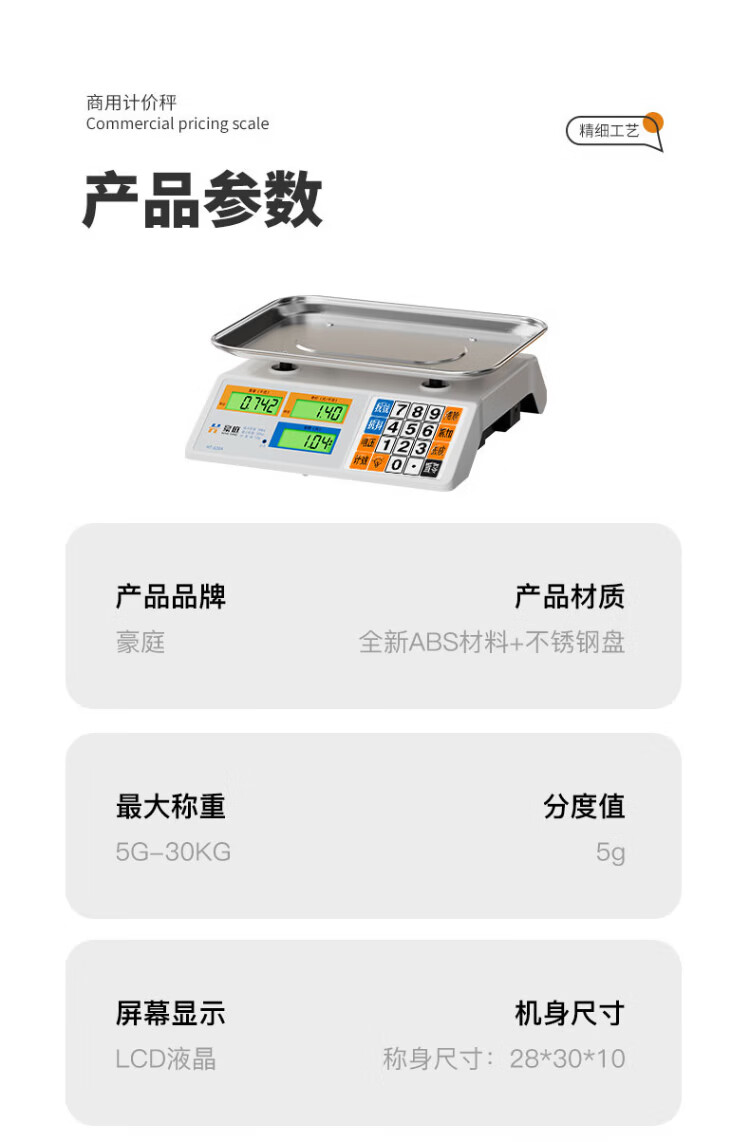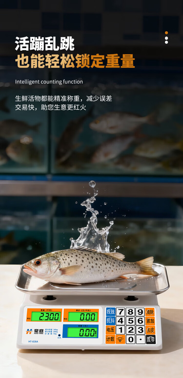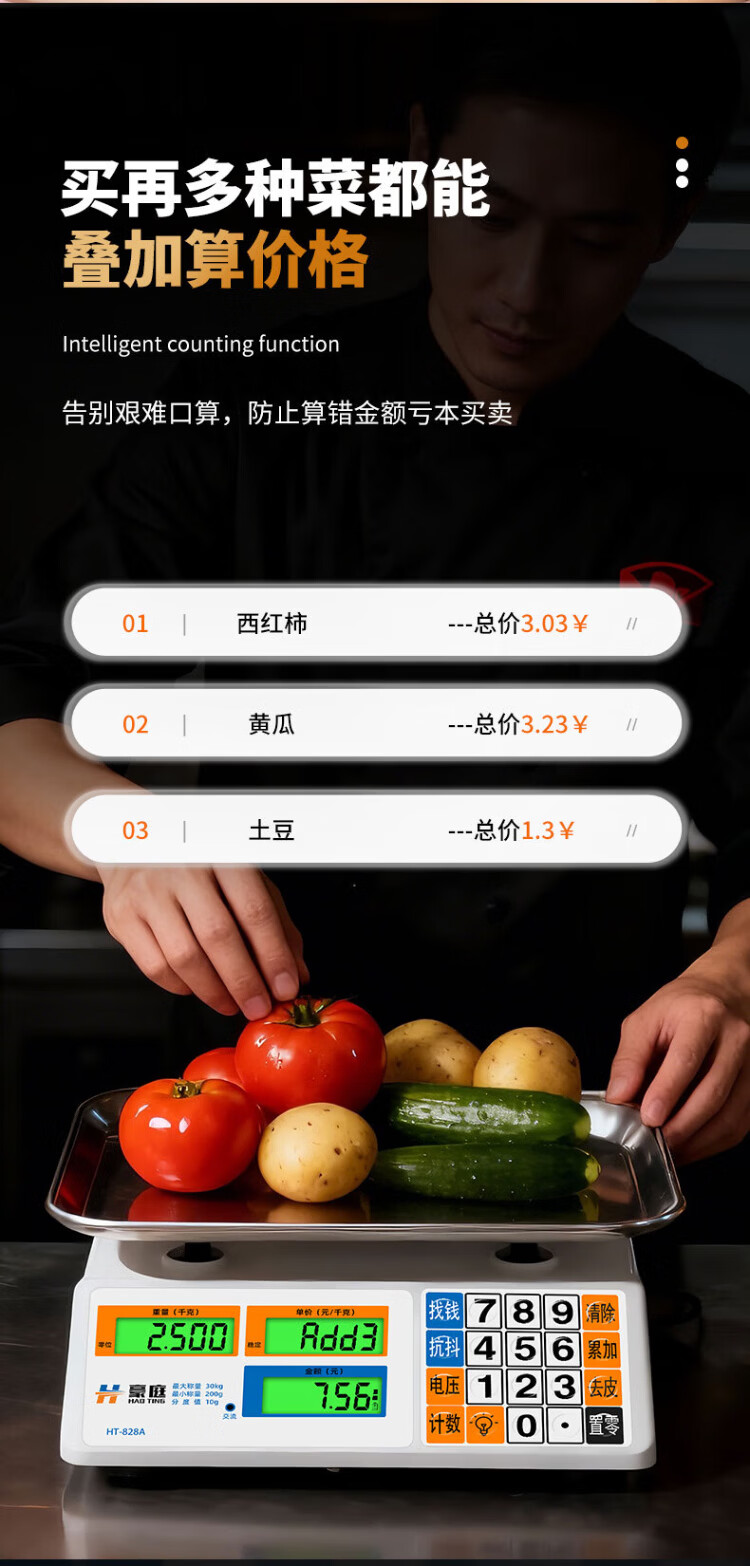Haoting (HAOTING) weighing electronic scale commercial high-precision kitchen scale food scale kilogram scale supermarket vegetable market fruit and vegetable 30kg kilogram price scale platform scale charging/storage/dry battery three-purpose LCD stainless steel concave plate
