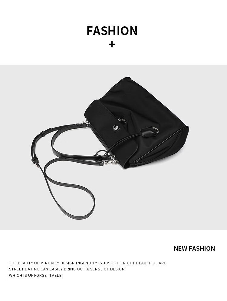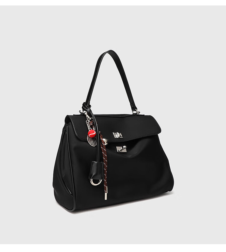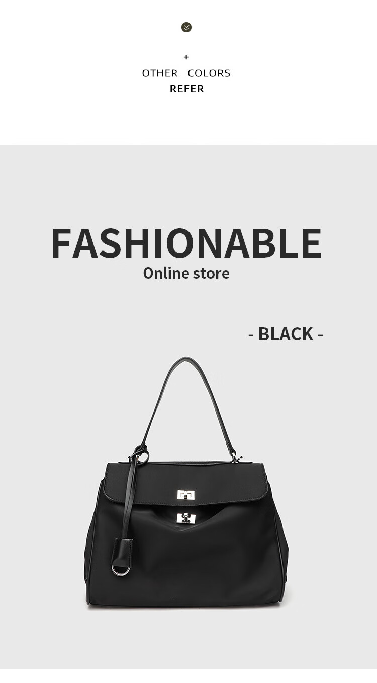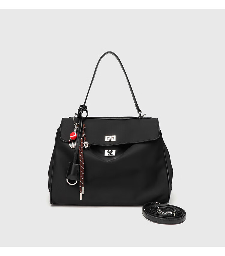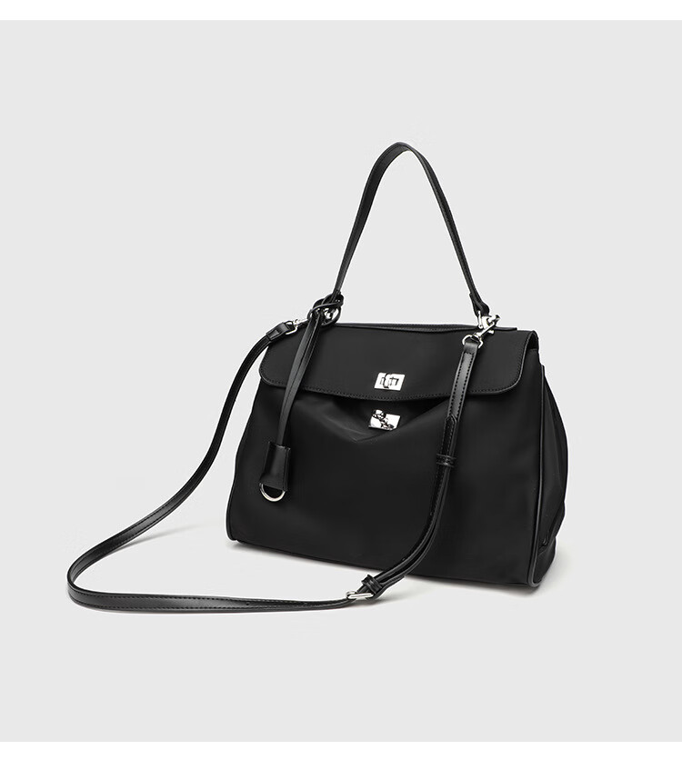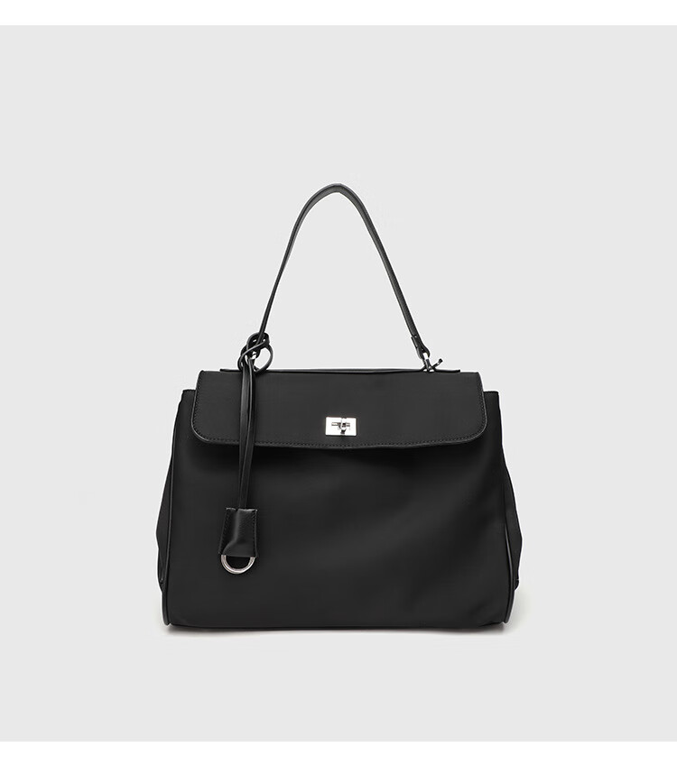 Kangaroo (KANGAROO) launches new Kelly single-shoulder nylon leather handbag for women, armpit lock buckle design commuting tote large capacity simple bag, black medium size (35) (without accessories)