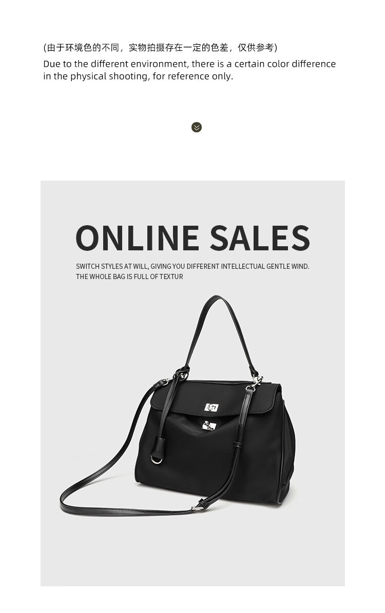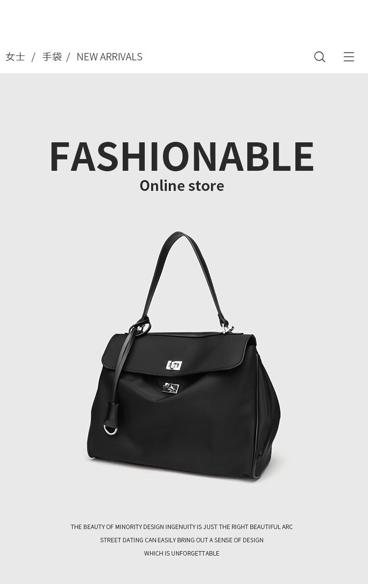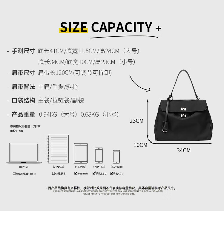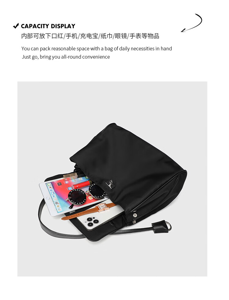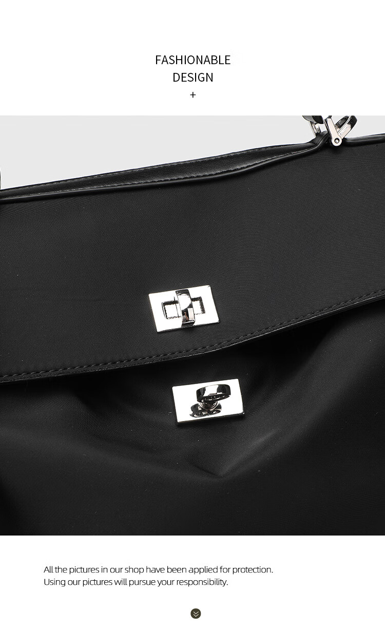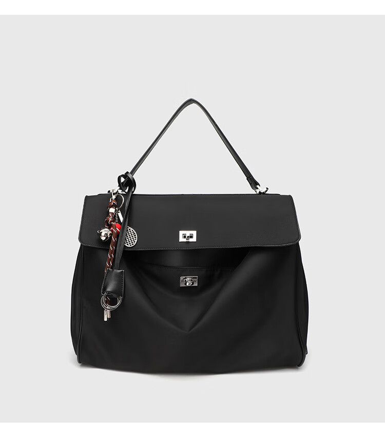 Kangaroo (KANGAROO) launches new Kelly single-shoulder nylon leather handbag for women, armpit lock buckle design commuting tote large capacity simple bag, black medium size (35) (without accessories)
