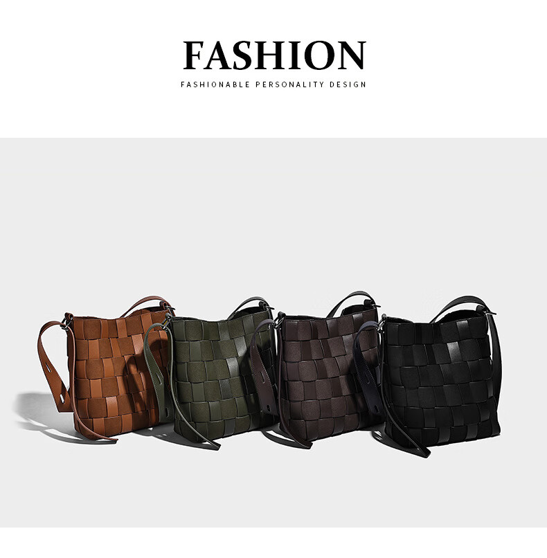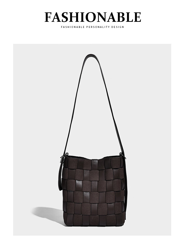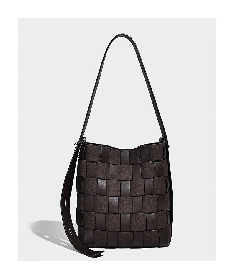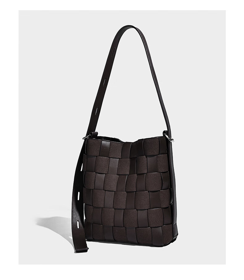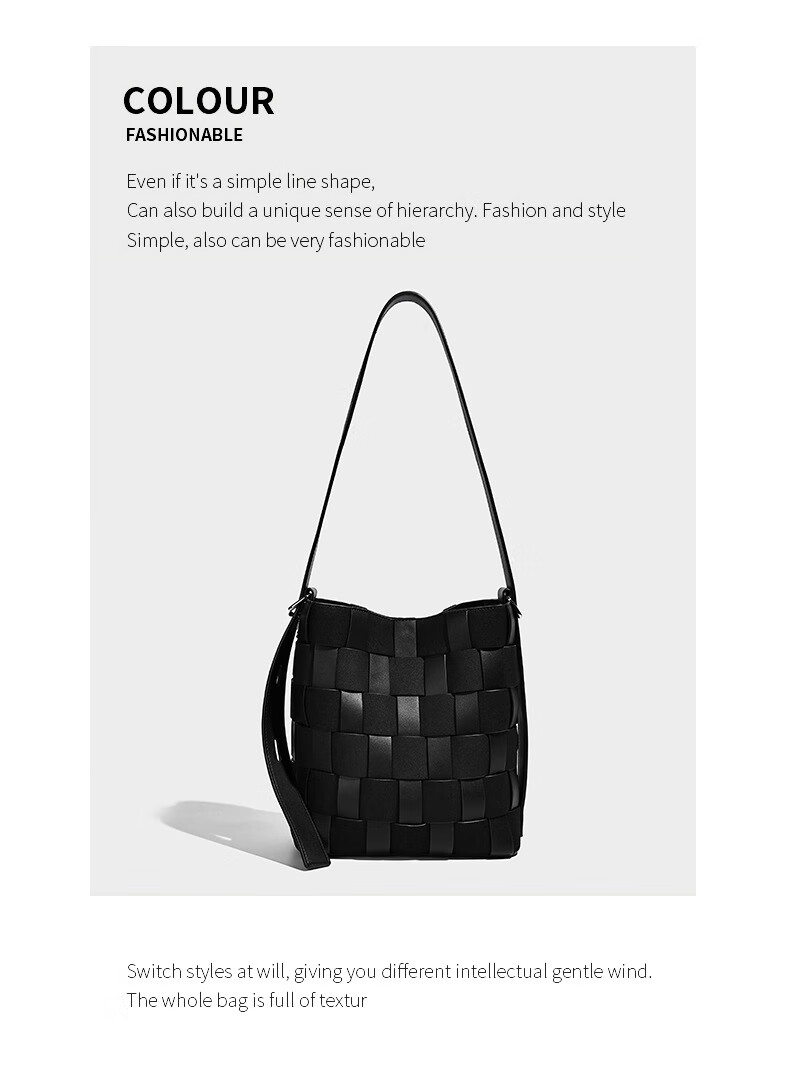 Kangaroo (KANGAROO) new antique style hand-woven bag large capacity commuting bucket bag can be worn on one shoulder, crossbody, under armpit, niche design bag, black 22*10*25CM