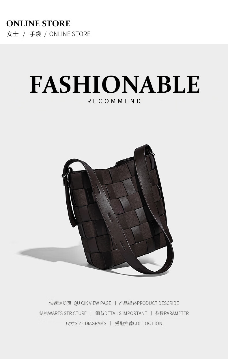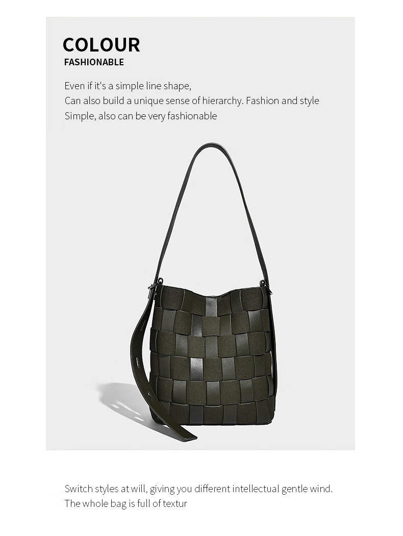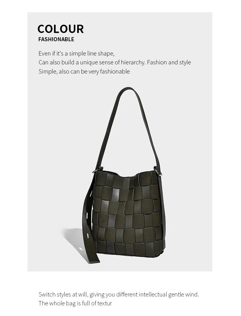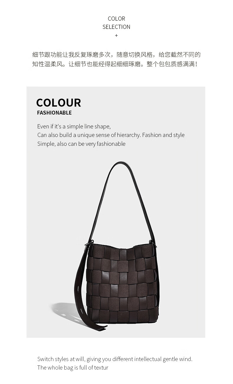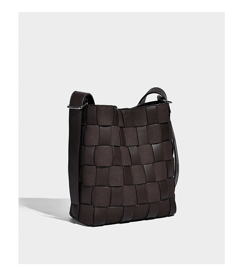 Kangaroo (KANGAROO) new antique style hand-woven bag large capacity commuting bucket bag can be worn on one shoulder, crossbody, under armpit, niche design bag, black 22*10*25CM