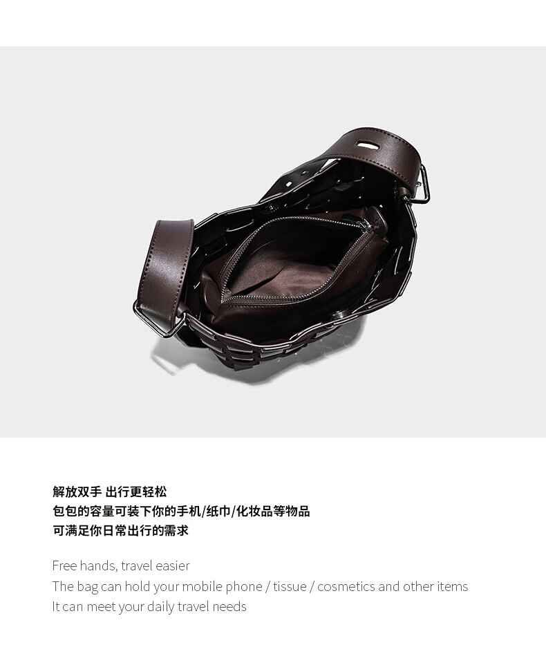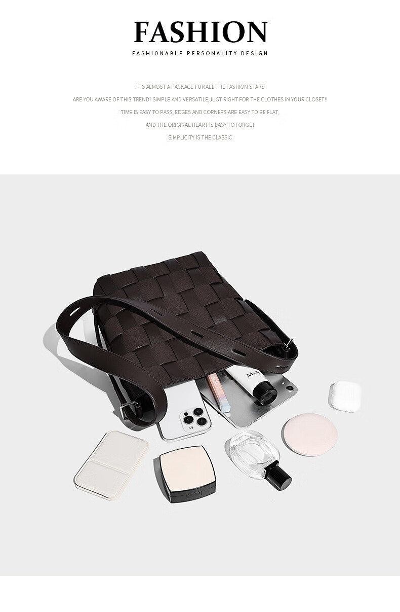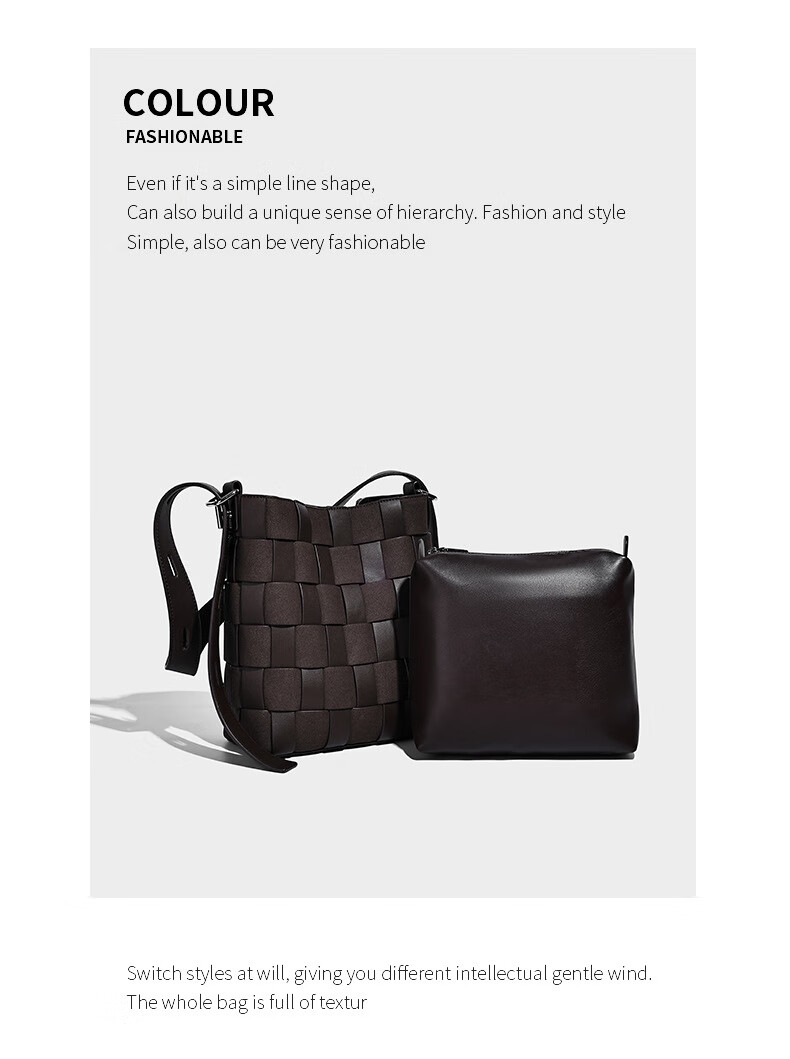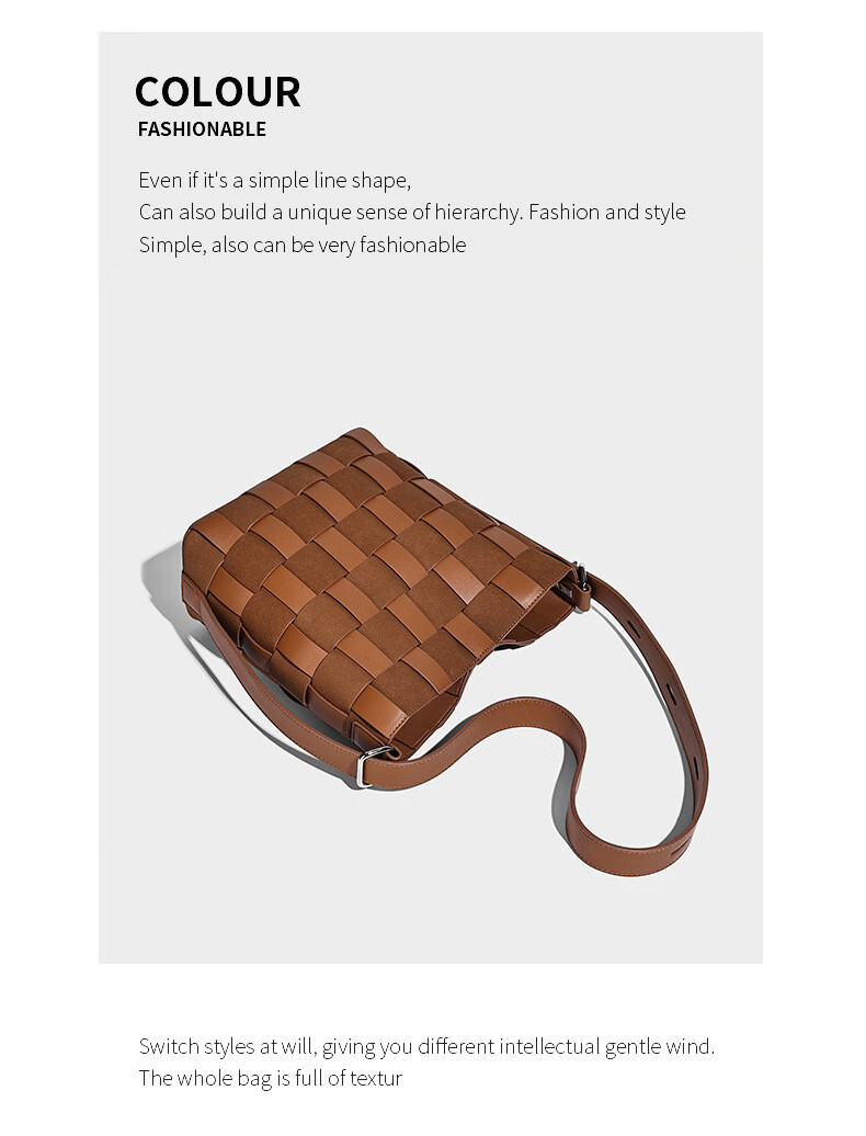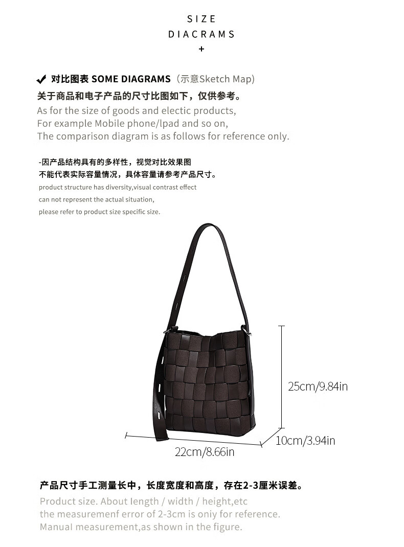 Kangaroo (KANGAROO) new antique style hand-woven bag large capacity commuting bucket bag can be worn on one shoulder, crossbody, under armpit, niche design bag, black 22*10*25CM
