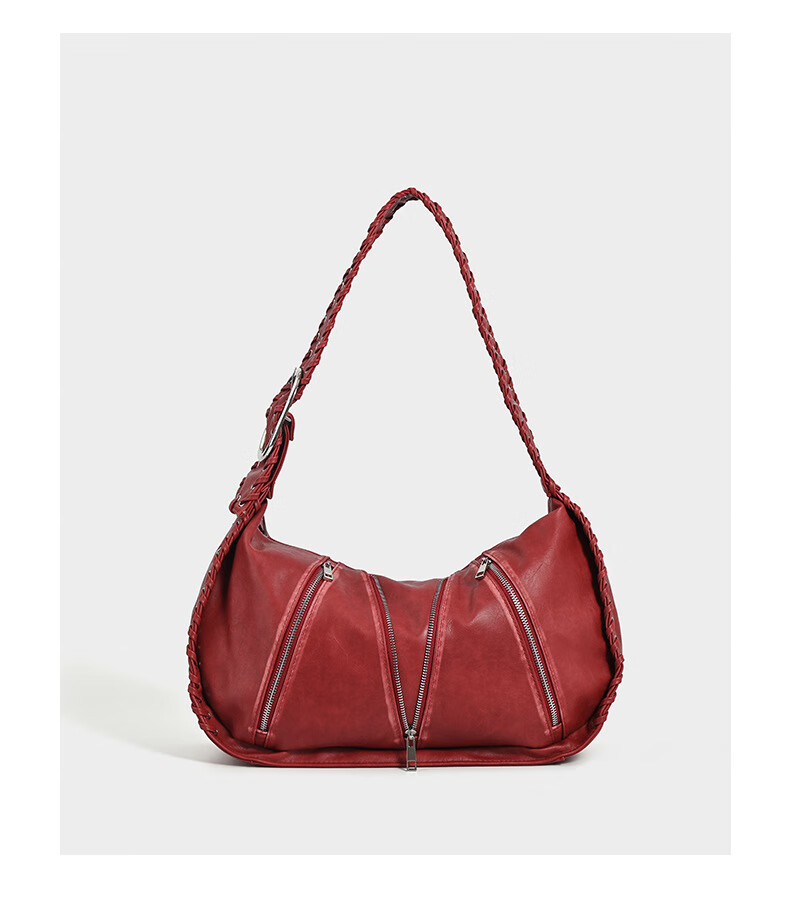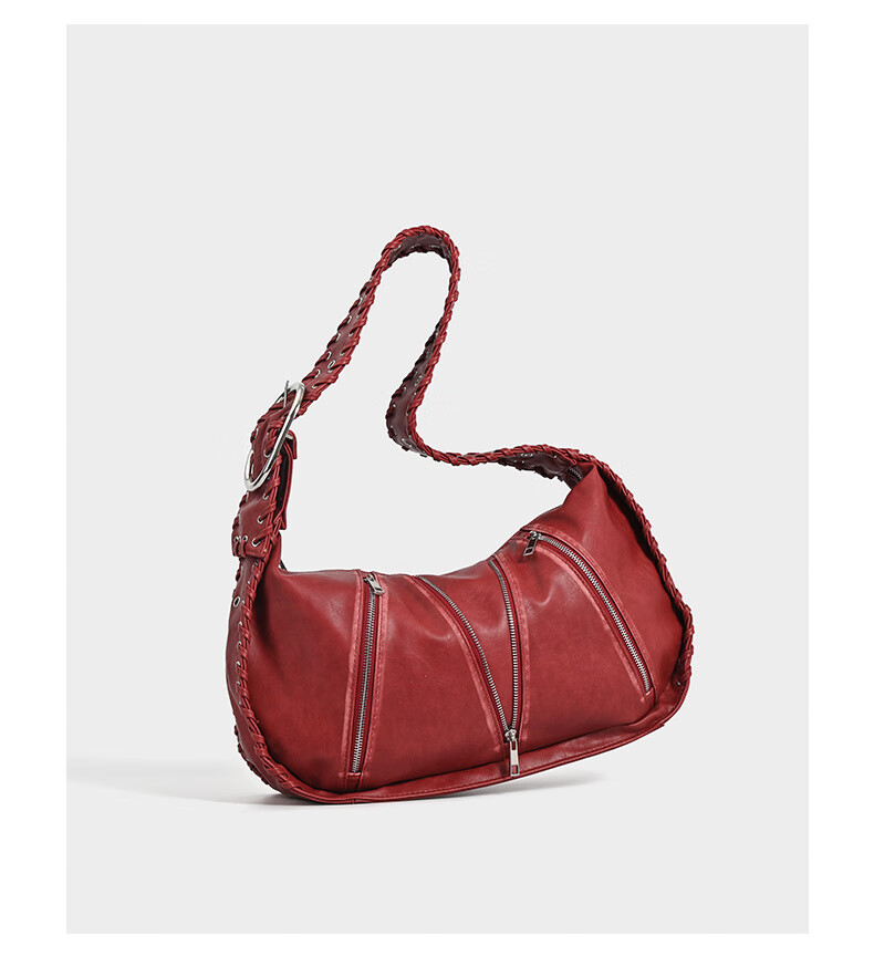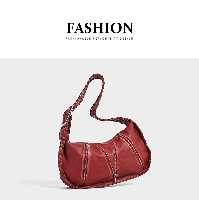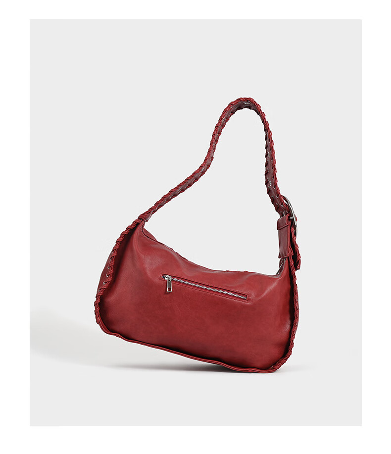 Kangaroo (KANGAROO) new retro woven pattern red armpit bag women's commuter shoulder bag large capacity design niche new bag rub color brown