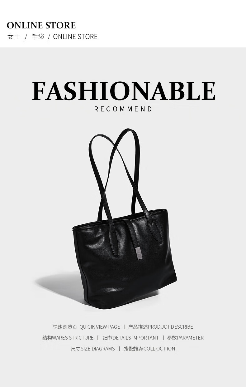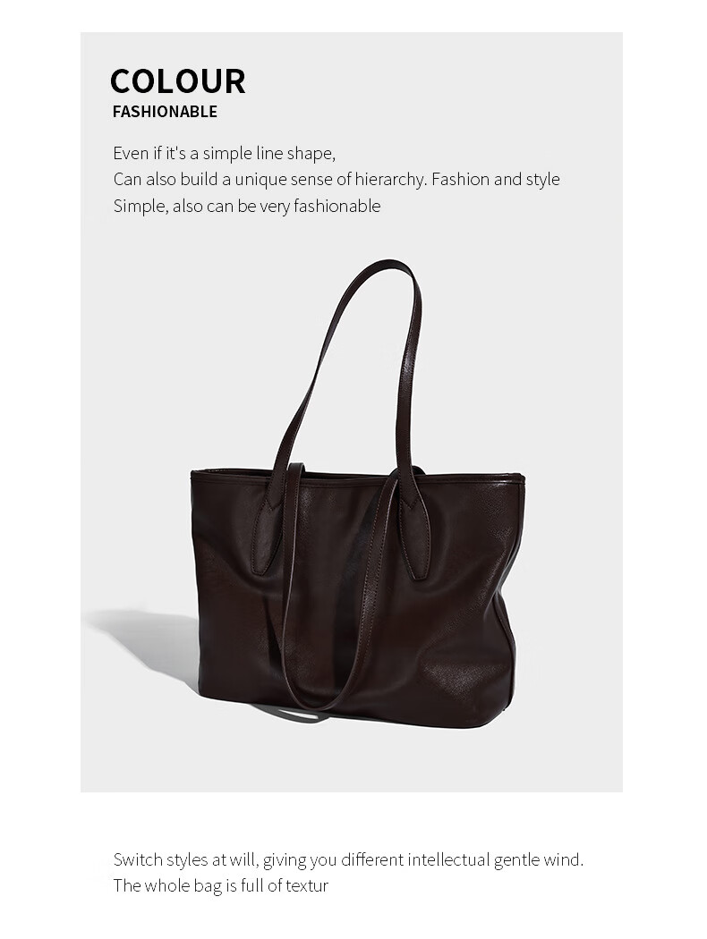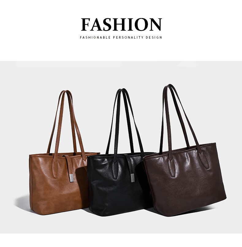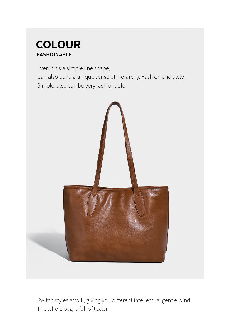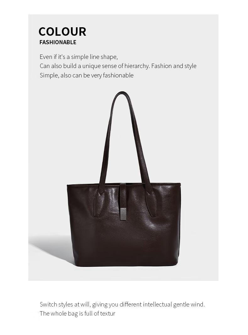 Kangaroo (KANGAROO) launches new vegetable tanned soft leather tote bag for women, large capacity commuting shoulder bag, casual and simple design, daily outing, coffee color 33*15*27CM