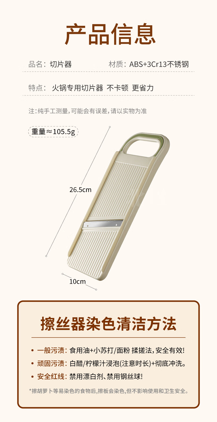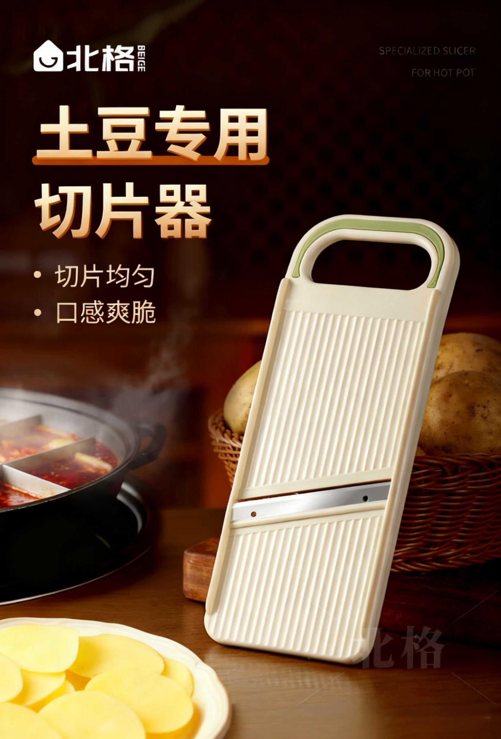 Beige Potato Chip Slicing Artifact Plate Grinder Manual Household Slicer Sweet Potato Cucumber Sweet Potato Hot Pot Tool Light Slicer Easy to Cook without Losing the Taste
