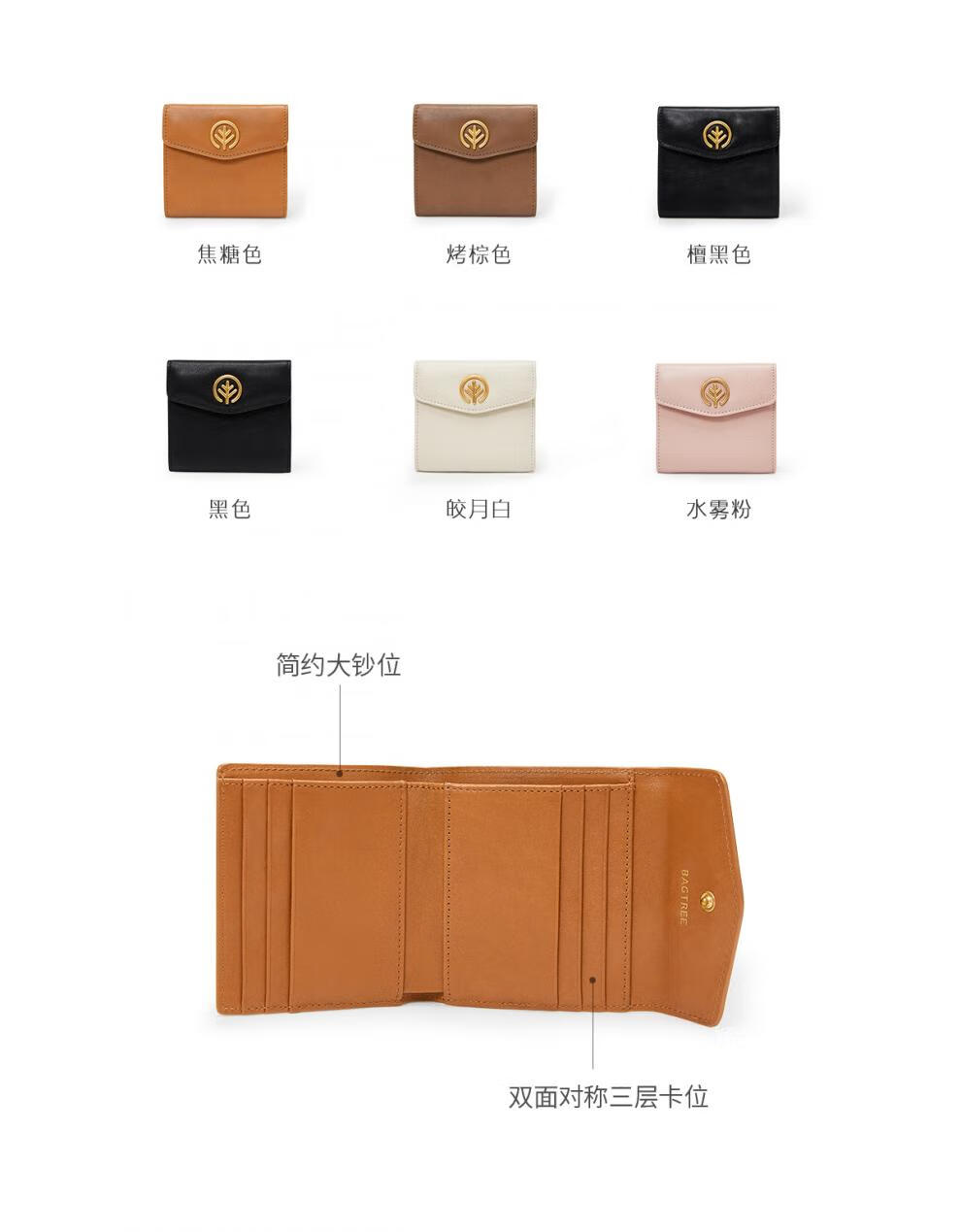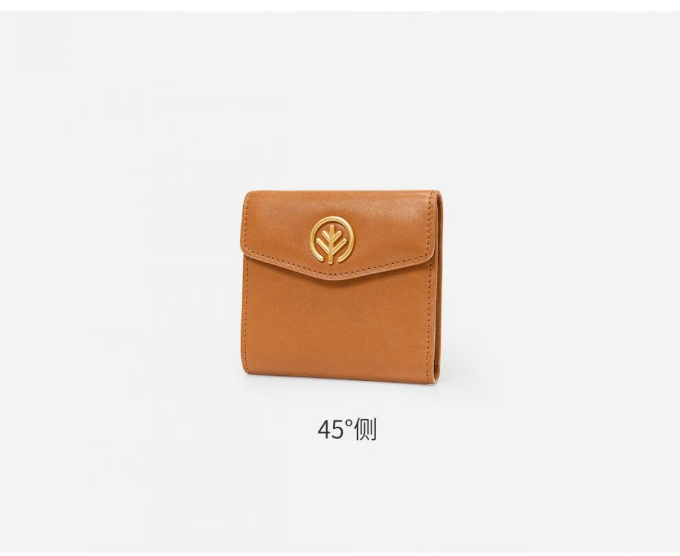 BAGTREE Bag Tree Wallet First Layer Vegetable Tanned Cowhide Women's Card Holder Lightweight Compact Short Genuine Leather Coin Purse Caramel Color