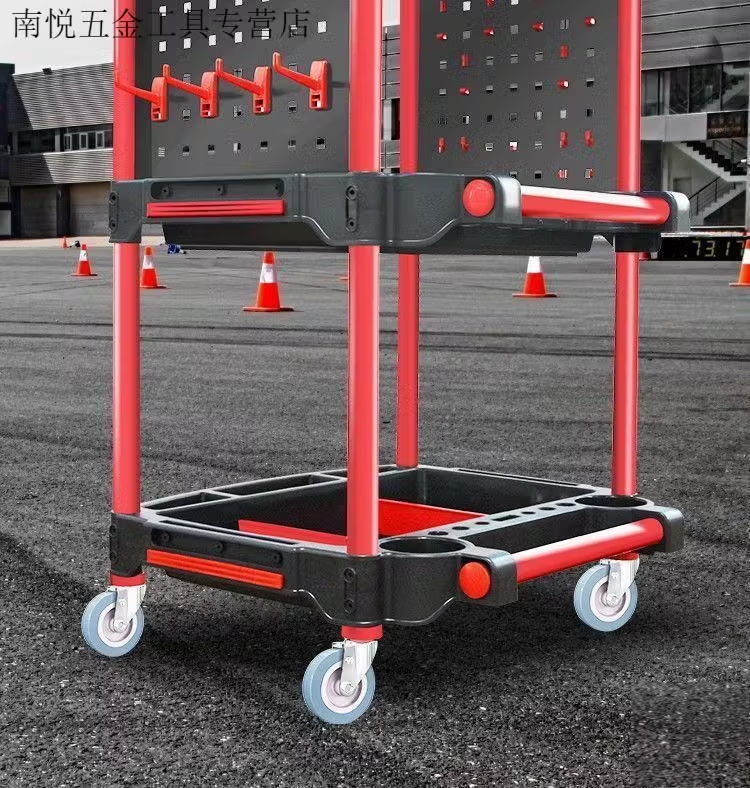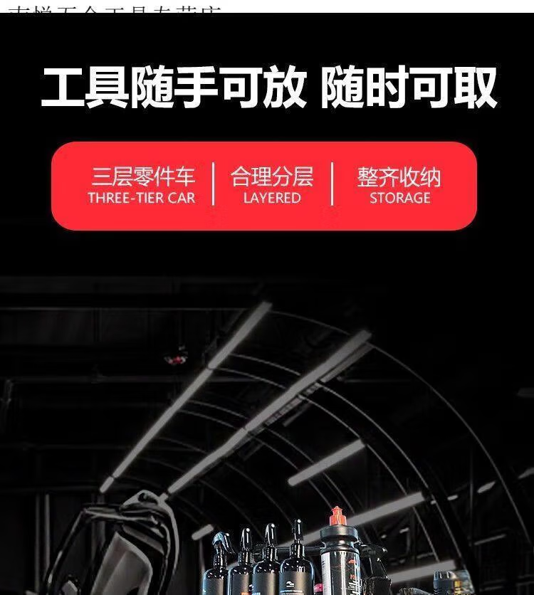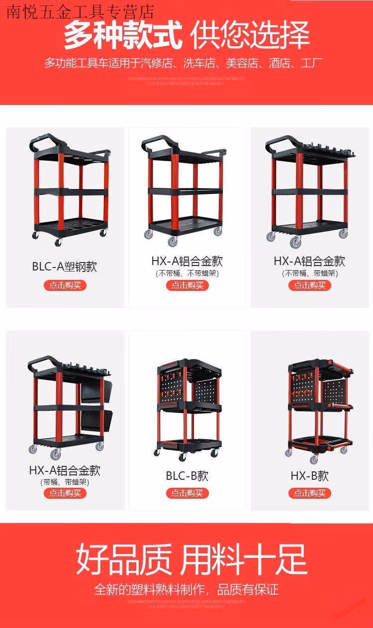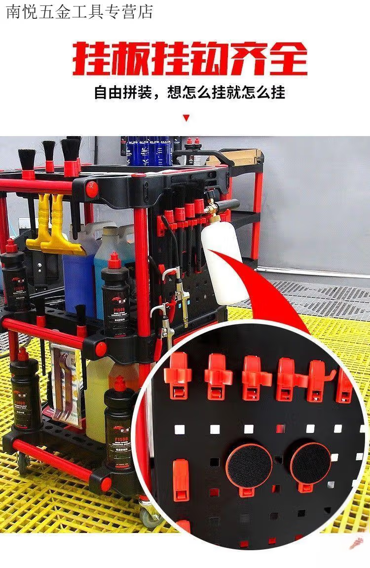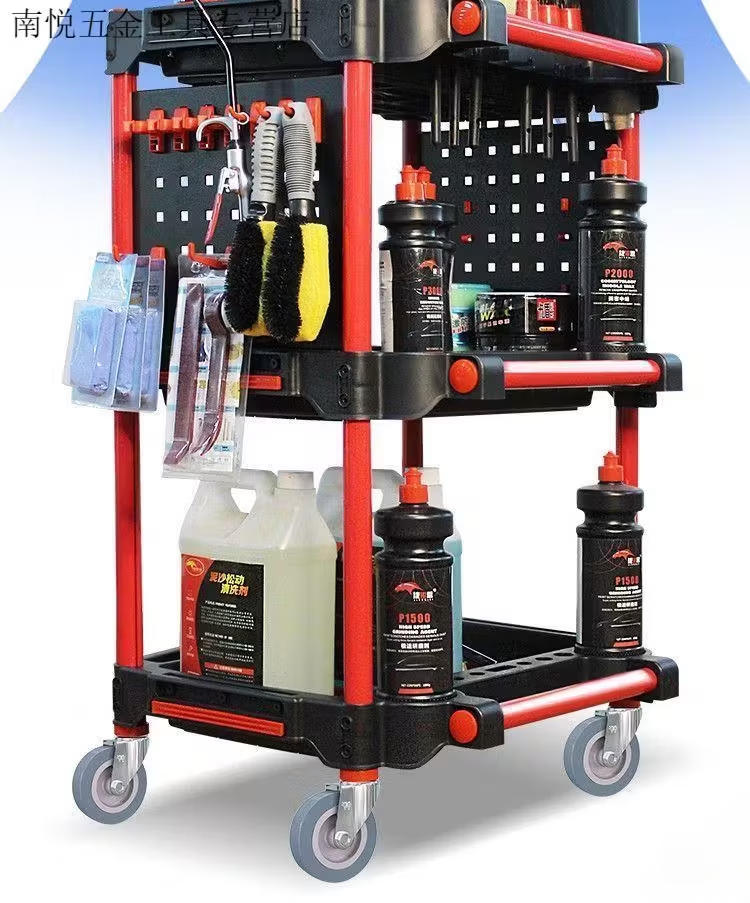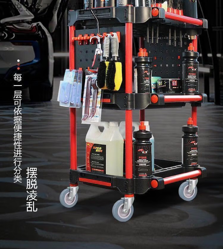 Qiaobo Lai Car Wash Shop Car Beauty Tool Trolley Special Multifunctional Plastic Three-Layer Mobile Storage Trolley Rack - (Factory Direct Delivery) Tool Trolley with Double Buckets (Flat)
