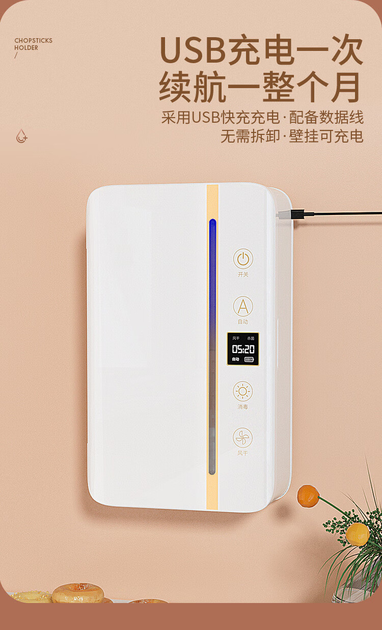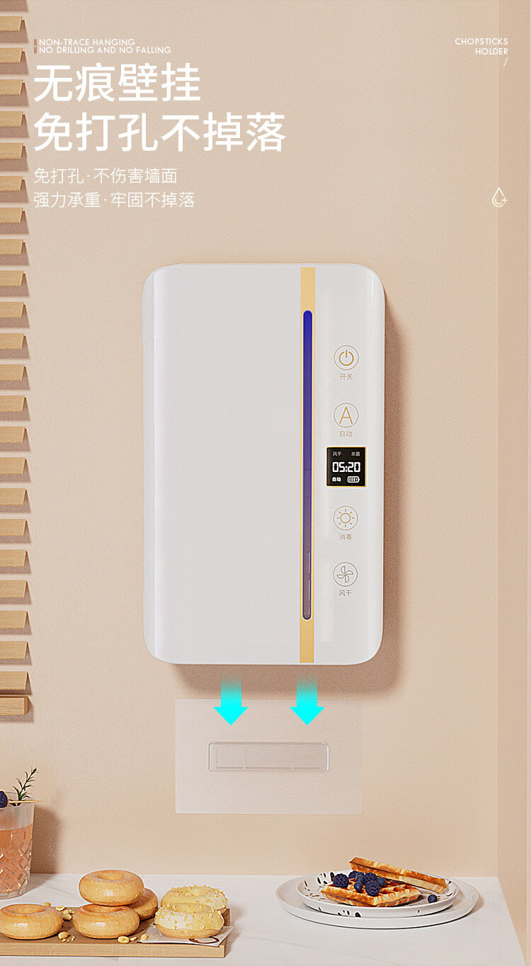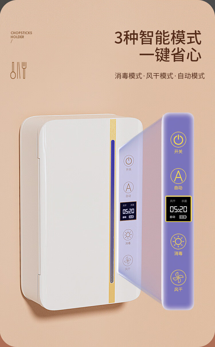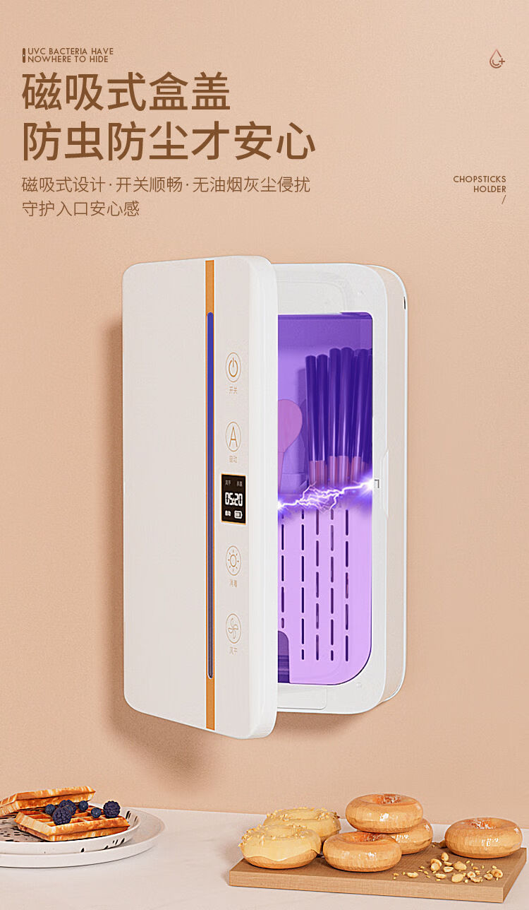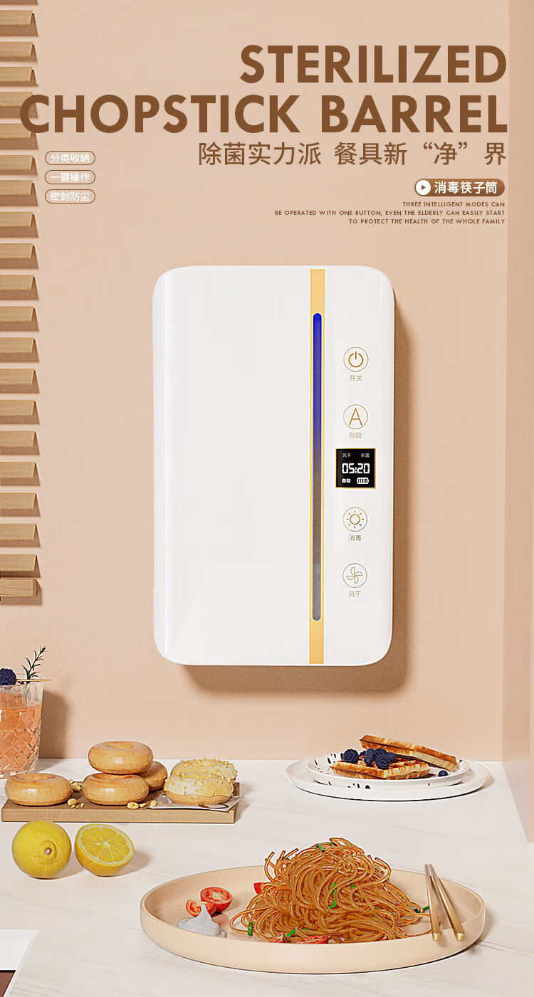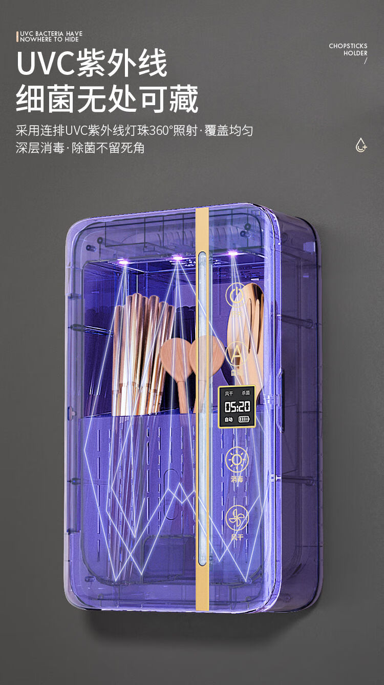 Cross-border preferred sterilized chopstick barrel, smart chopstick sterilizer, ultraviolet sterilization and drying integrated chopstick cage, chopstick basket, black, upgraded screen display