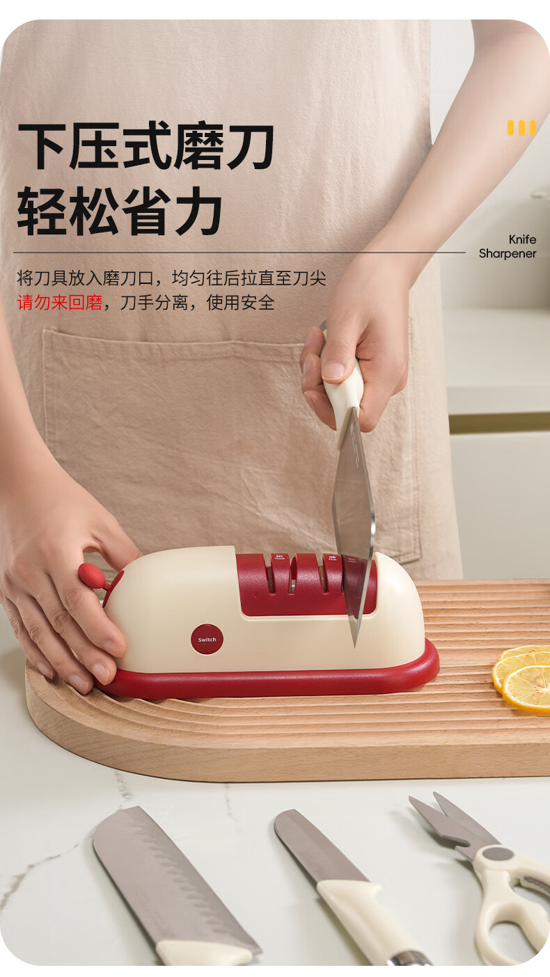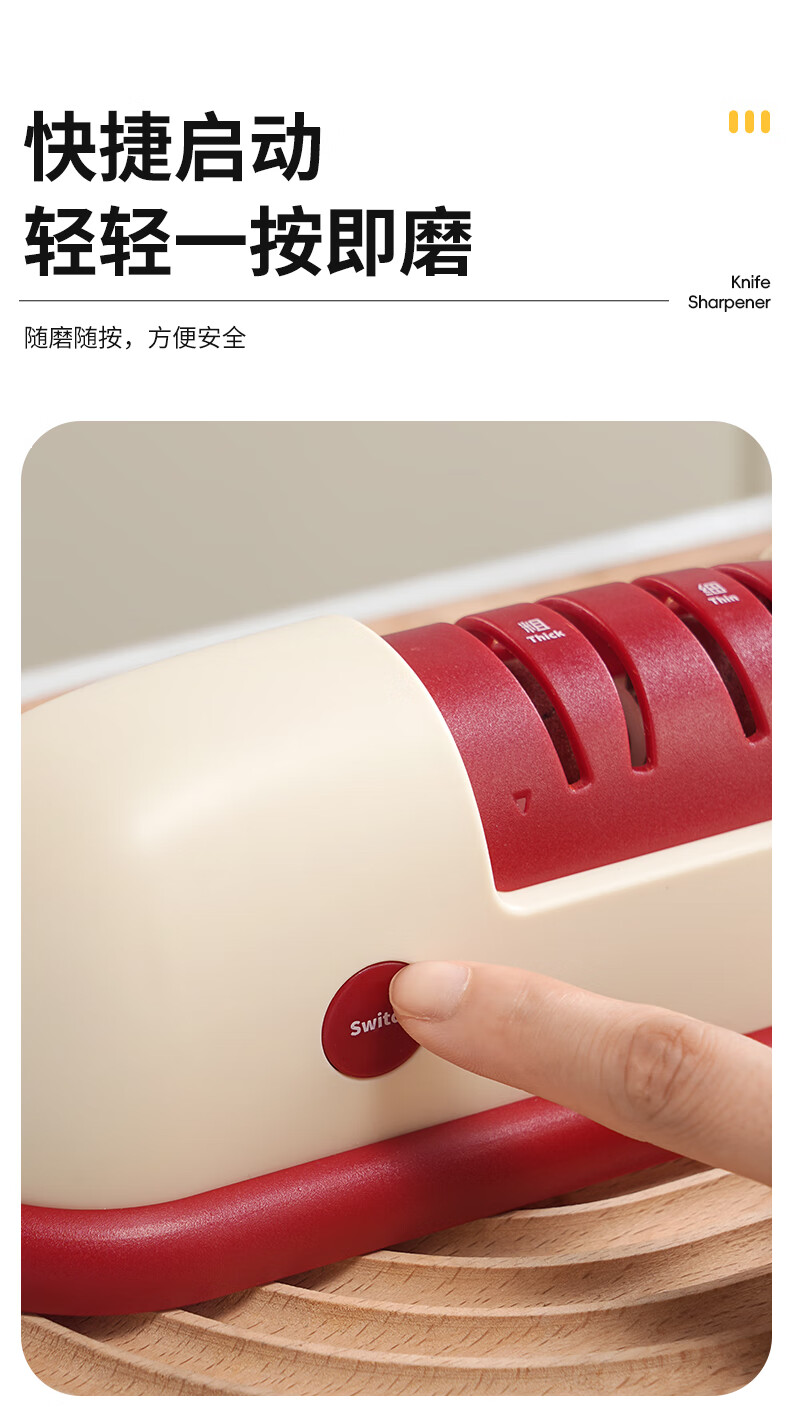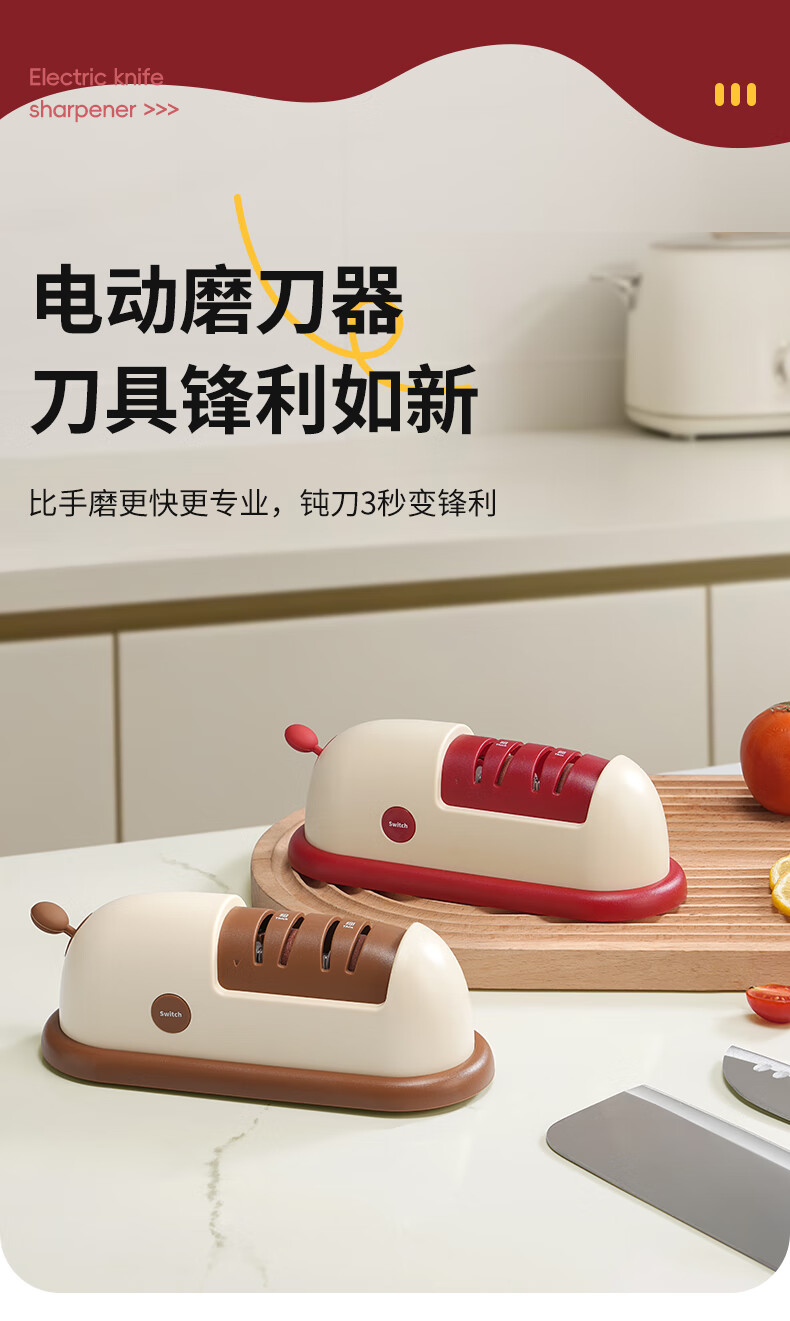 Baijie Electric Knife Sharpener Artifact Household Fully Automatic Vegetable Scissors Sharpening Special Machine Kitchen Multifunctional Grinding Wheel Sharpener Cherry Red - Cordless Electric Knife Sharpener 3 Seconds Speed Sharpening丨C Port Charging