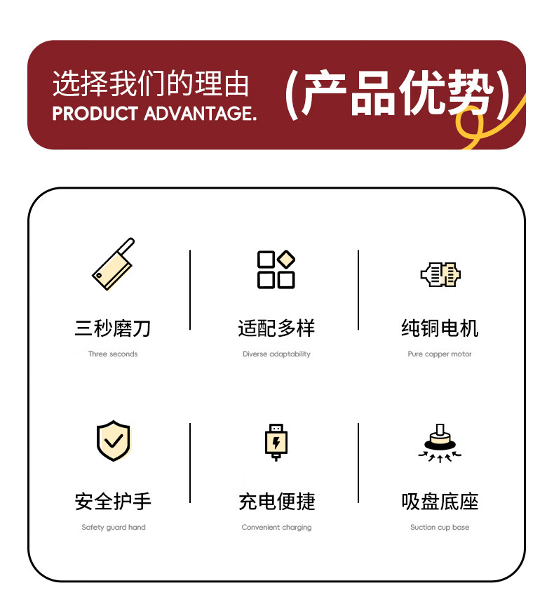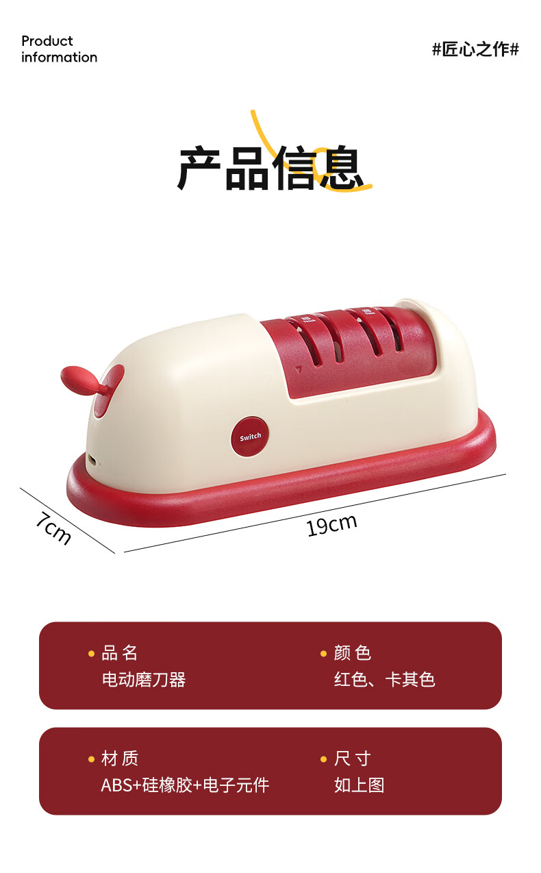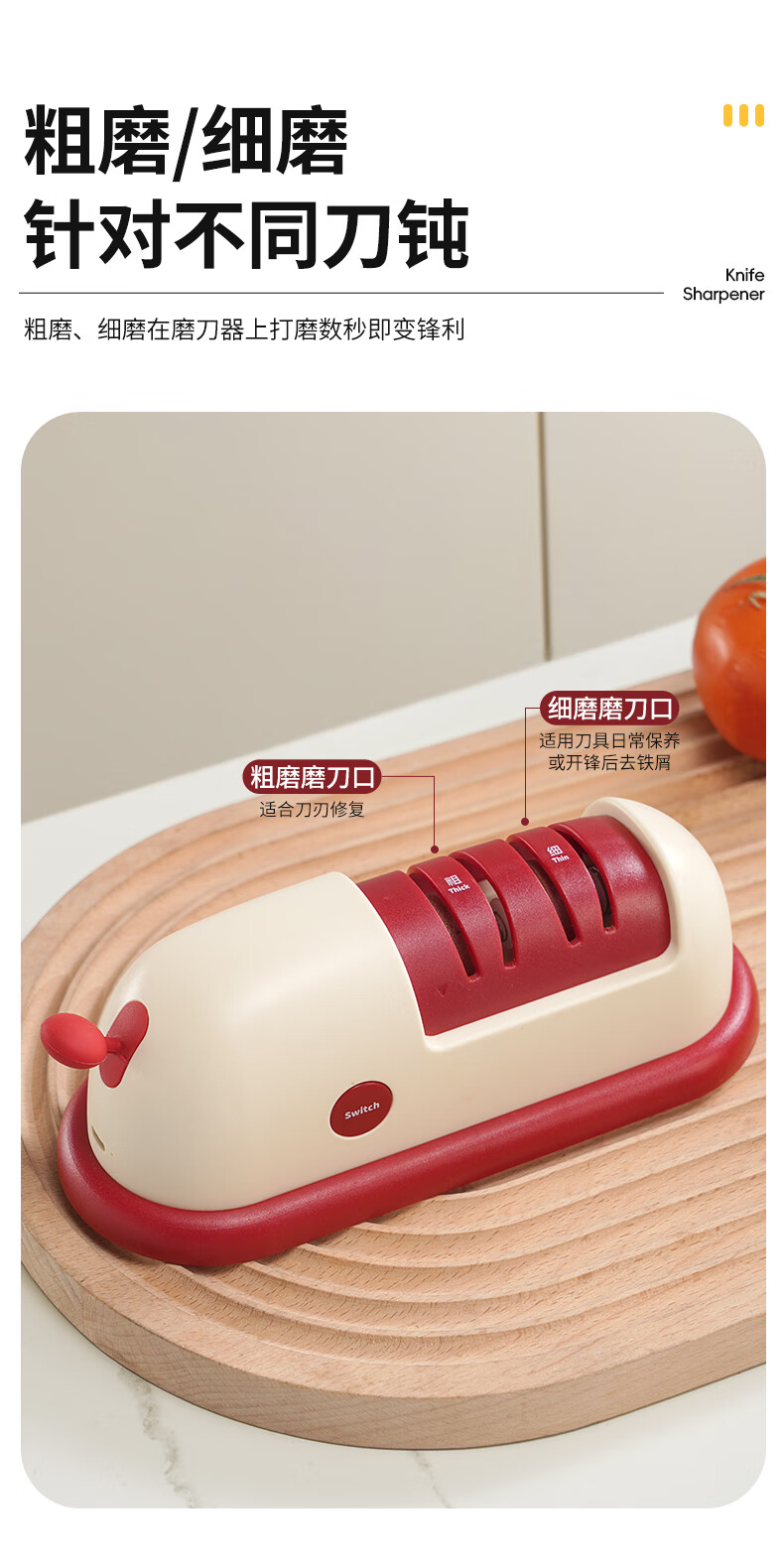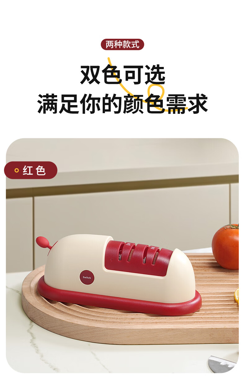 Baijie Electric Knife Sharpener Artifact Household Fully Automatic Vegetable Scissors Sharpening Special Machine Kitchen Multifunctional Grinding Wheel Sharpener Cherry Red - Cordless Electric Knife Sharpener 3 Seconds Speed Sharpening丨C Port Charging