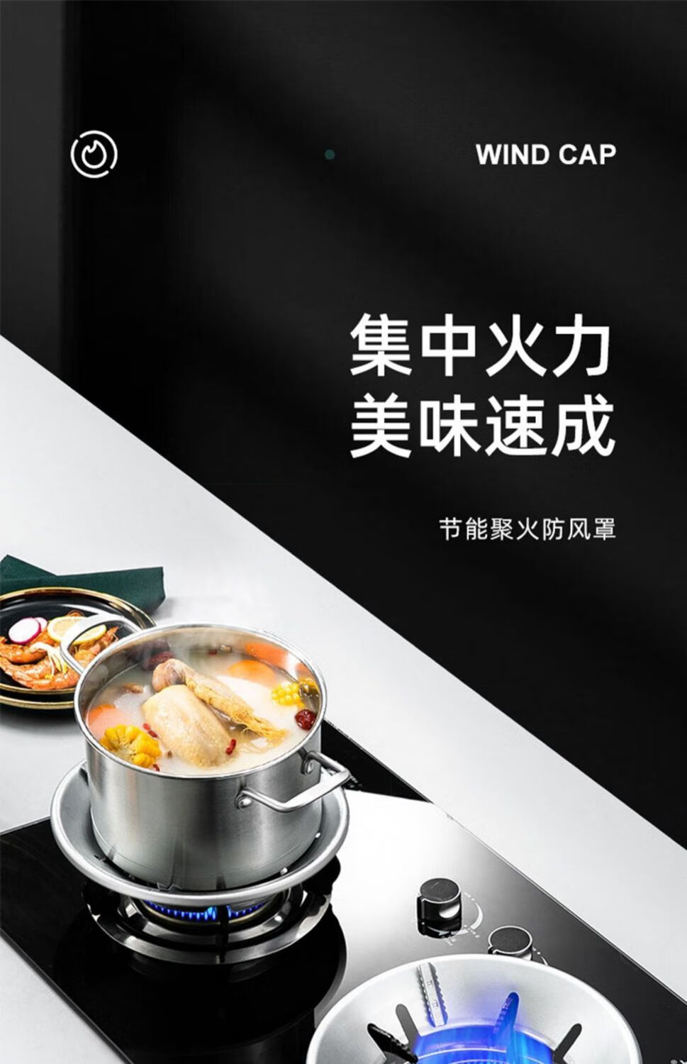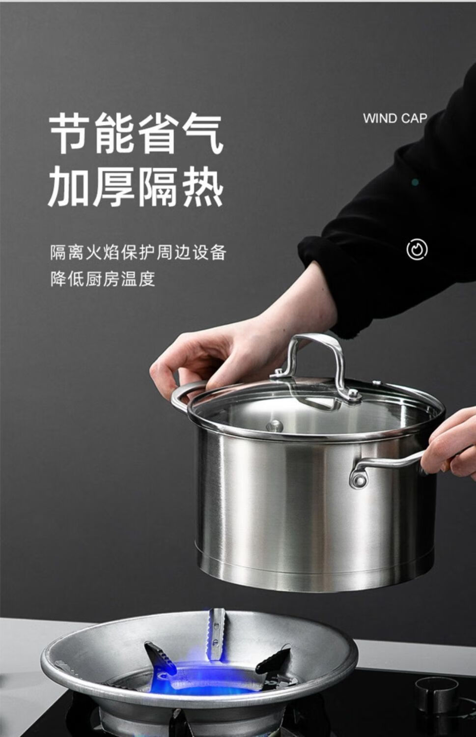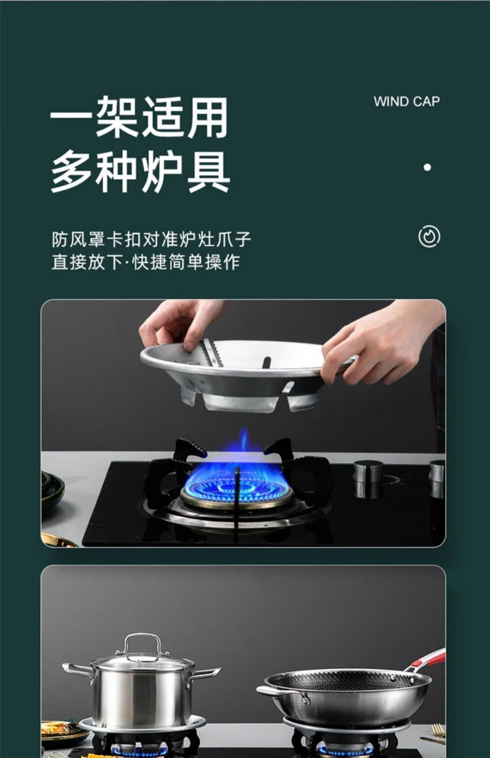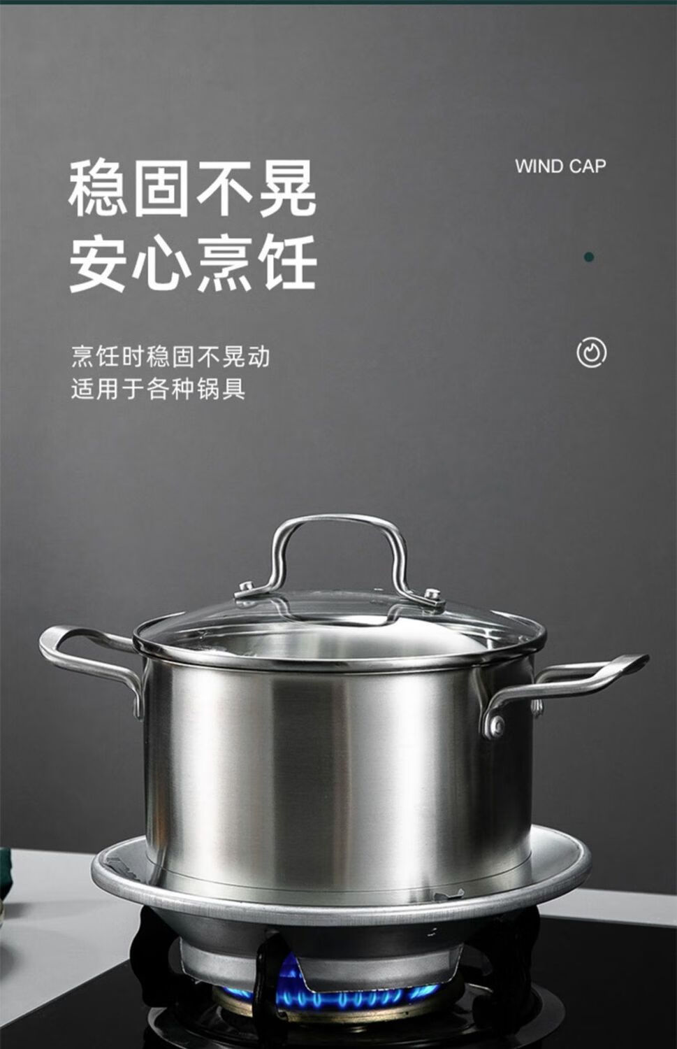 Fat Donglai's same style gas stove windproof cover, fire-concentrating, energy-saving gas stove, wind-proof anti-slip bracket, gas stove top, wind-proof, fire-concentrating, giant non-slip, thickened silver, 1 pack