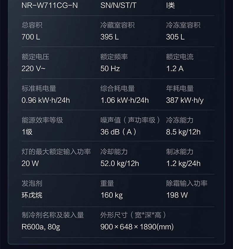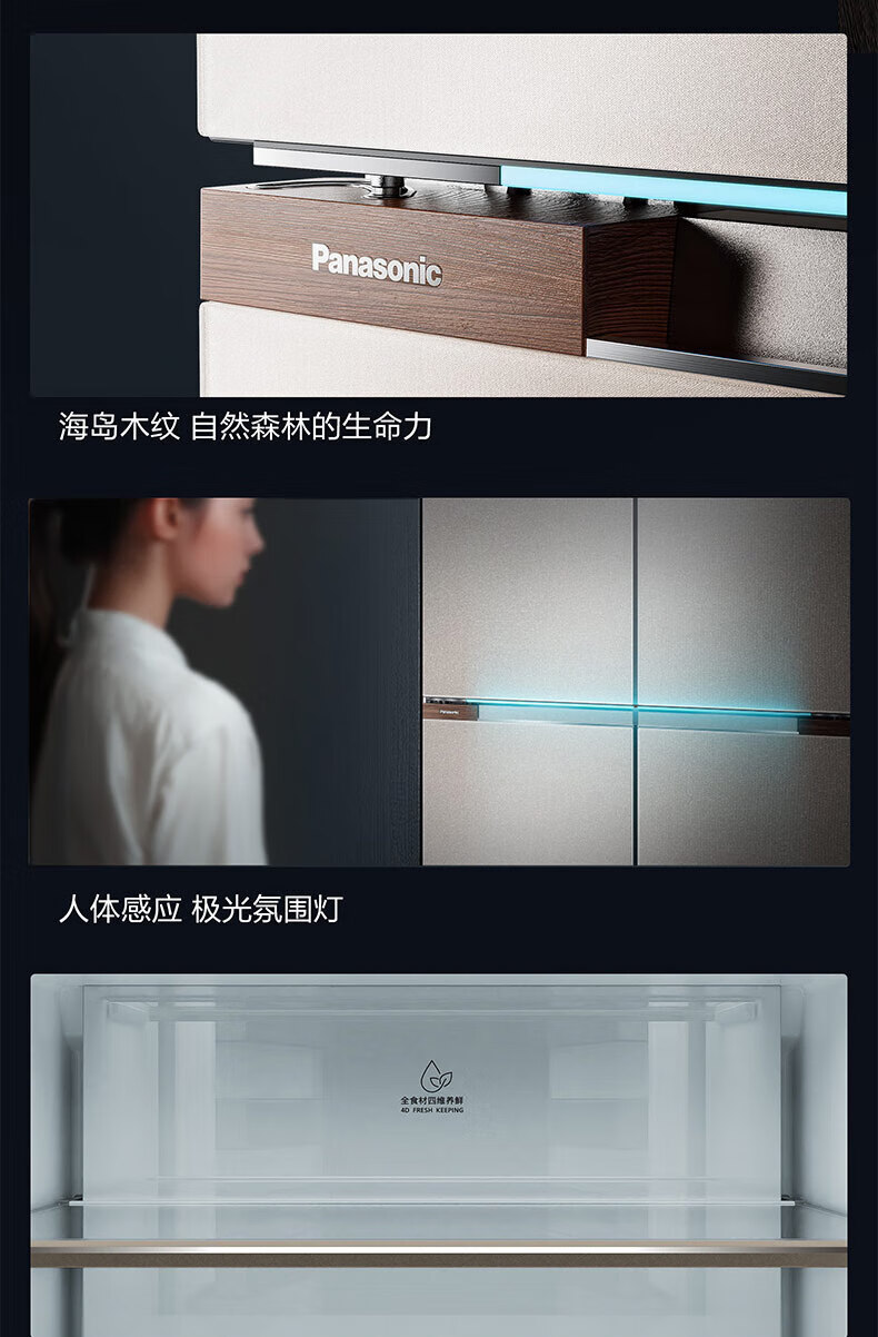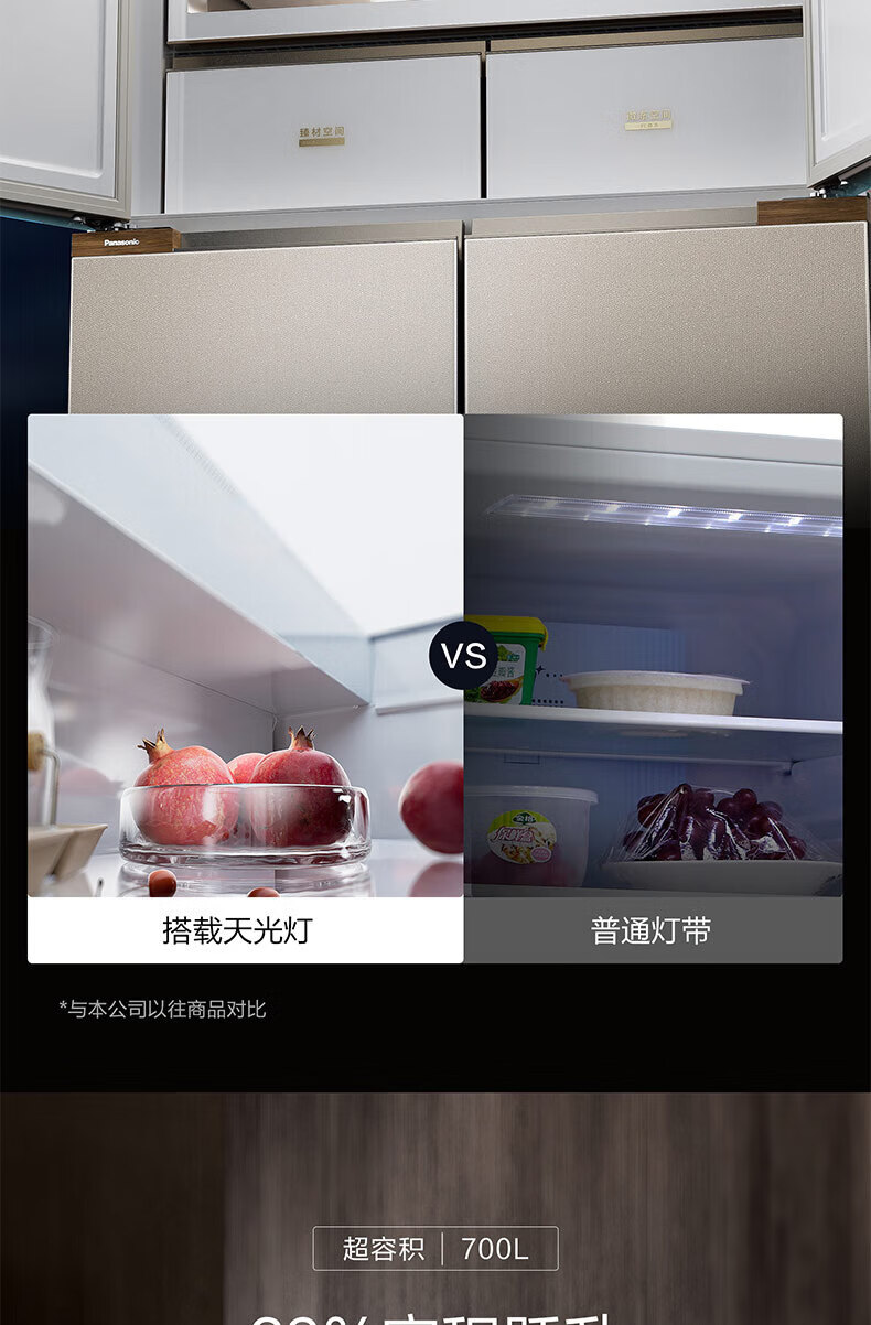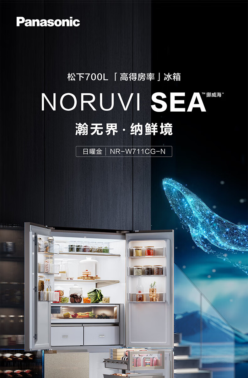 Panasonic 700-liter zero-embedded refrigerator Norwegian Sea, odor-free and sterilized automatic ice making NR-W711CG-W/NR-EW70CGA-W tempered glass panel, special price with slight defects W711CG 700L Golden Norwegian Sea, special price with defects