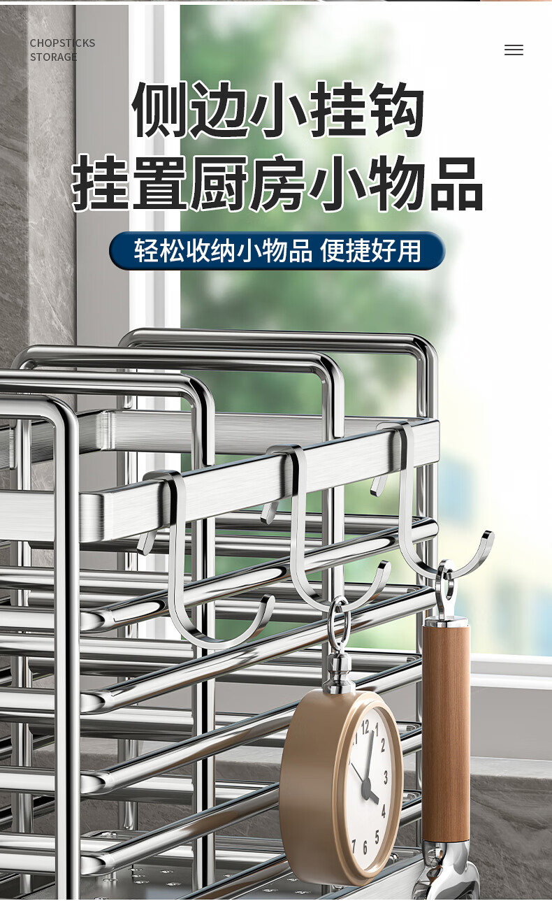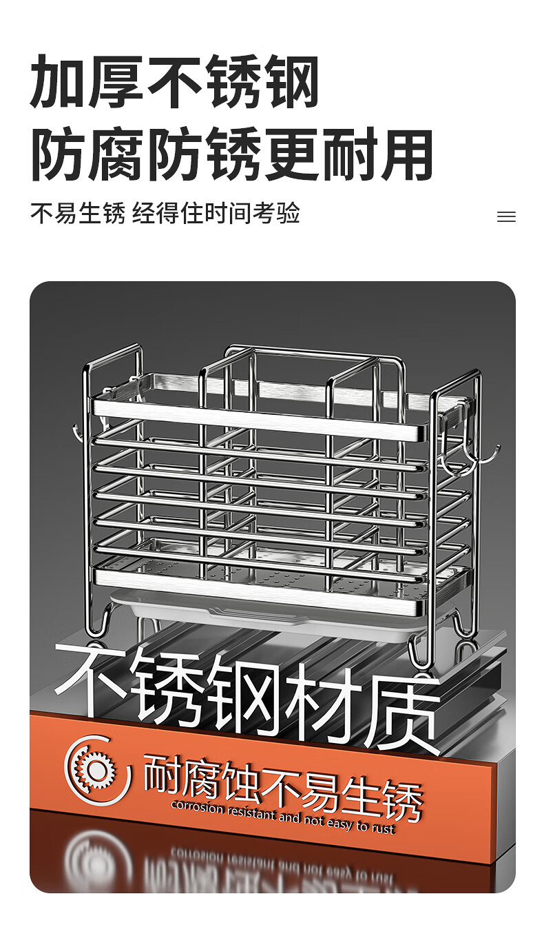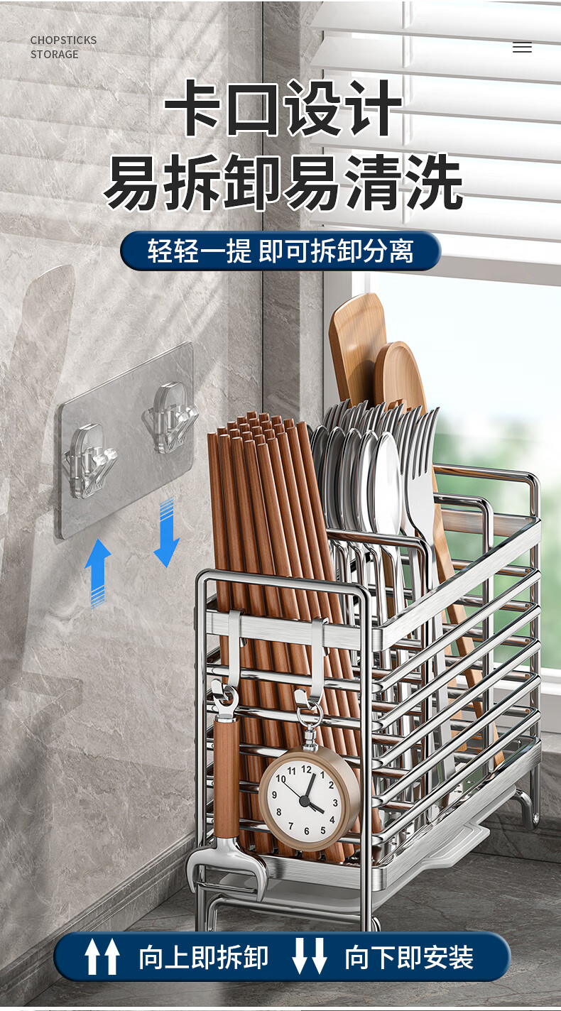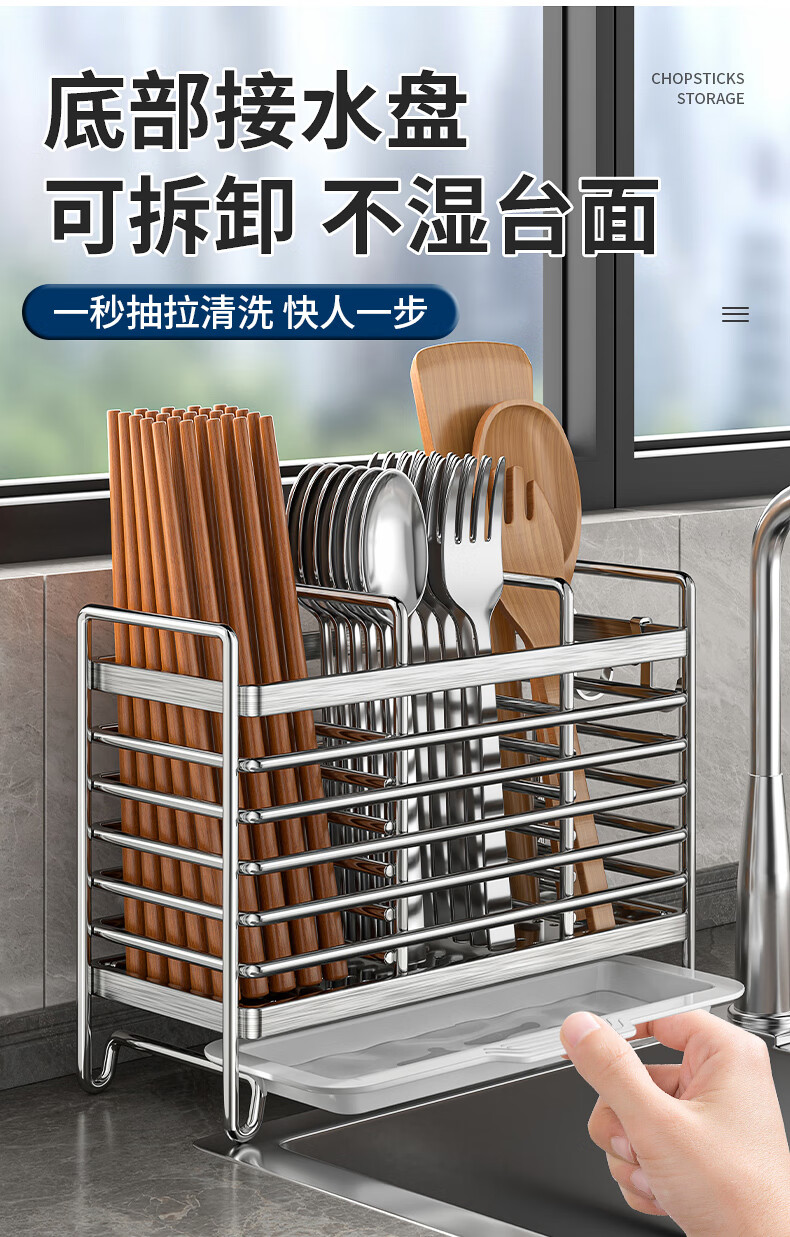 Kitchen rack stainless steel chopstick holder countertop wall hanging with drain tray stainless steel chopstick holder three compartments