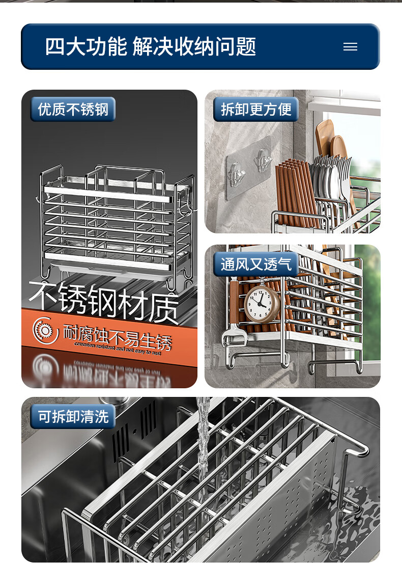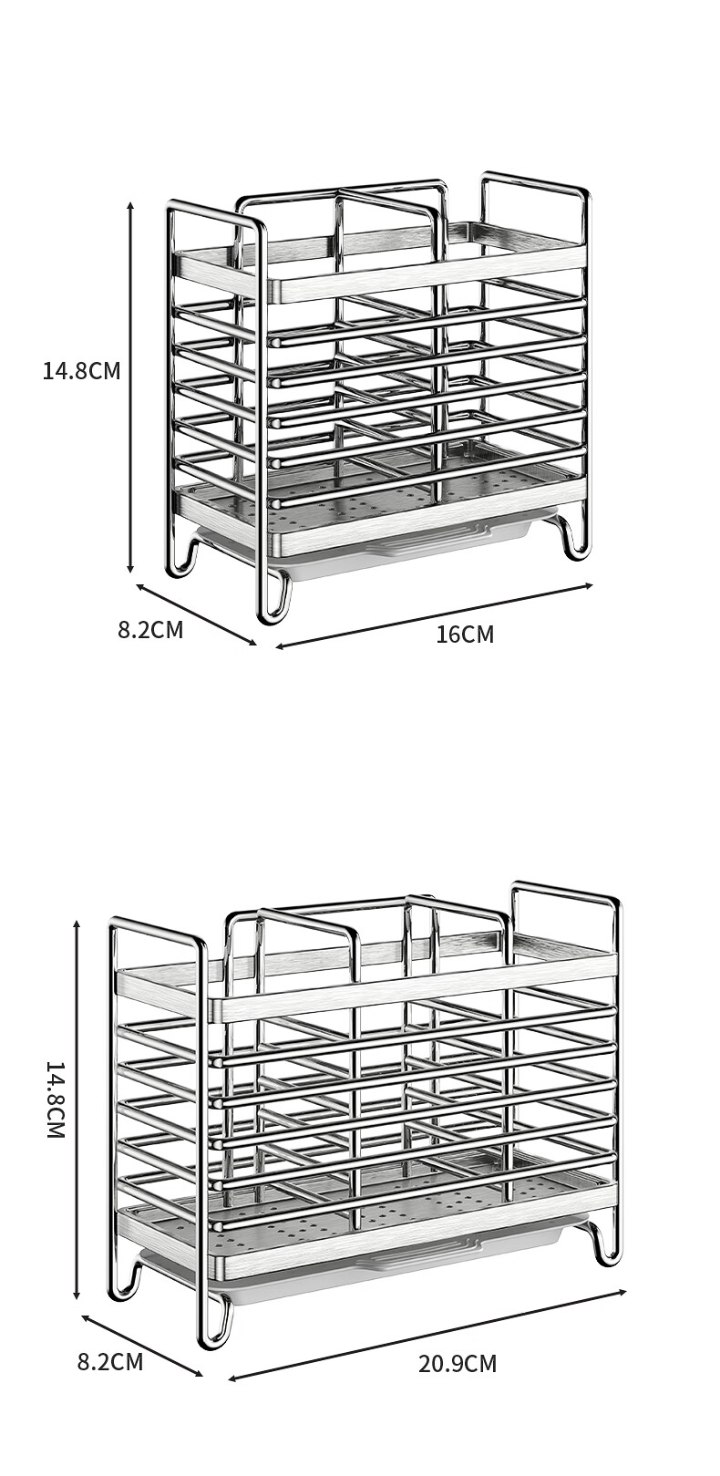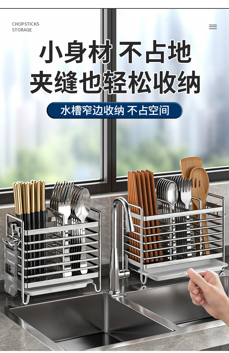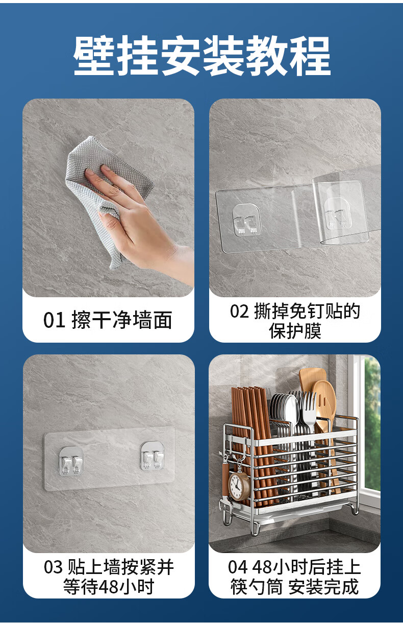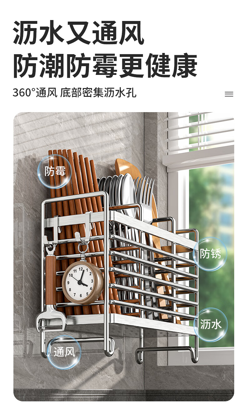Kitchen rack stainless steel chopstick holder countertop wall hanging with drain tray stainless steel chopstick holder three compartments