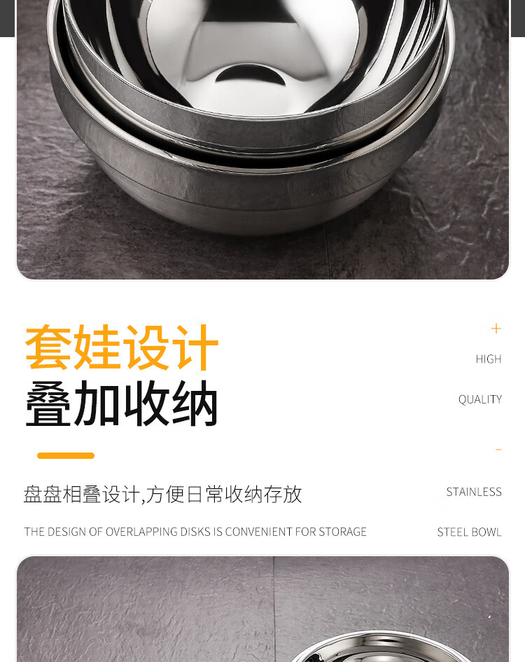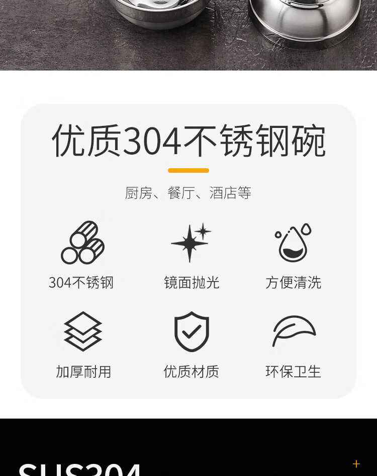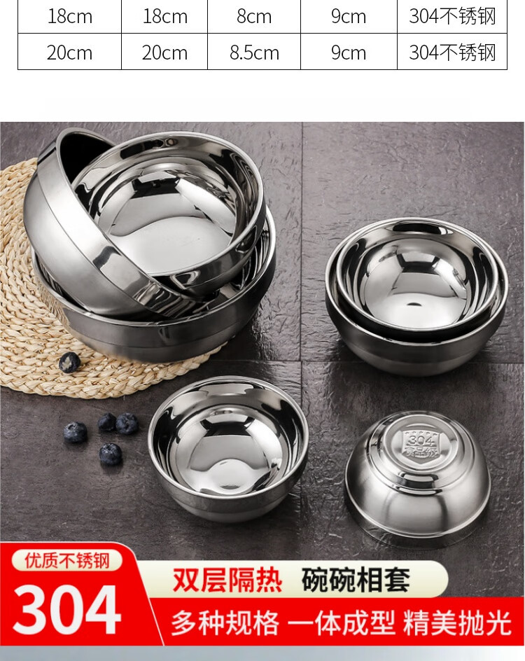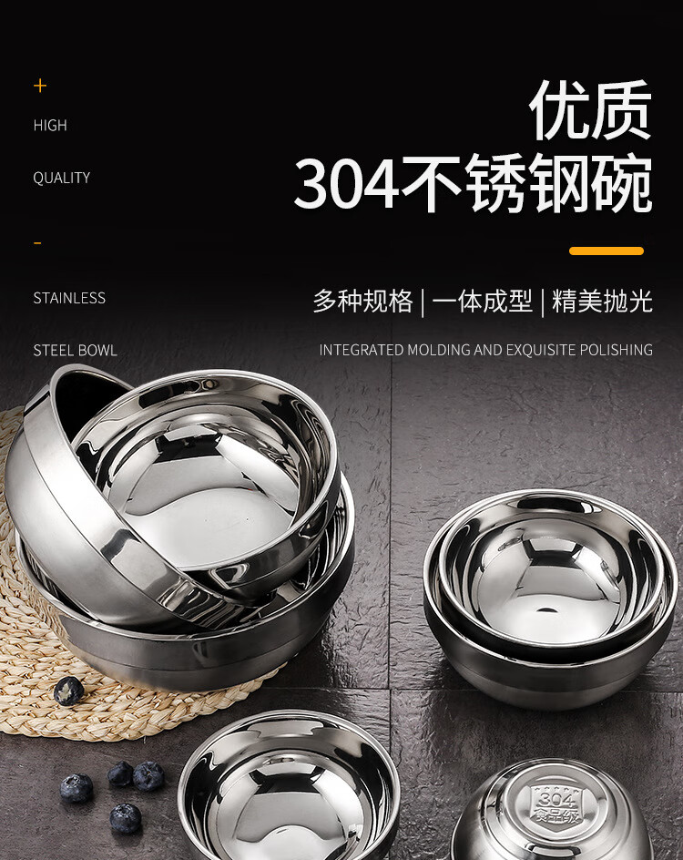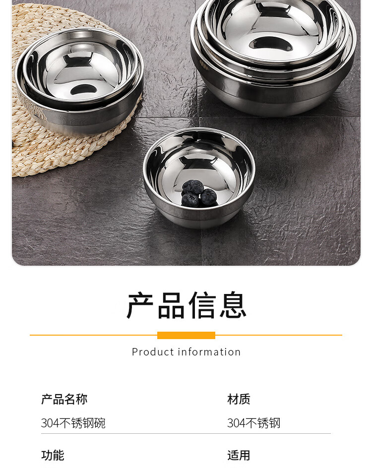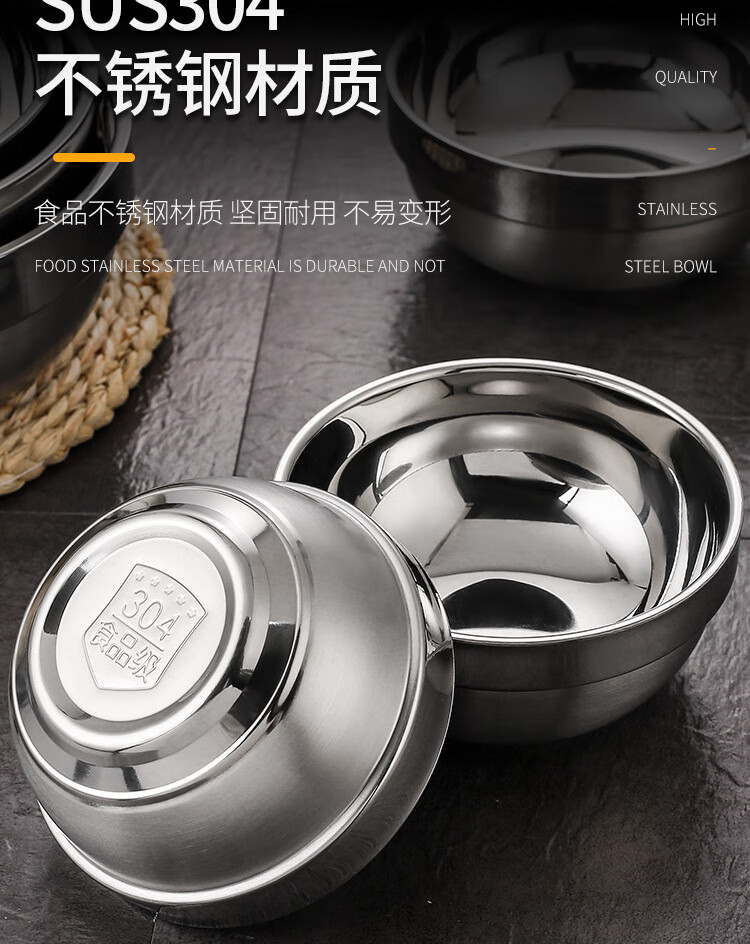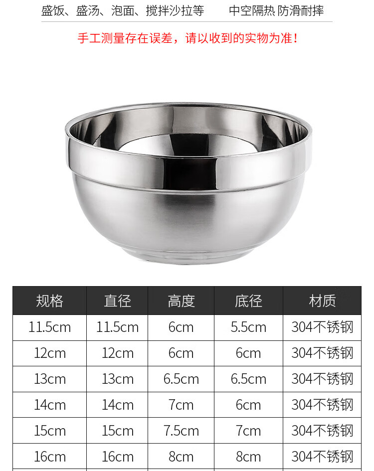 Real 304 thickened stainless steel platinum bowl double-layer insulated rice bowl 304 platinum bowl 14cm ten value packs