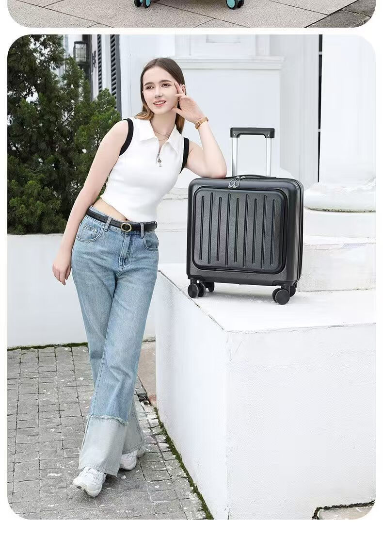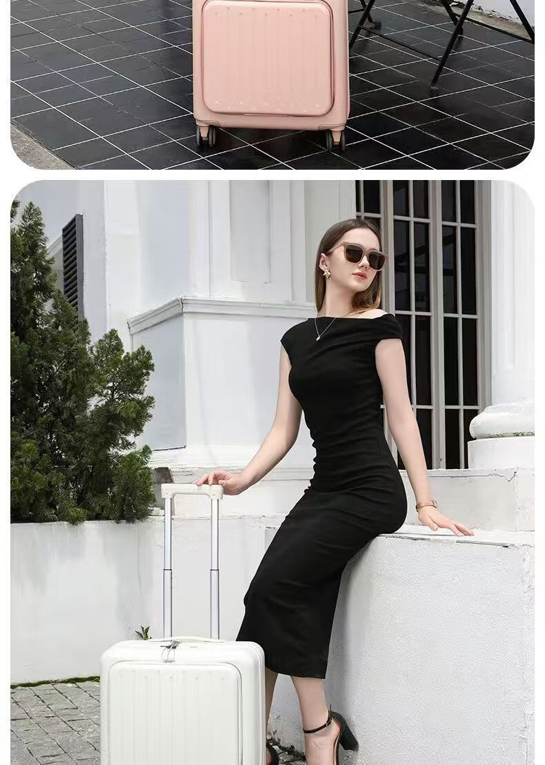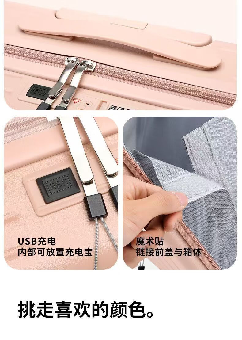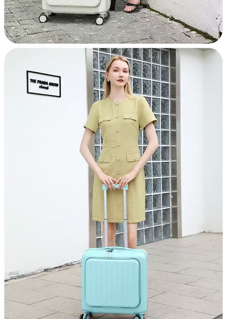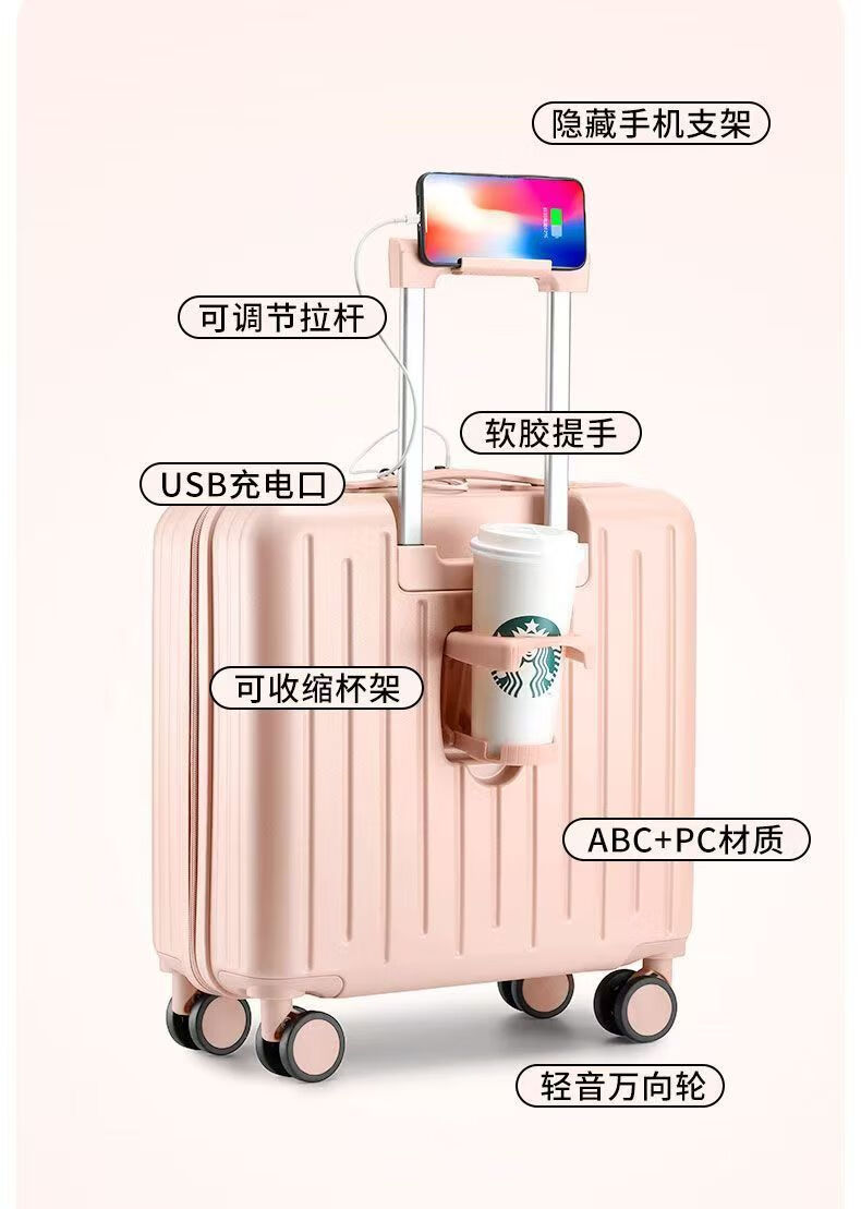 Front-opening suitcase, women's multifunctional boarding case, can be boarded on the plane, trolley travel code box, grain white, front opening + USB + cup holder + bracket, 18 inches, front-opening can be boarded on the plane