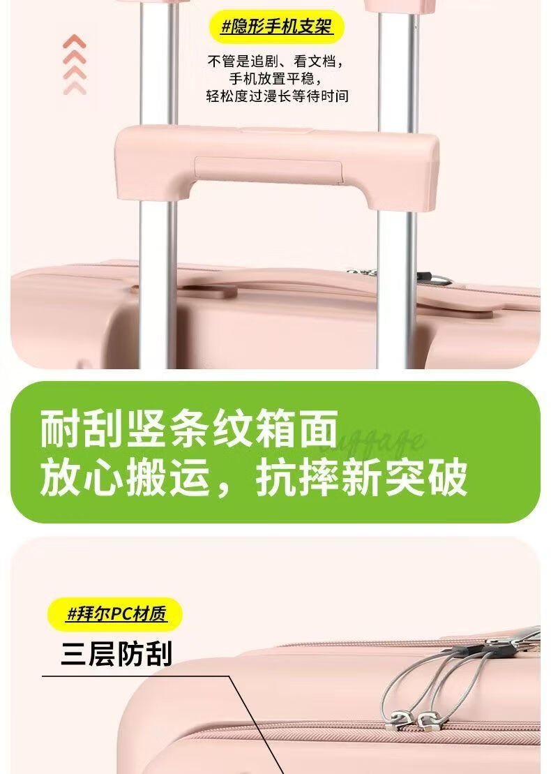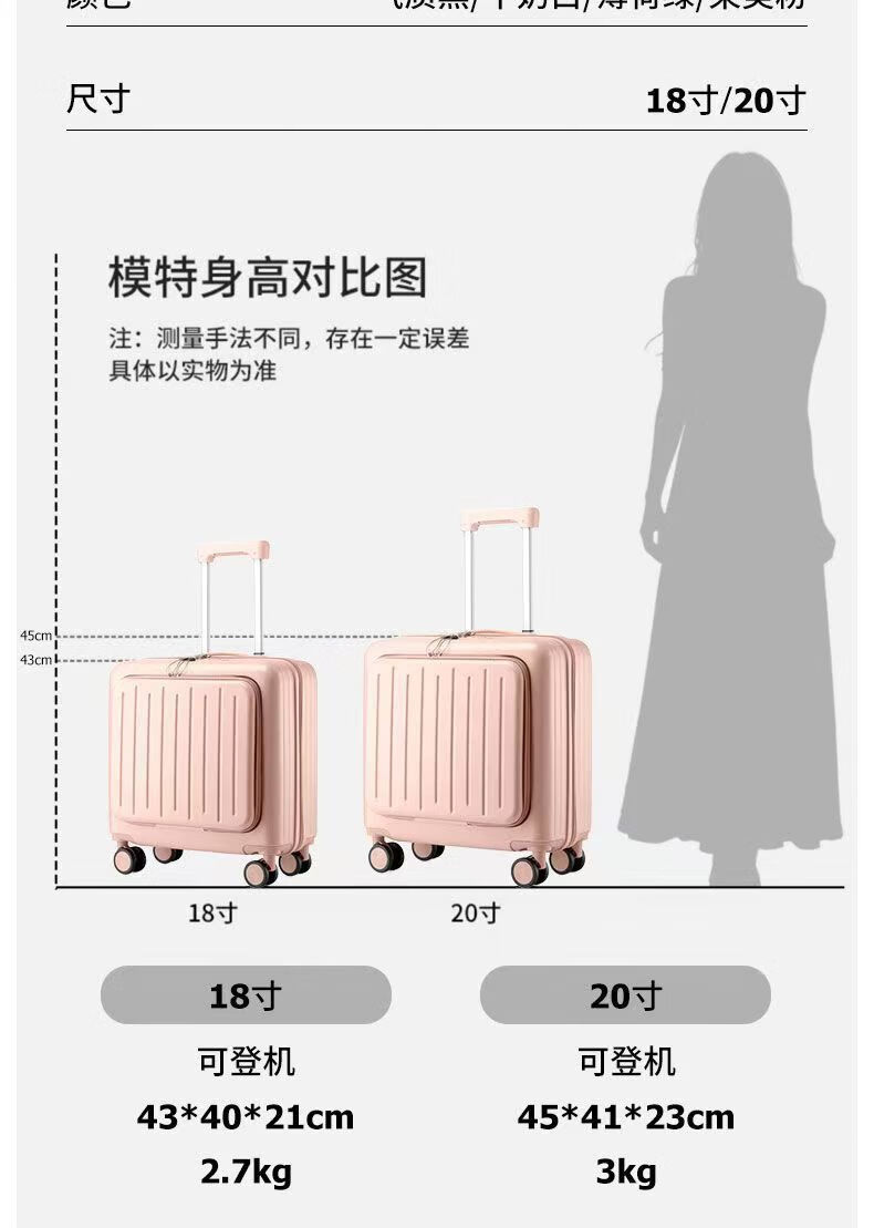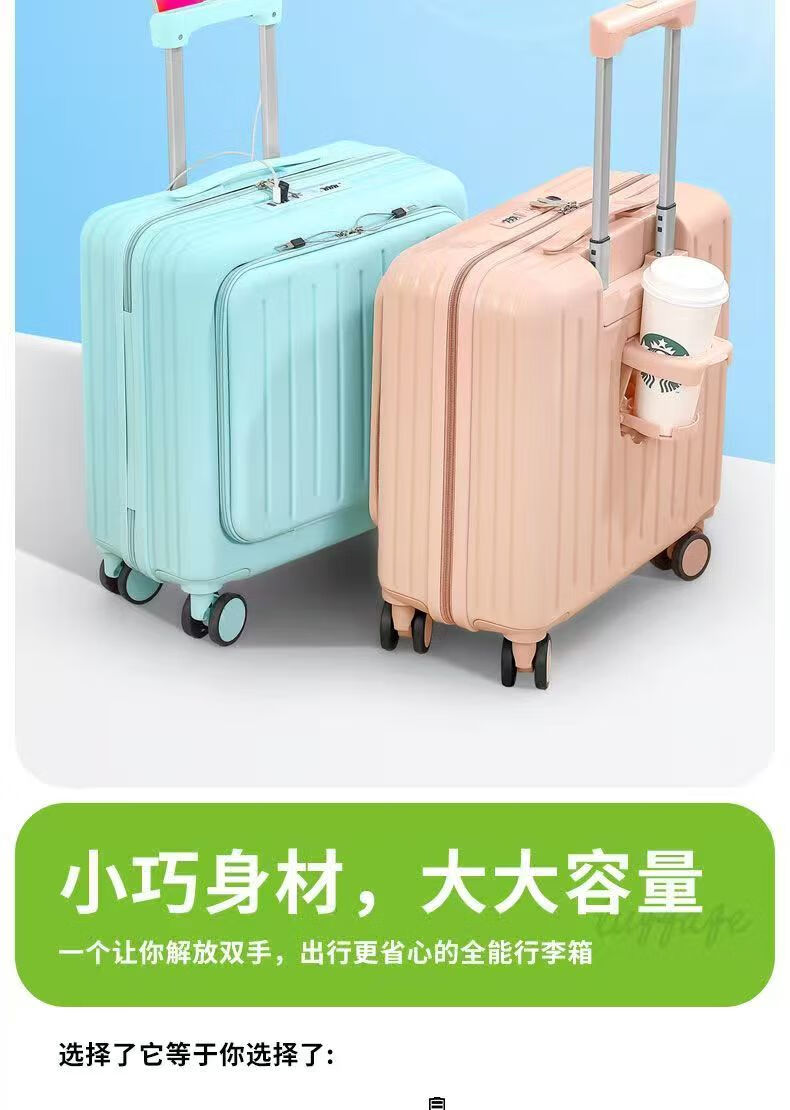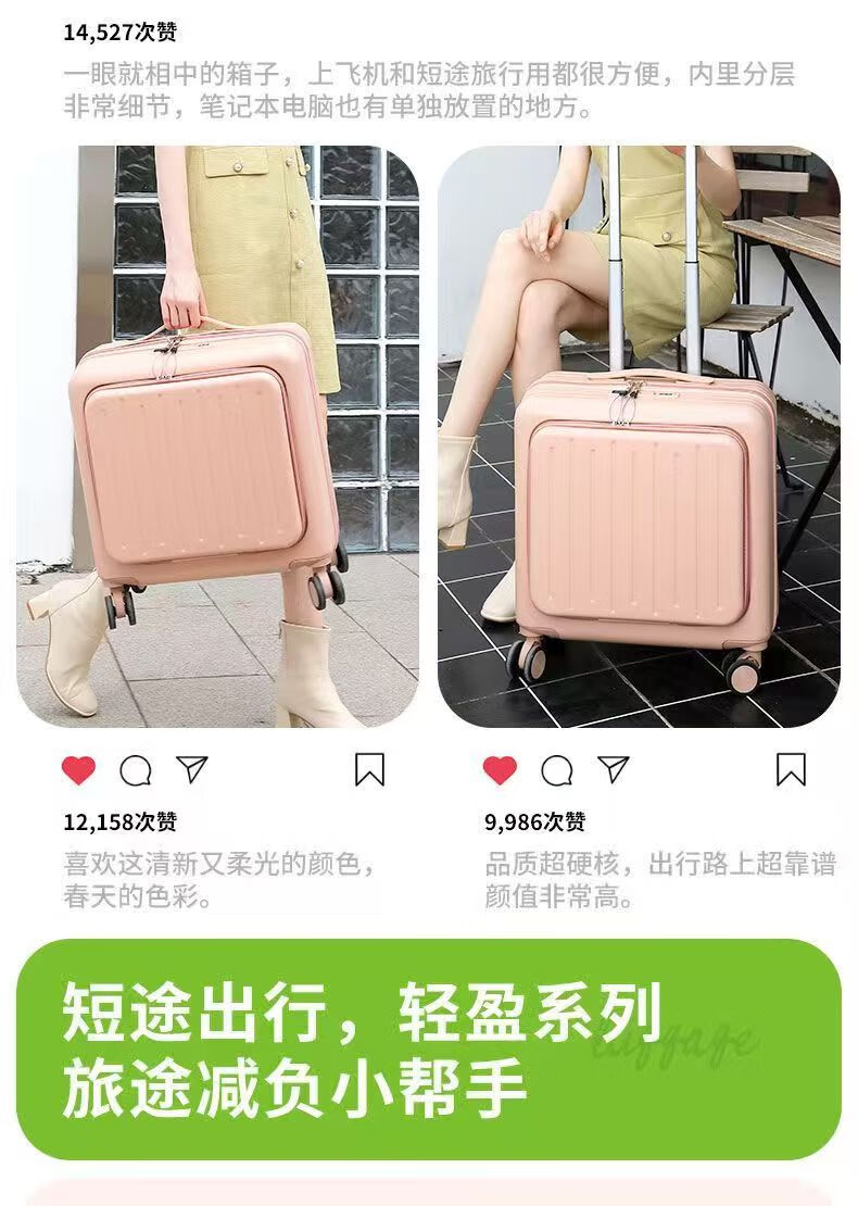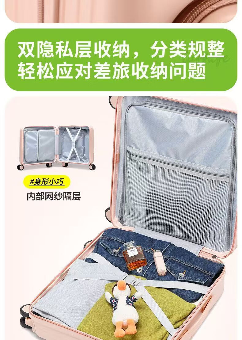 Front-opening suitcase, women's multifunctional boarding case, can be boarded on the plane, trolley travel code box, grain white, front opening + USB + cup holder + bracket, 18 inches, front-opening can be boarded on the plane