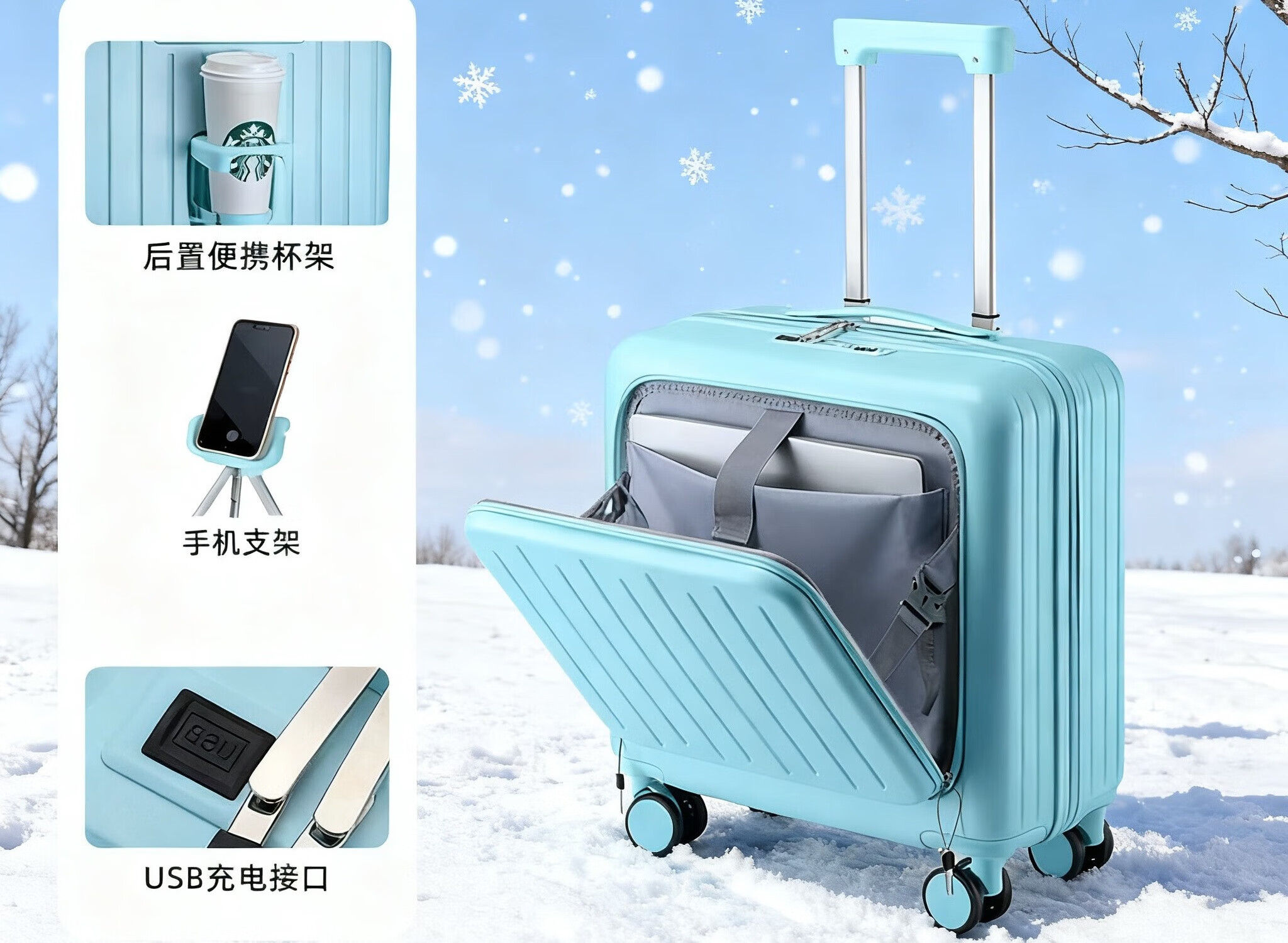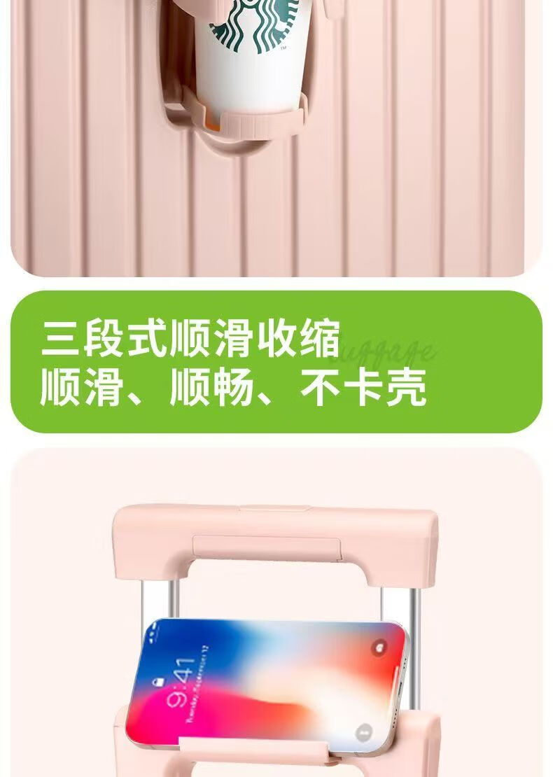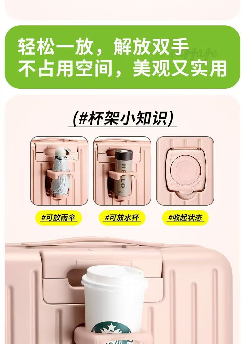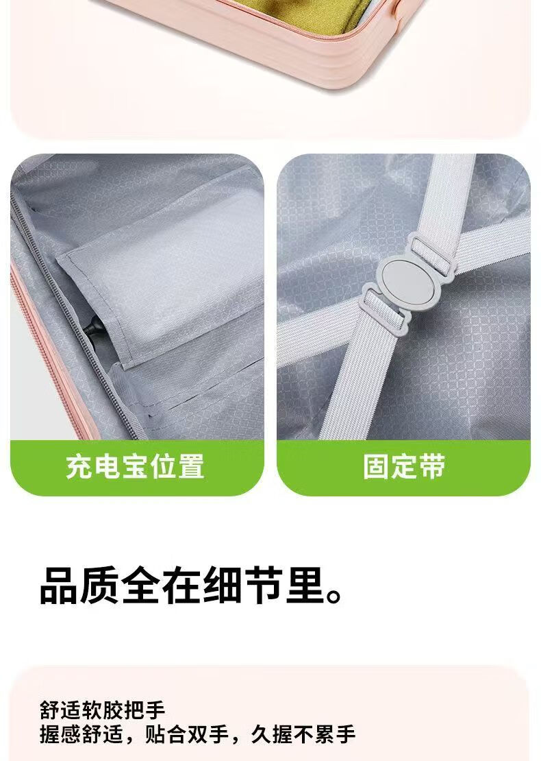 Front-opening suitcase, women's multifunctional boarding case, can be boarded on the plane, trolley travel code box, grain white, front opening + USB + cup holder + bracket, 18 inches, front-opening can be boarded on the plane