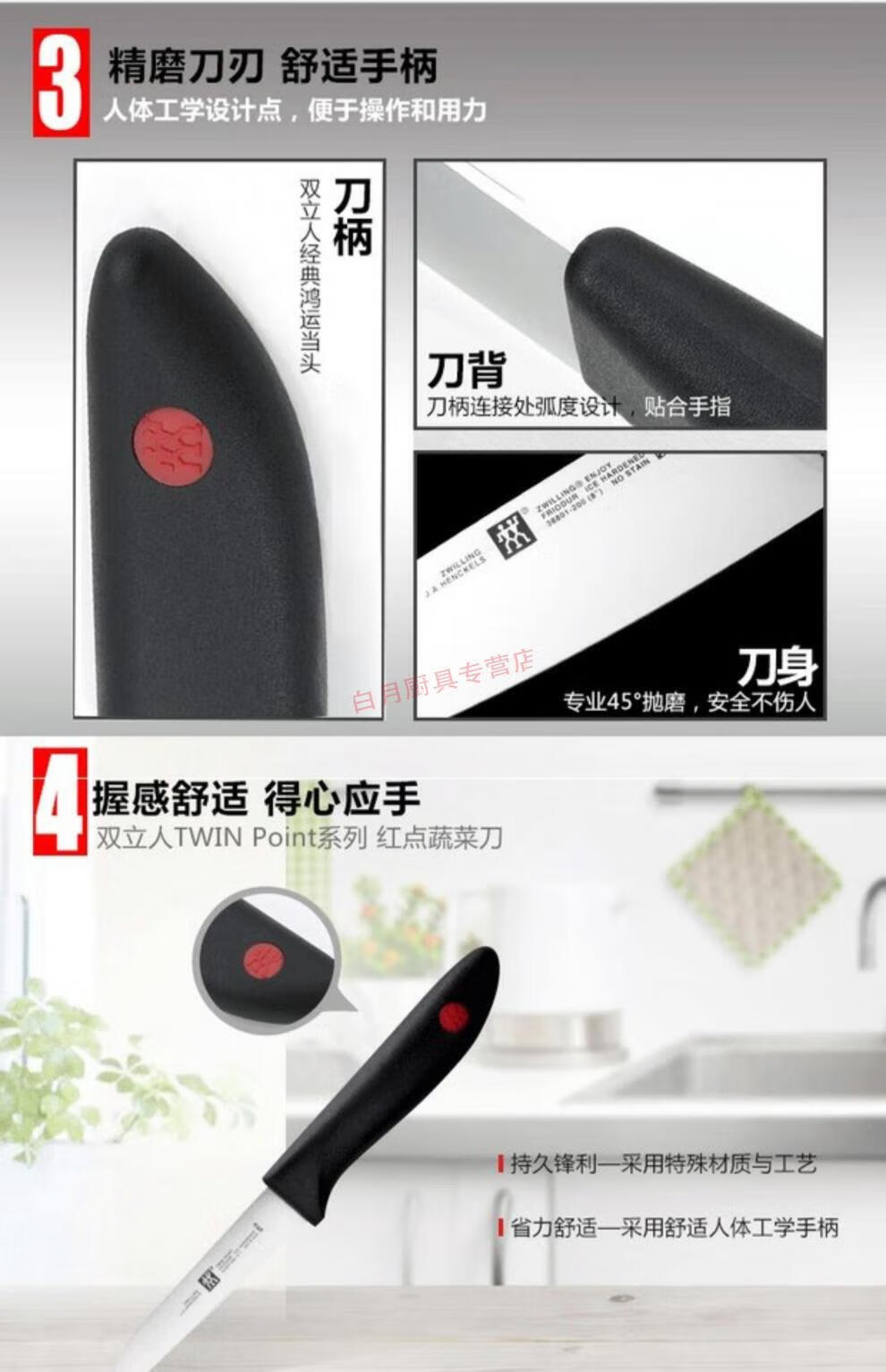 Zwilling (ZWILLING) German Point red dot series tomato knife, juicy fruit knife, vegetable and fruit knife, compact, portable knife that can be used for picnics, red dot vegetable and fruit knife with simple packaging