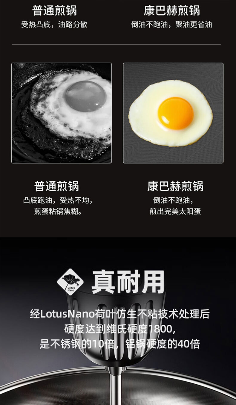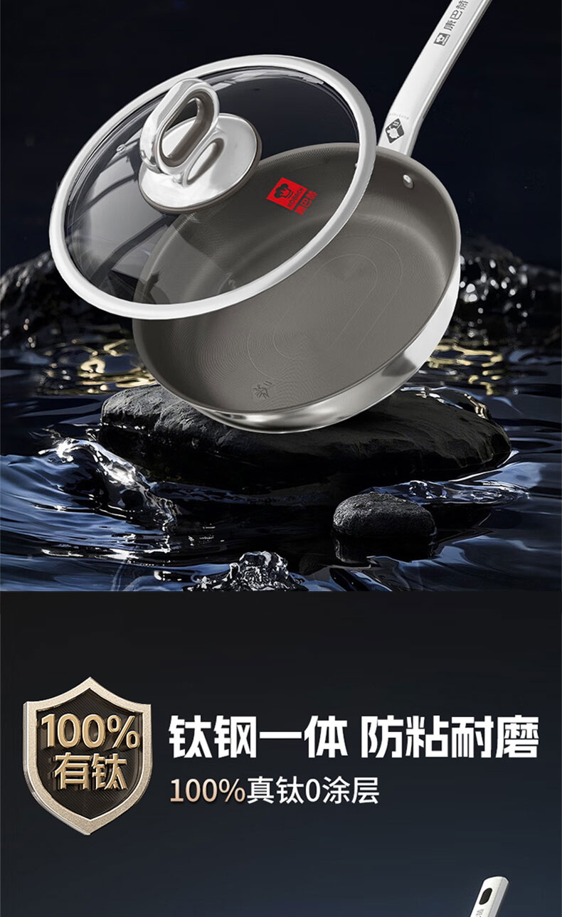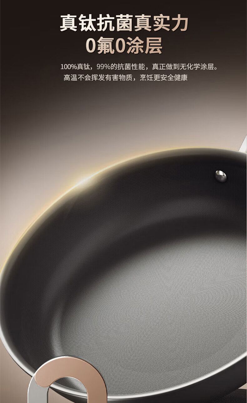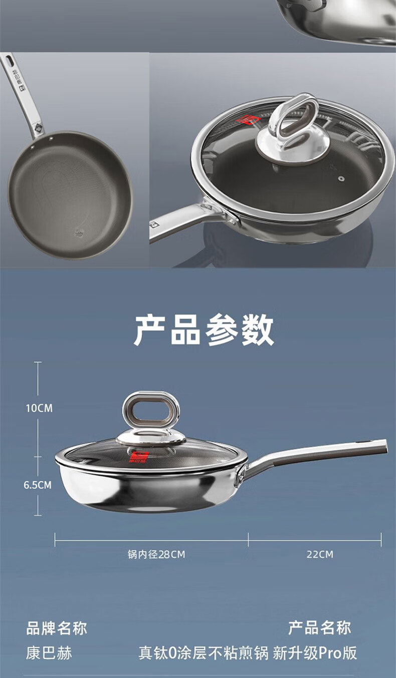 Konbach flat bottom non-stick pan real titanium uncoated wok steak frying pan omelette pancake special gas stove induction cooker maternal and child grade 100% real titanium 0 coating 28cm