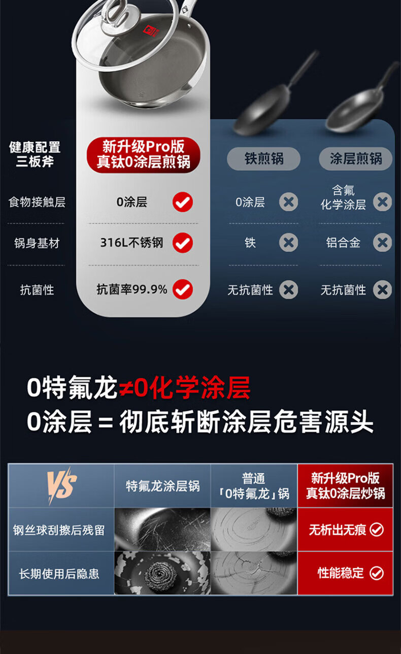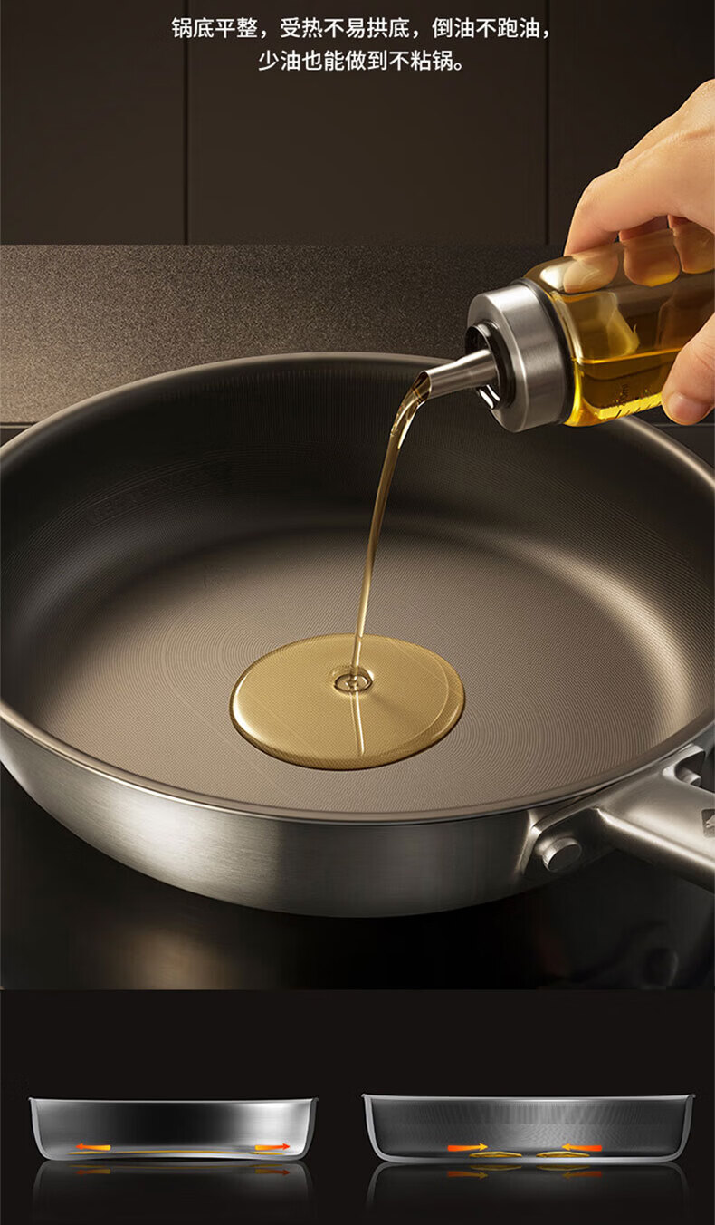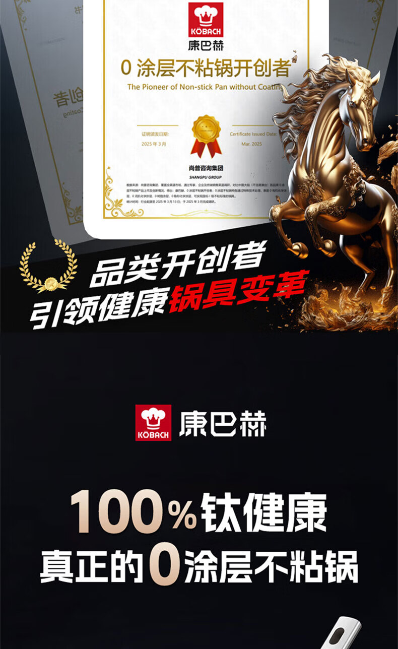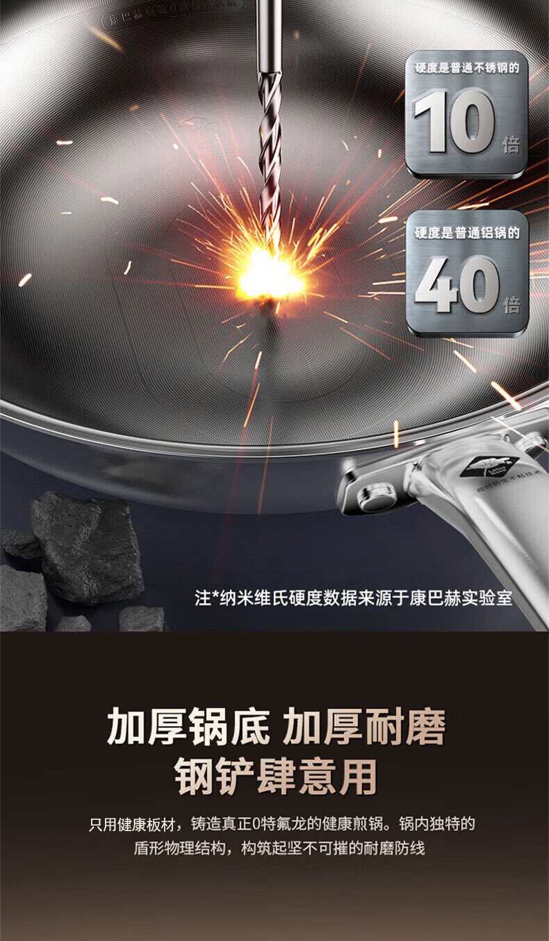 Konbach flat bottom non-stick pan real titanium uncoated wok steak frying pan omelette pancake special gas stove induction cooker maternal and child grade 100% real titanium 0 coating 28cm