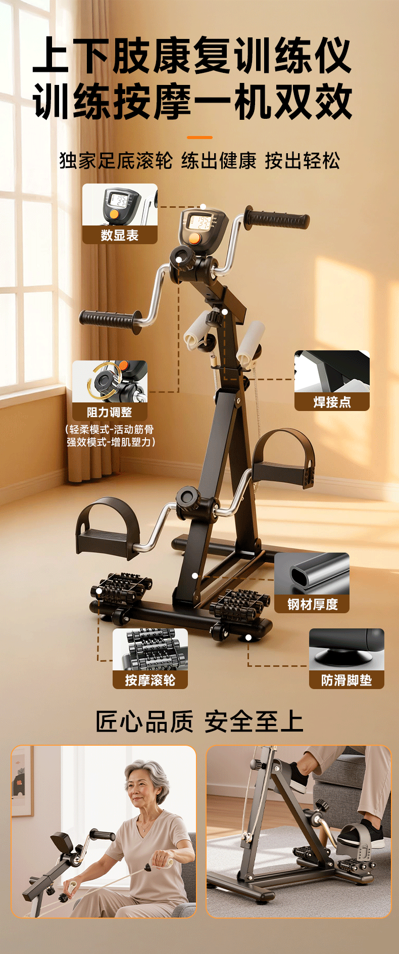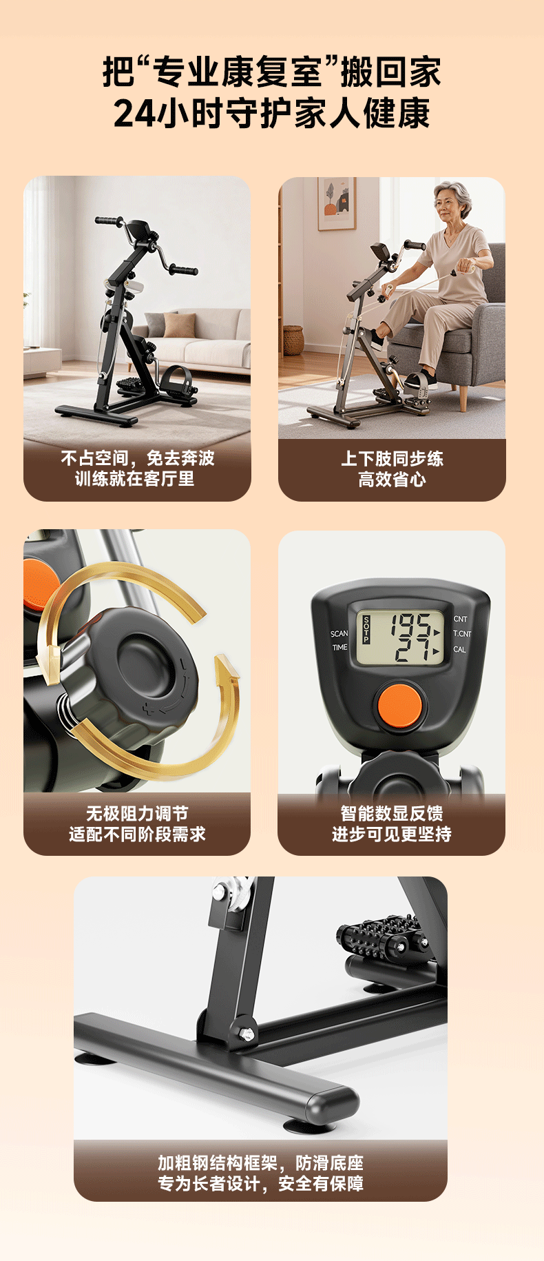 Shikanda stroke hemiplegia rehabilitation training bicycle for the elderly, hand, leg and limb linkage upper and lower limb rehabilitation training equipment, upper and lower limb bicycle, adjustable resistance - countable display