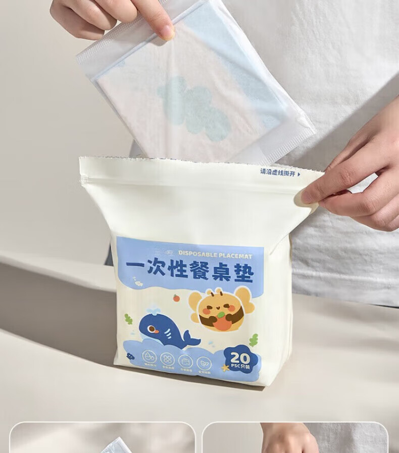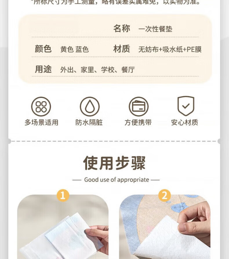 DEATKN German baby disposable placemat baby portable travel anti-fouling kindergarten table mat children's eating tablecloth anti-fouling placemat Lyles Orange 20 pieces + Tim Te Blue 20 pieces