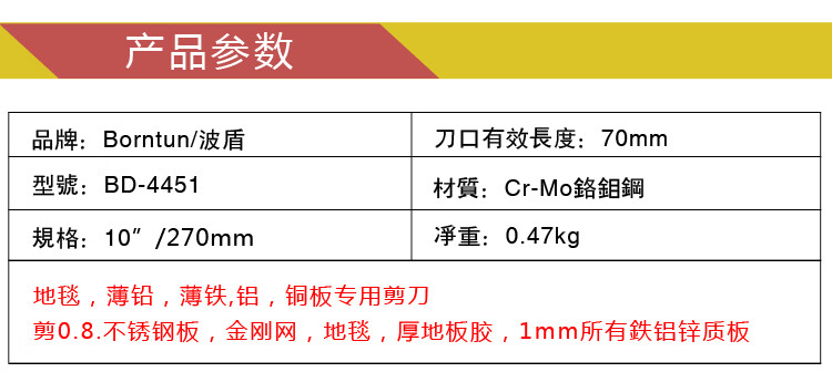 Borntun 10-inch stainless steel scissors industrial-grade iron scissors flat-head aviation scissors diamond mesh scissors B-4451 default