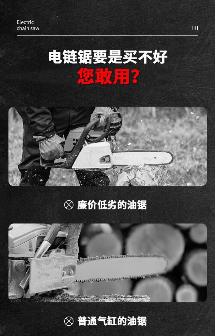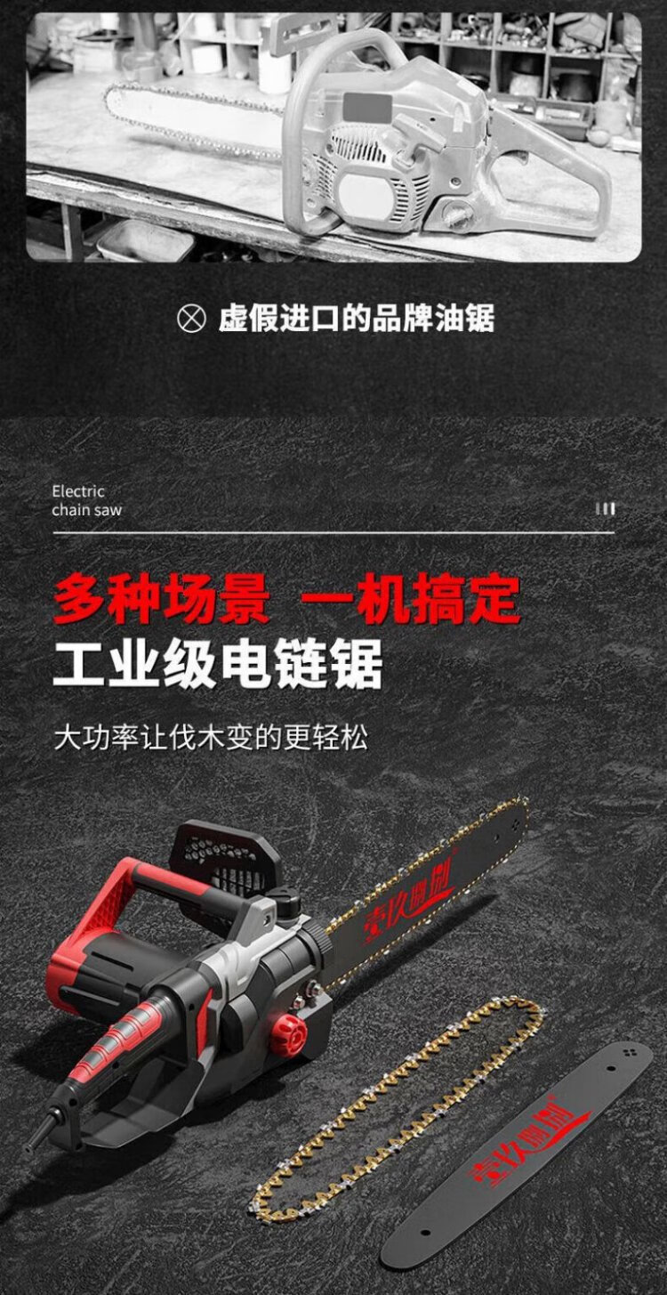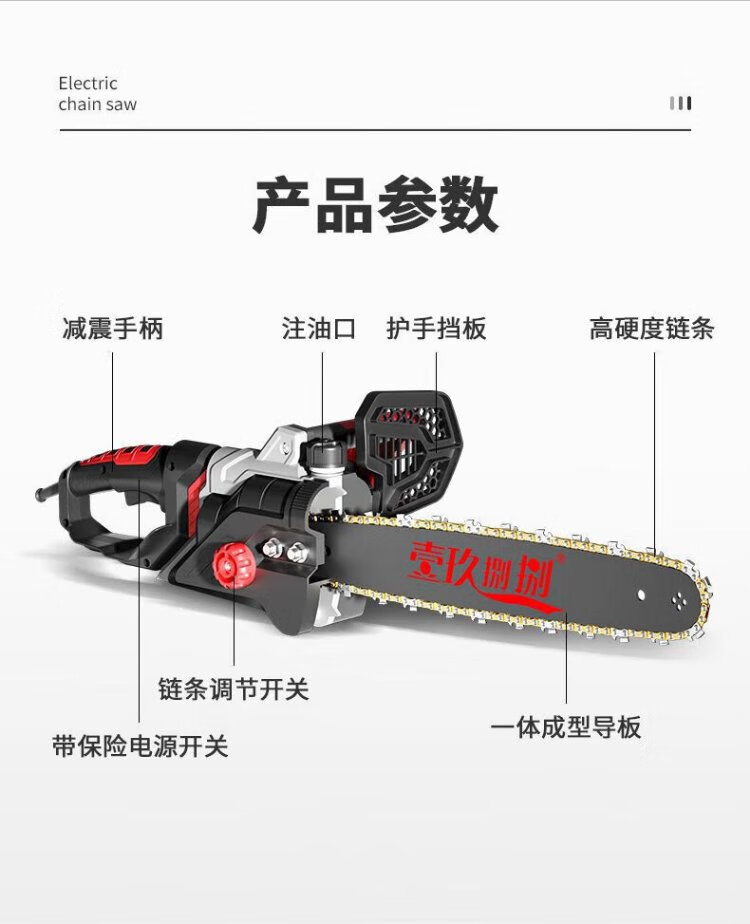 Yijiu88 electric chain saw 16-inch household logging saw woodworking chain saw wood 220V high-power hand-held chainsaw 16-inch luxury model 1 plate 2 chains