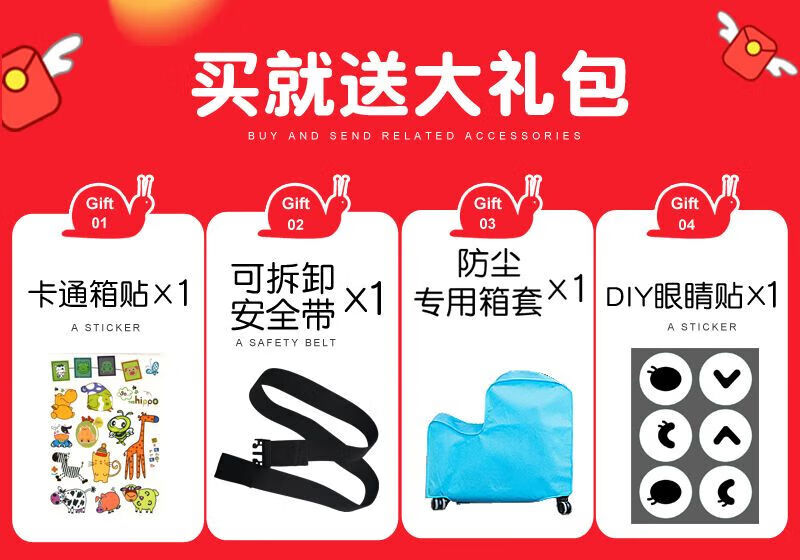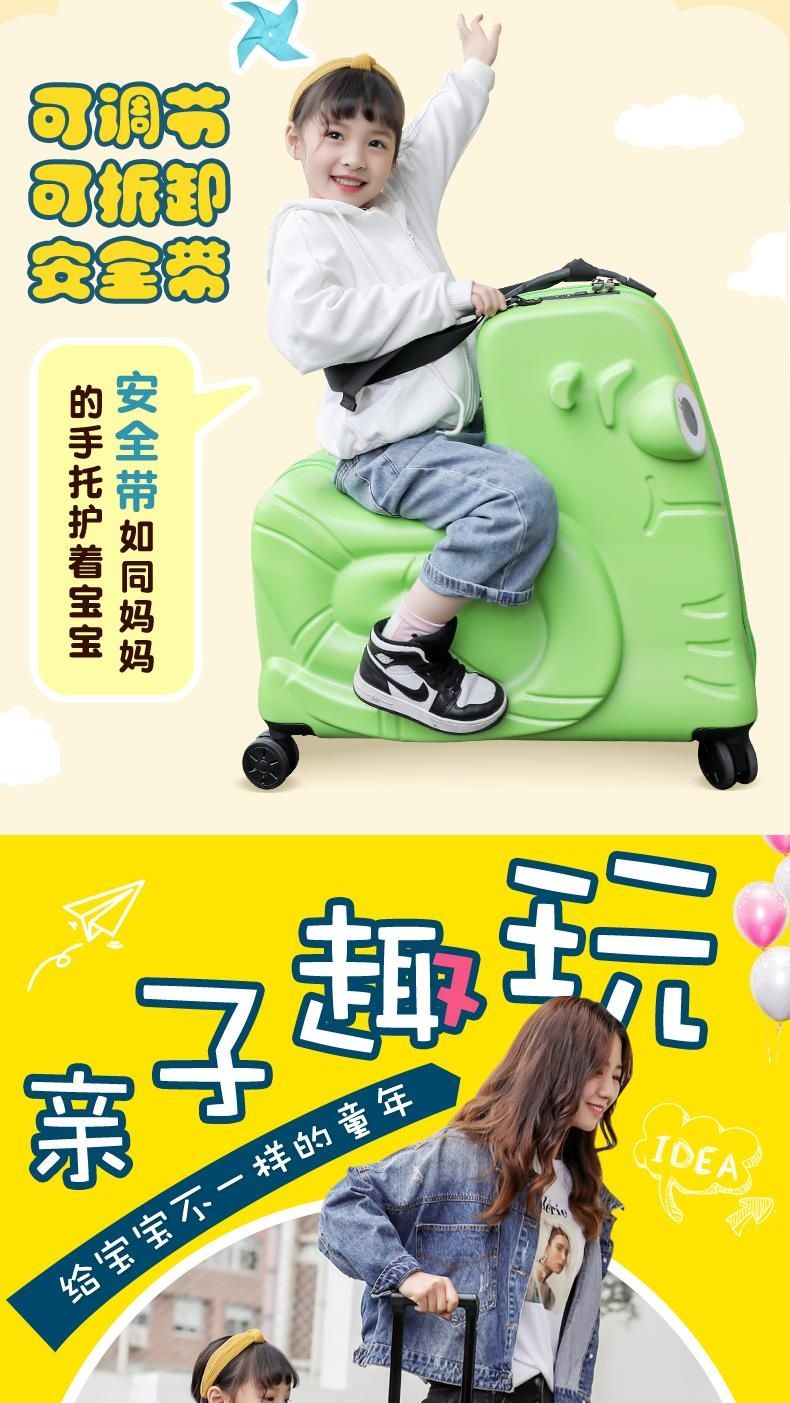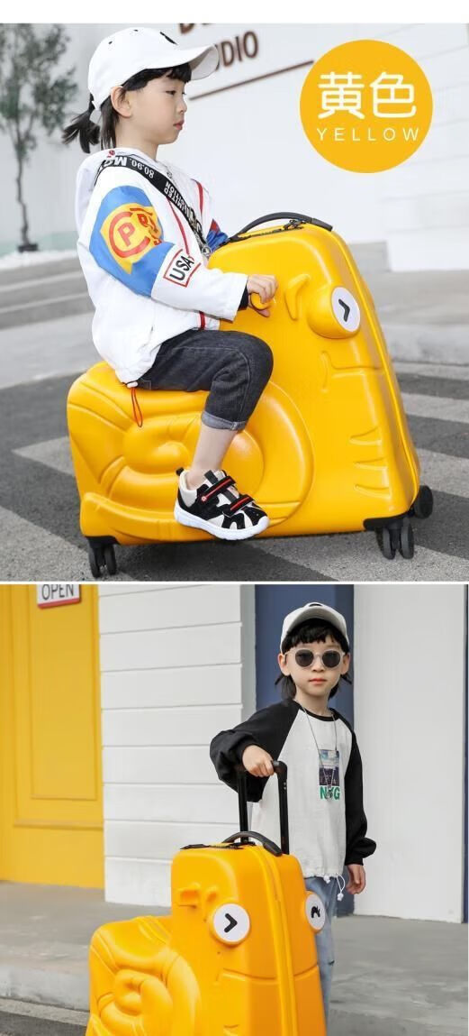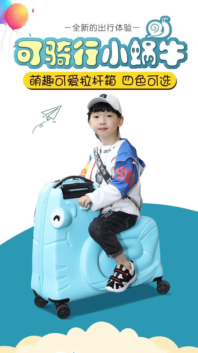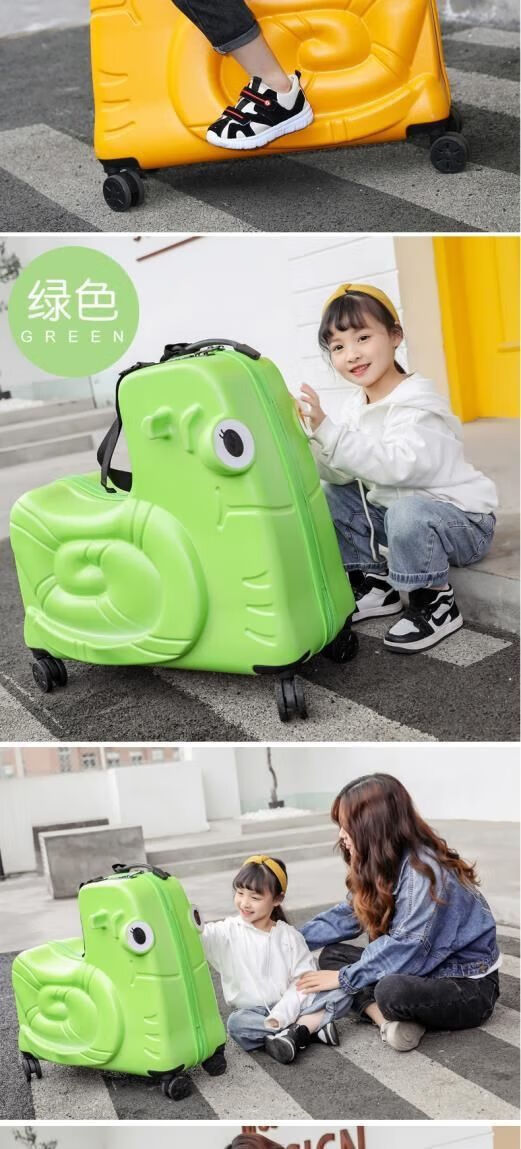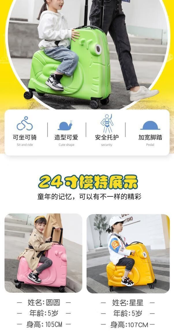 Ye Yu Dadu Trolley Case Men's Cycling Travel Case Women's Wheel Baby Can Sit and Cycling Luggage Bag Anti-rollover Cute Snail Yellow 22-inch Need to Check (Suitable for 2-7 Years Old) Bearing 160 Jin