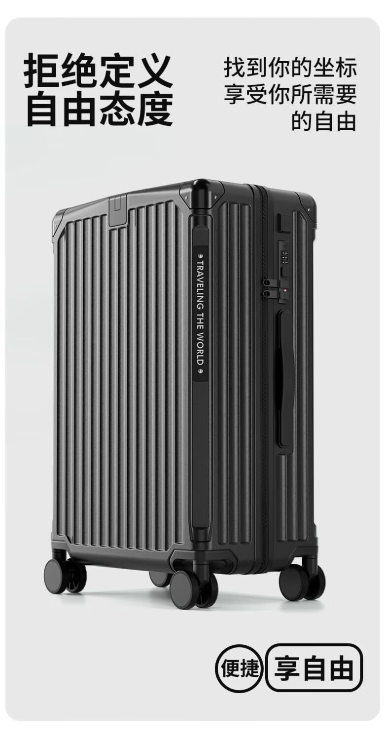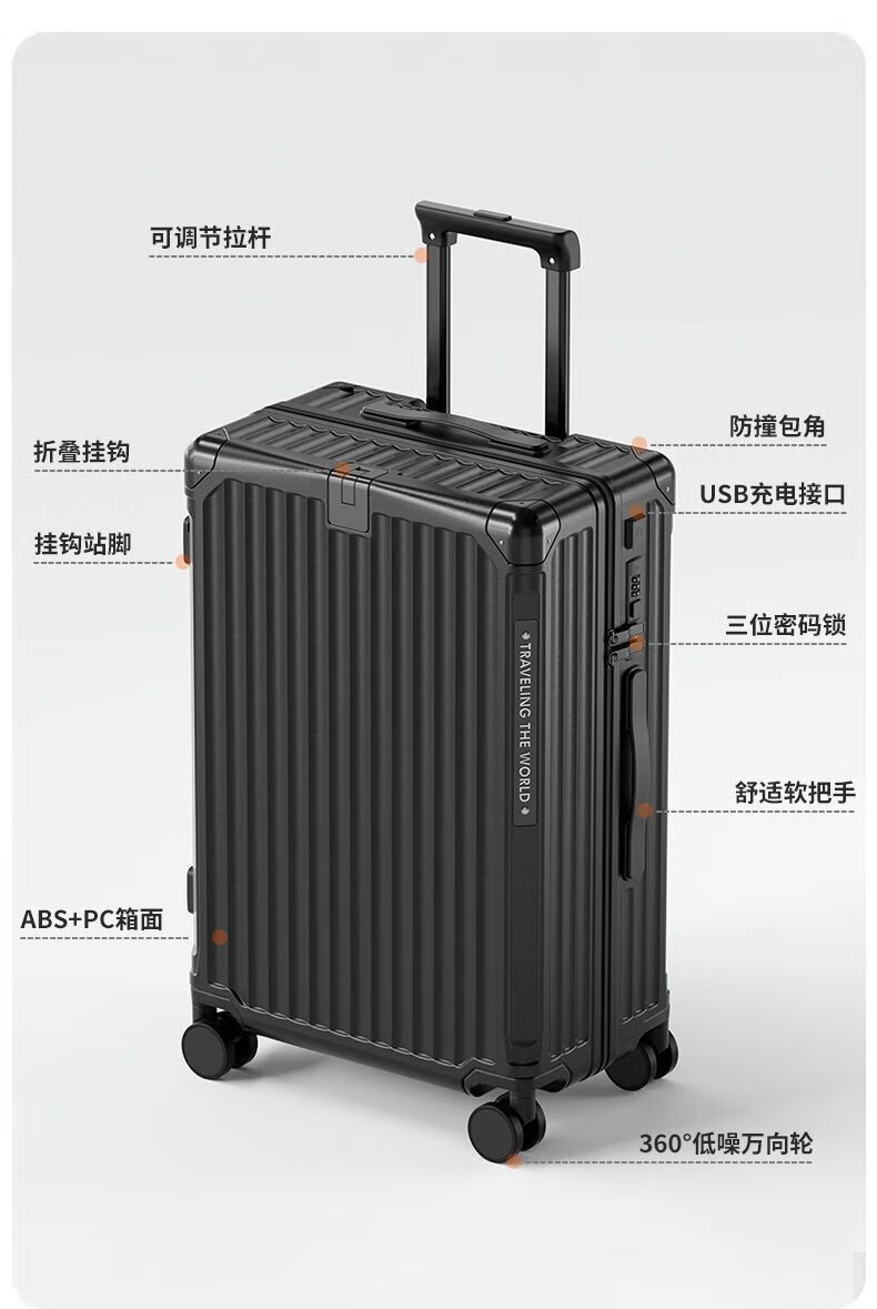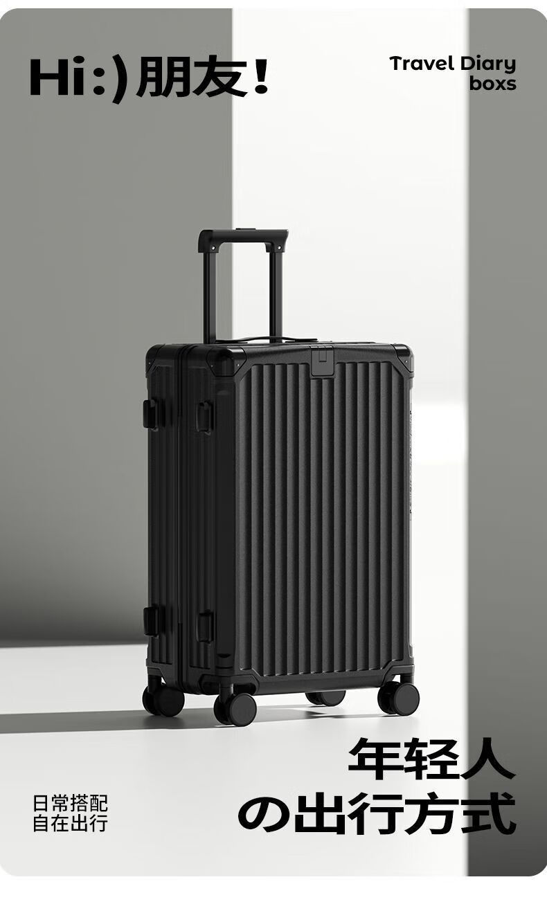 Ye Yu Luggage Women's Boarding Suitcase Multifunctional Trolley Case Aluminum Frame Thickened Durable Light Password Box Anti-seismic Aluminum Frame Model (Black) 26 Inch 20 Select Suitable for Long-distance Travel