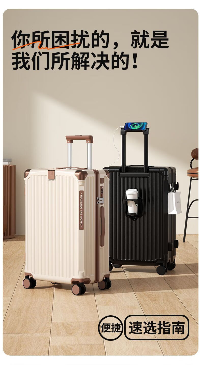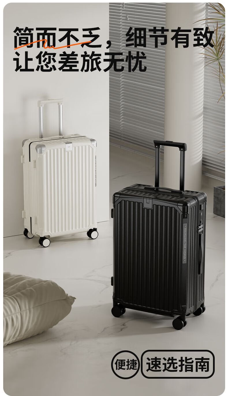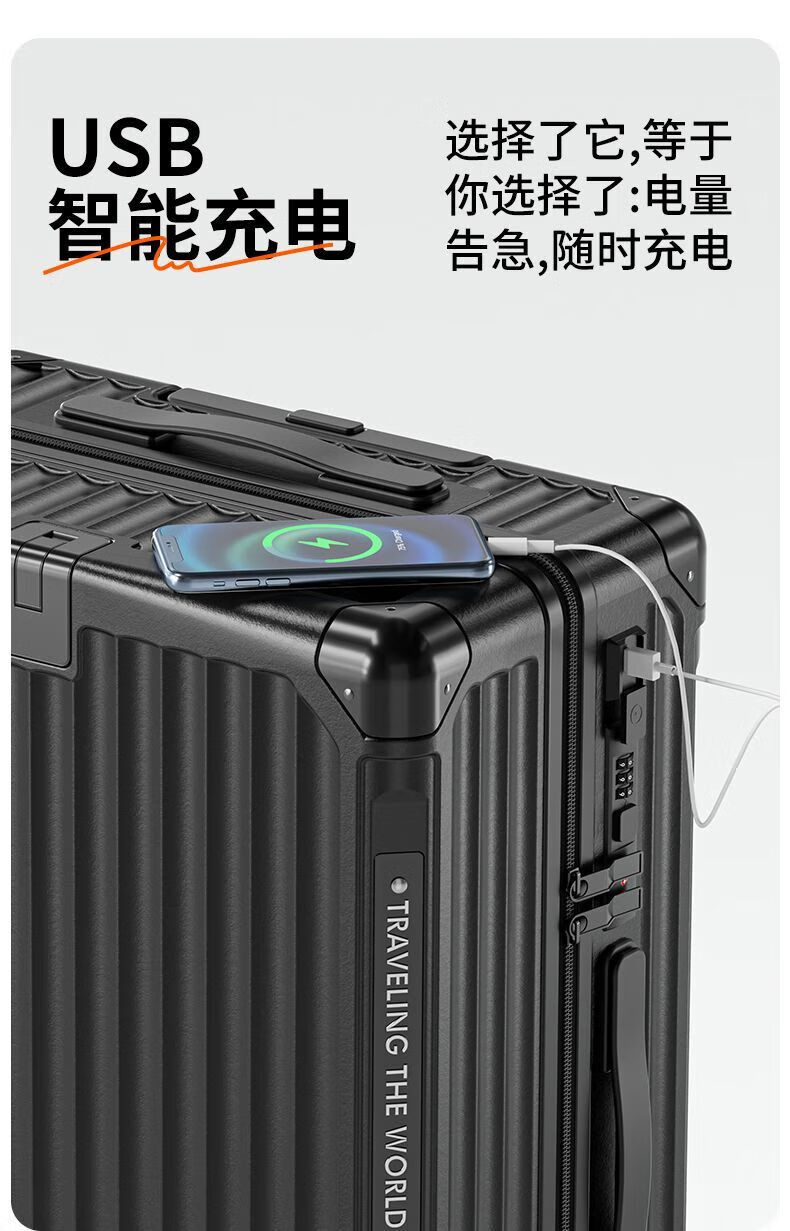 Ye Yu Luggage Women's Boarding Suitcase Multifunctional Trolley Case Aluminum Frame Thickened Durable Light Password Box Anti-seismic Aluminum Frame Model (Black) 26 Inch 20 Select Suitable for Long-distance Travel