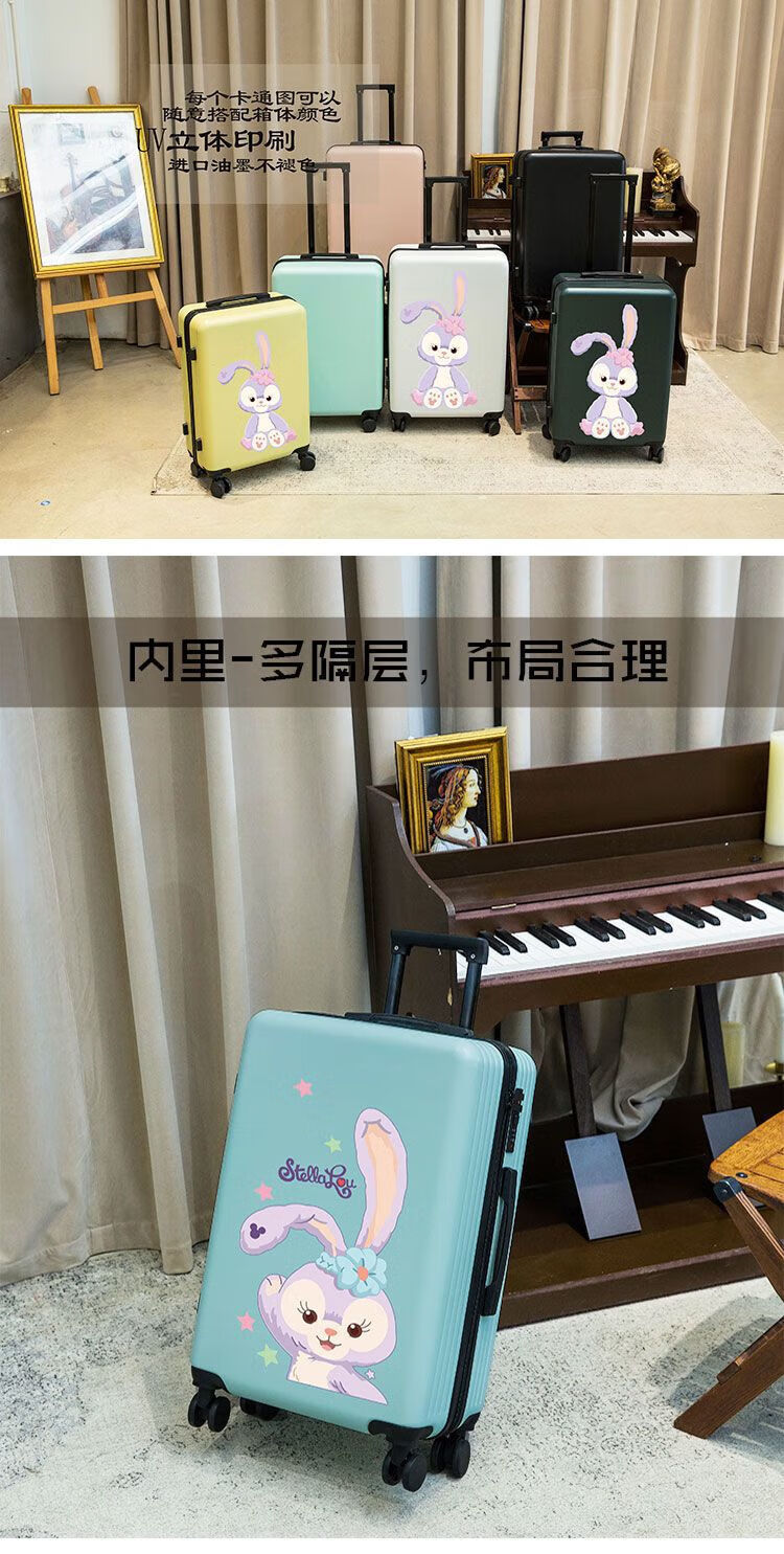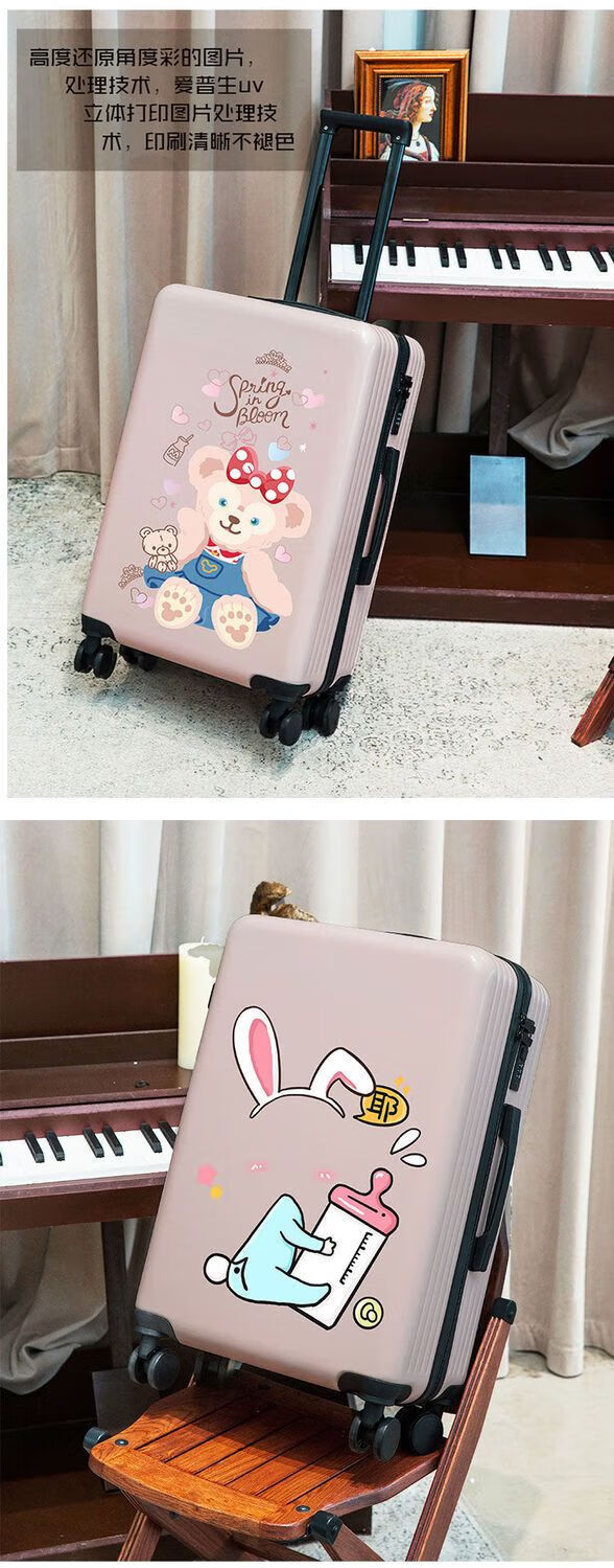 Ye Yu Luggage Small Fresh Wheel Trolley Case Cute Big and Small Student Male and Female Boarding Suitcase Pink/Ballet Rabbit 24 Inch