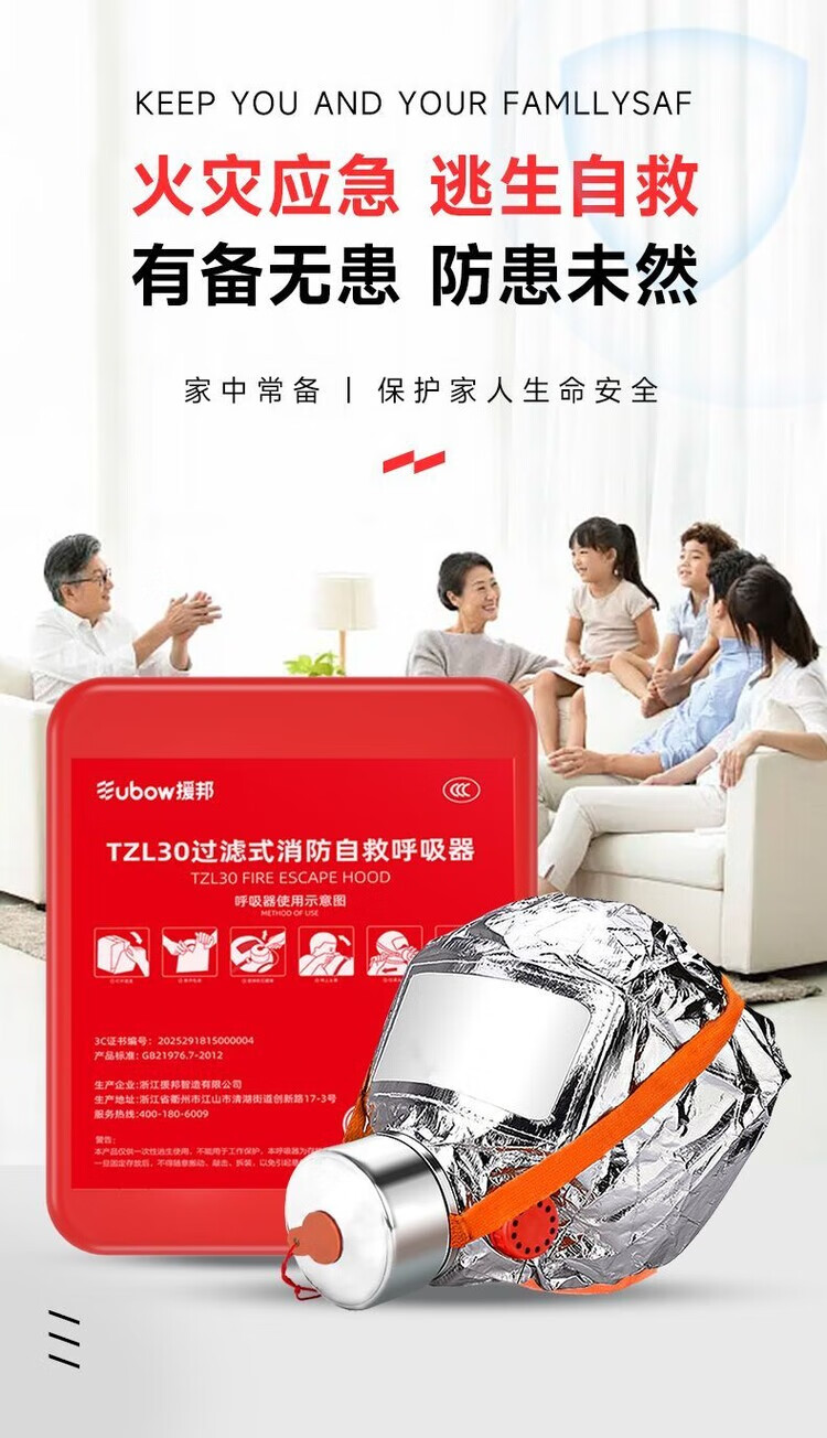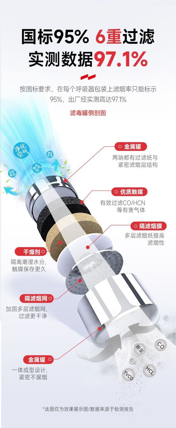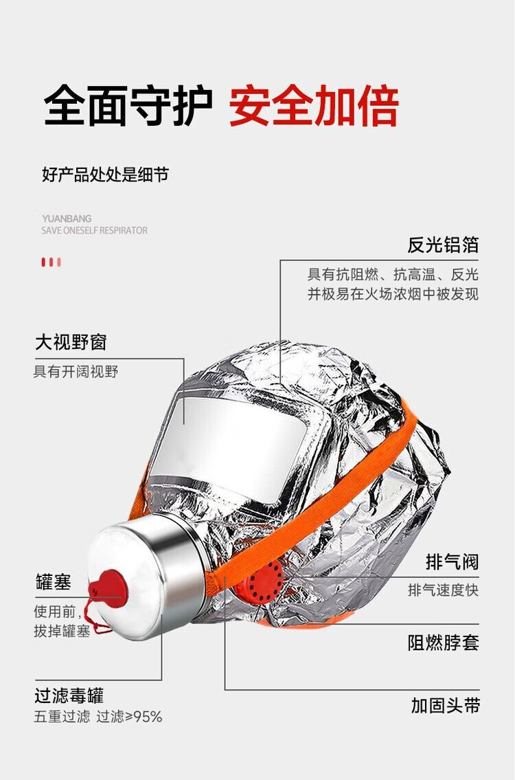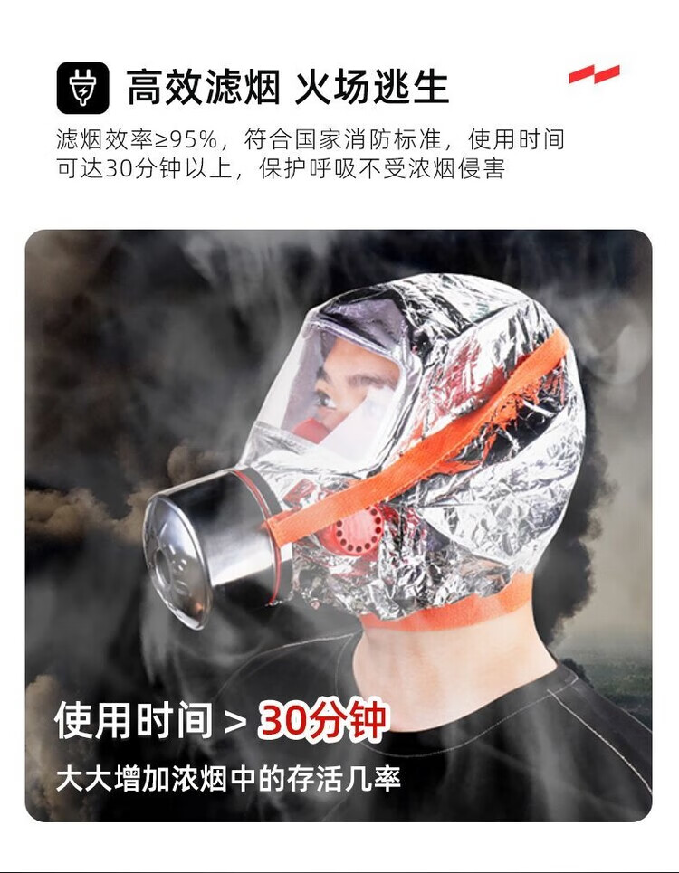 Mo Peng anti-smoke and gas mask, national fire certification mask, 3C home hotel fire escape filter self-rescue respirator, official 3c certification, PICC million coverage, can pass fire inspection, high-end adult respirator + survival whistle