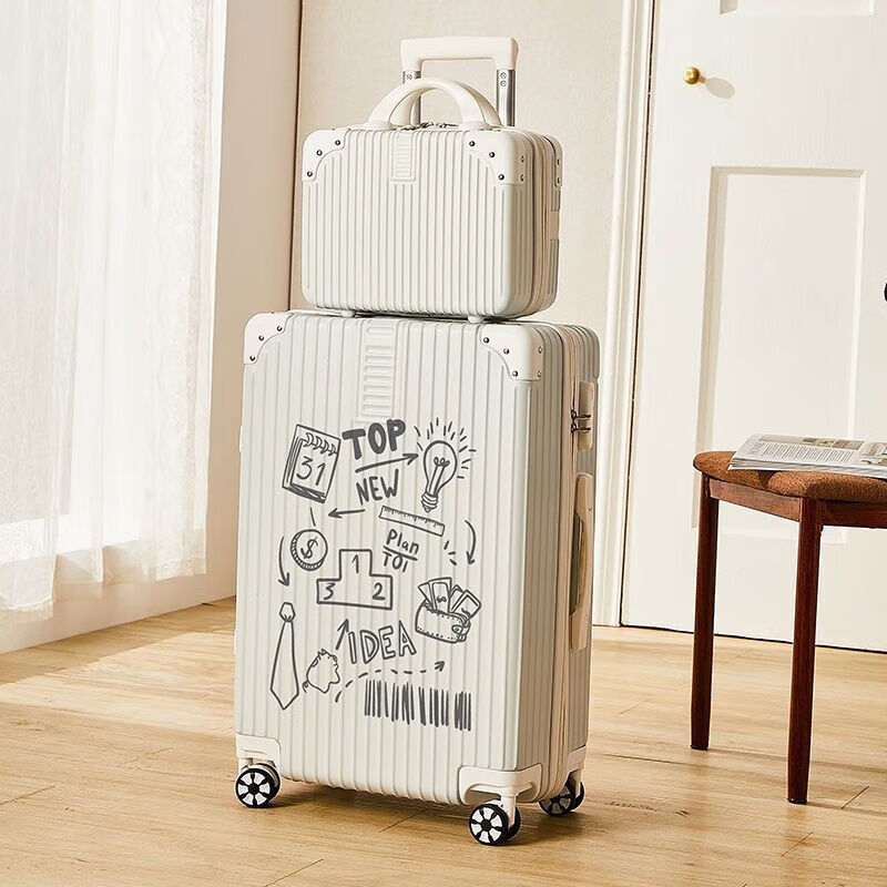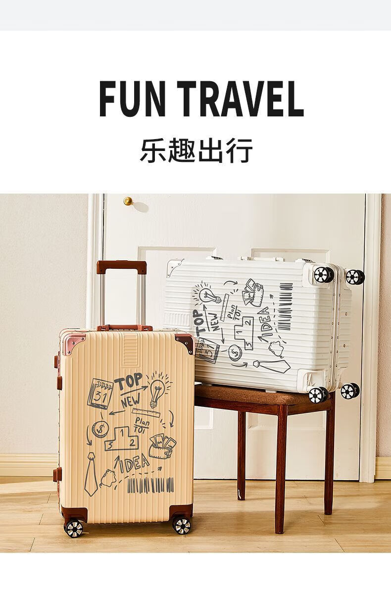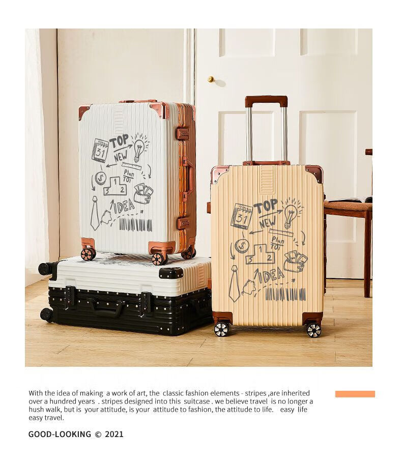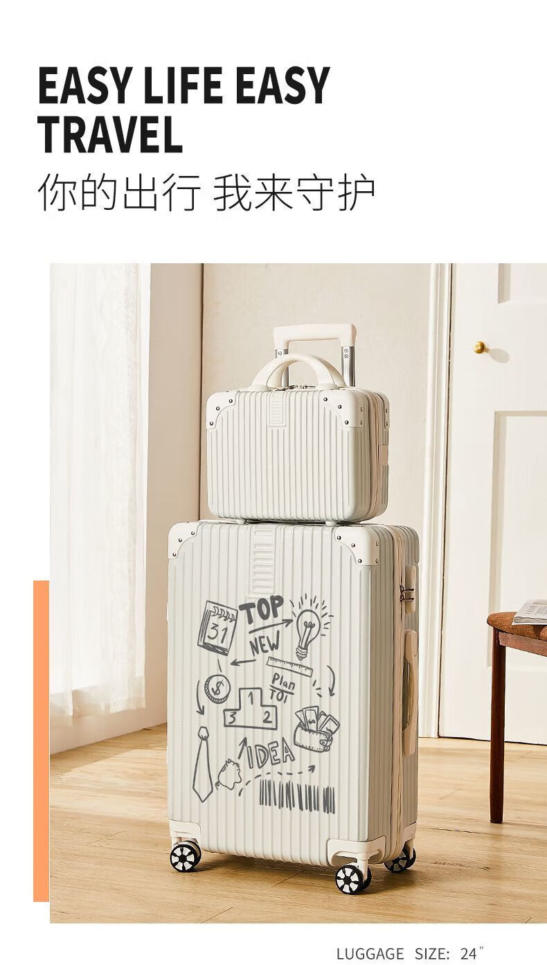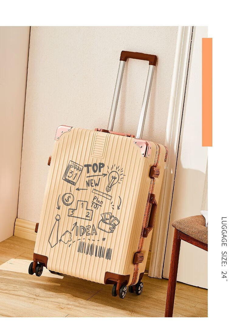 Ye Yu suitcase female size cartoon high-looking student trolley case large capacity portable aluminum frame suitcase boys size 1370 (zipper type) beige brown 24 inches 40 choose your favorite size