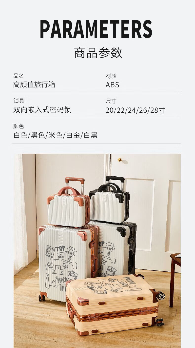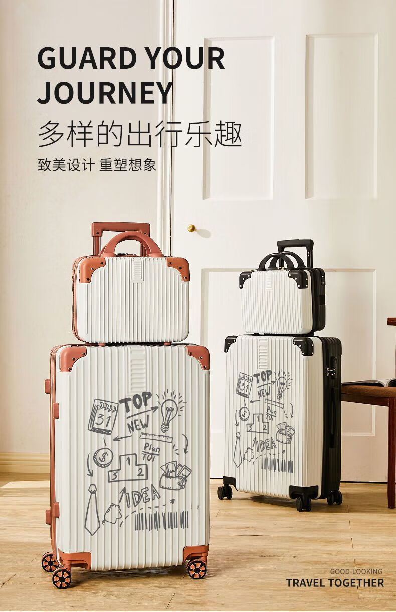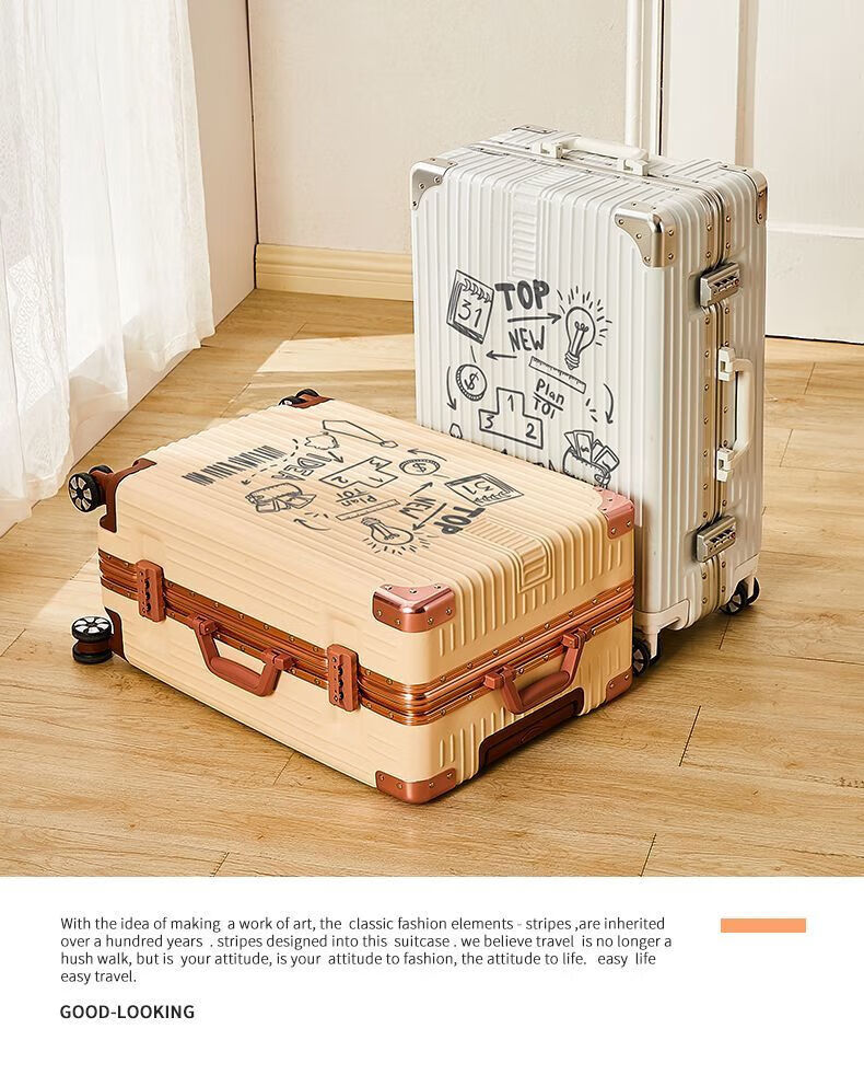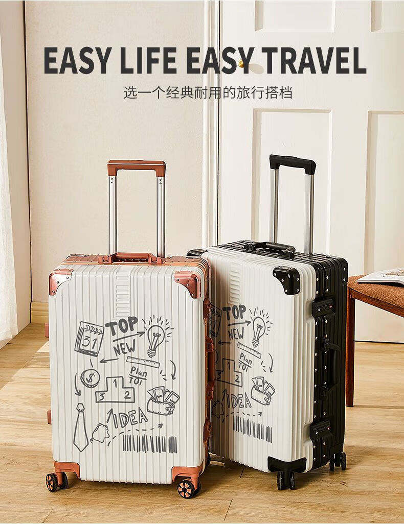 Ye Yu suitcase female size cartoon high-looking student trolley case large capacity portable aluminum frame suitcase boys size 1370 (zipper type) beige brown 24 inches 40 choose your favorite size