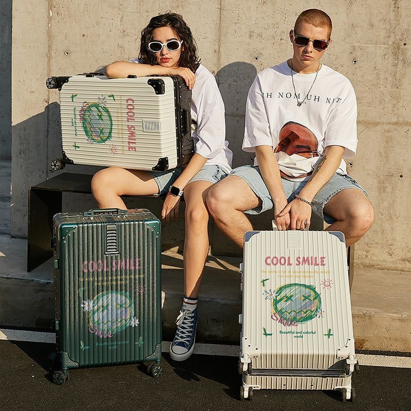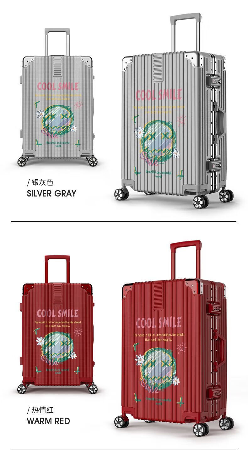 Ye Yu suitcase female cartoon graffiti boarding code box large capacity strong and durable aluminum frame double suitcase male 1250 (aluminum frame style) red 28 inch multi-person travel home