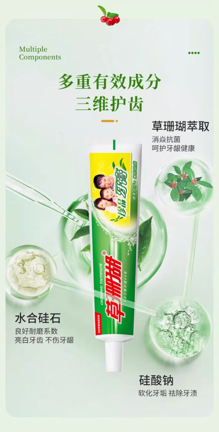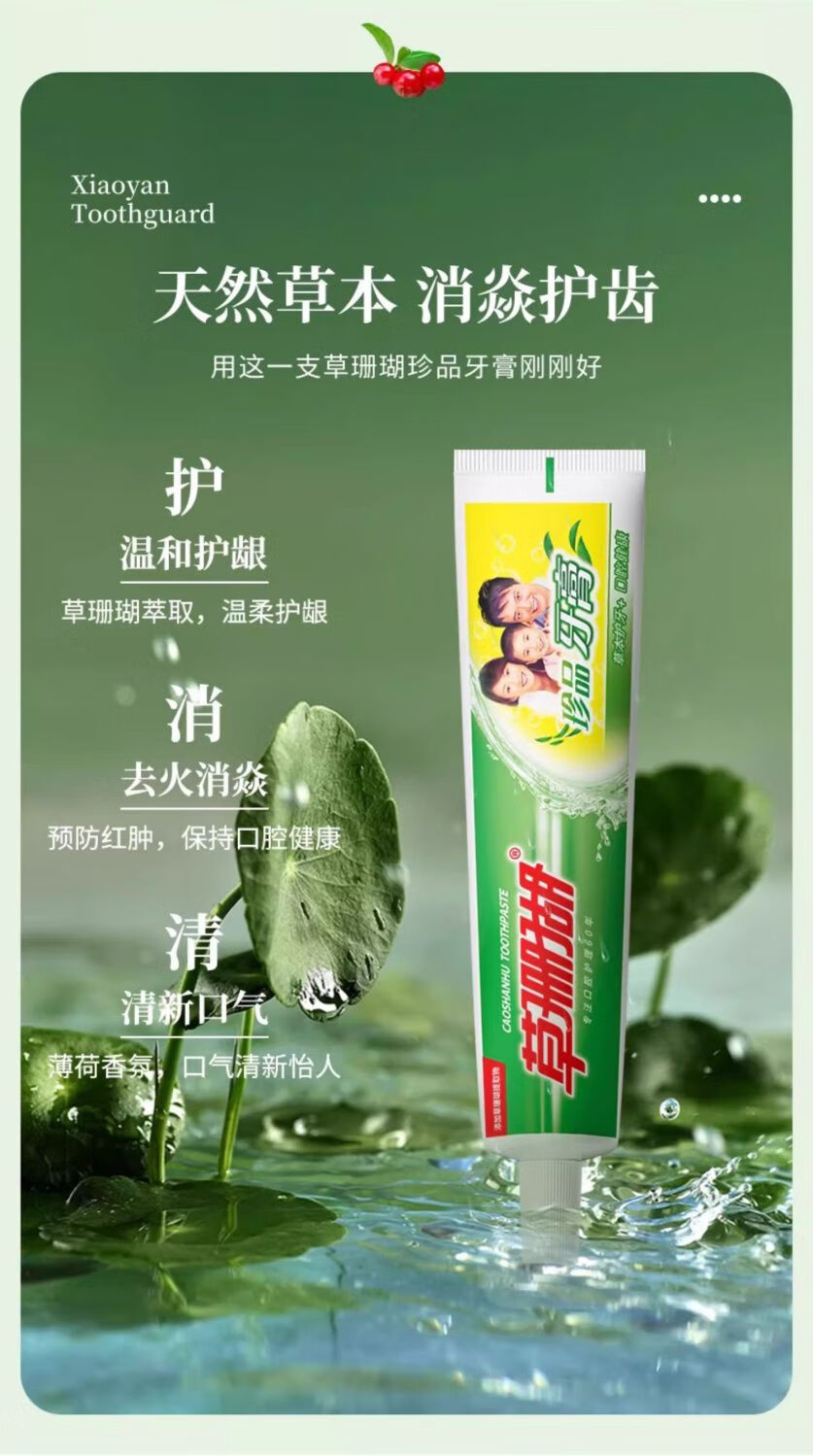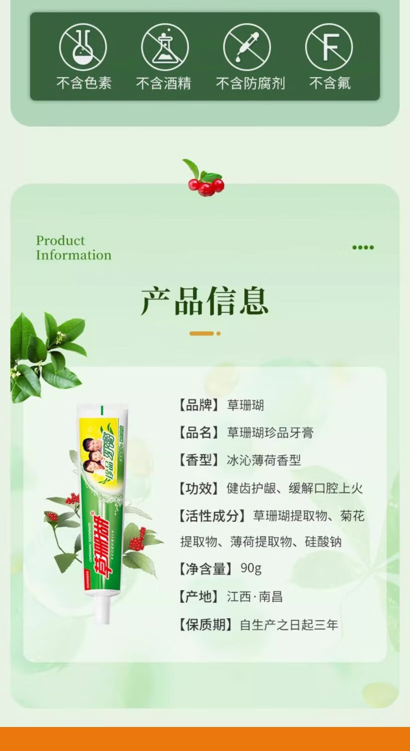 Grass coral toothpaste 90g strengthens teeth, protects gums, freshens breath, herbal essence clears fire, does not contain fluorine, authentic factory store, rare spearmint type 90g*3 pieces