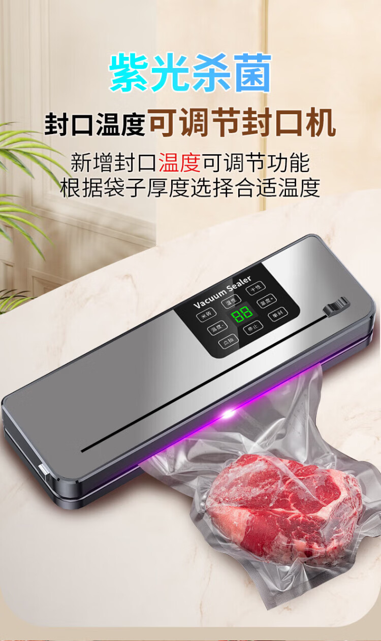 Jingyan vacuum sealing machine fully automatic all-in-one machine household small food preservation machine wet and dry large suction packaging machine UV ultraviolet light sterilization丨double suction丨wet and dry separation丨external cutter 30cm